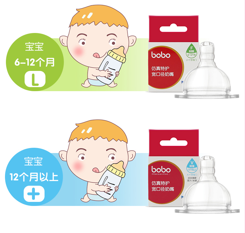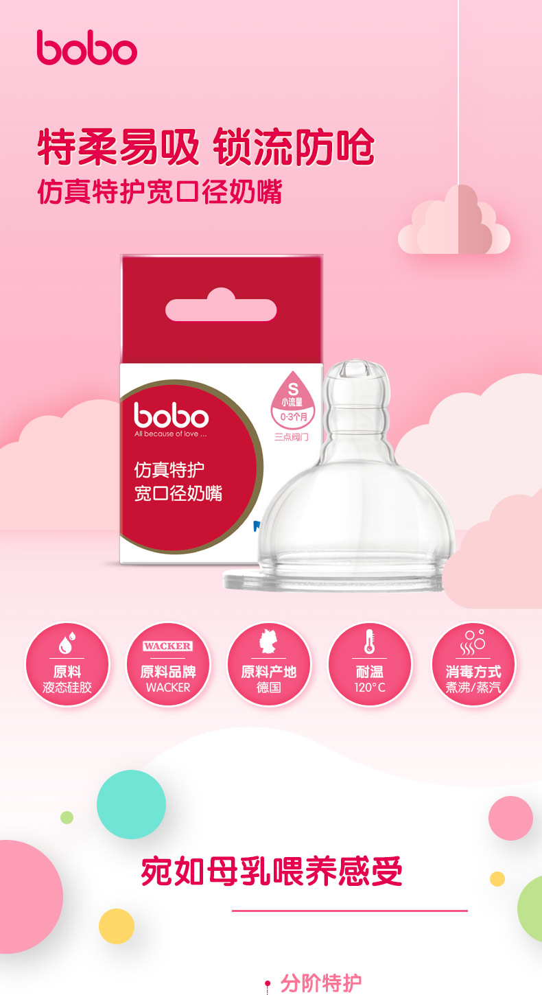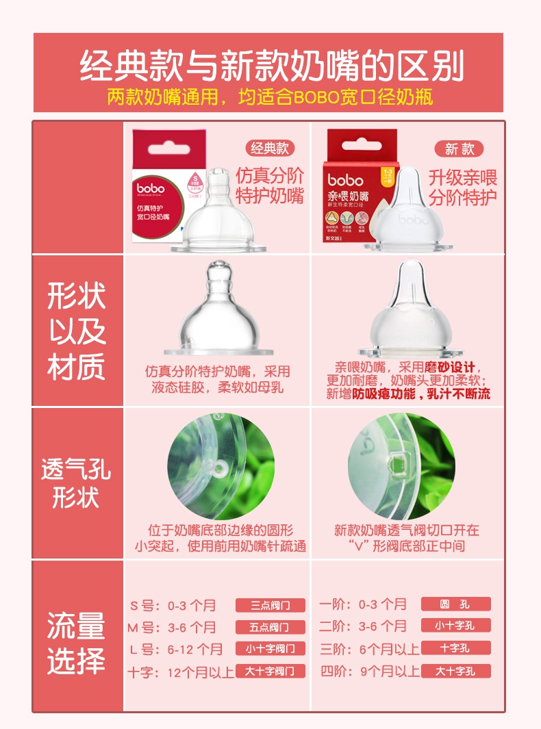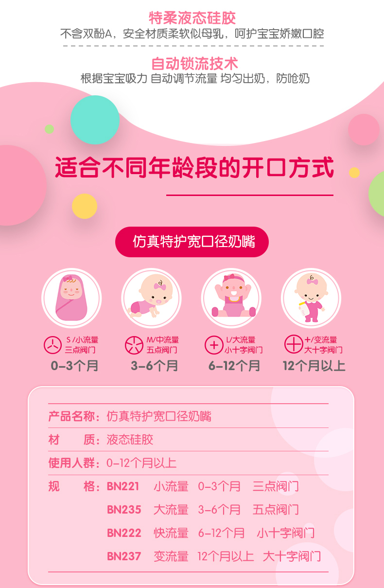 bobo乐儿宝奶嘴新生婴儿宝宝宽口径分阶硅胶超柔亲喂SMLV十字孔BN235 BN221