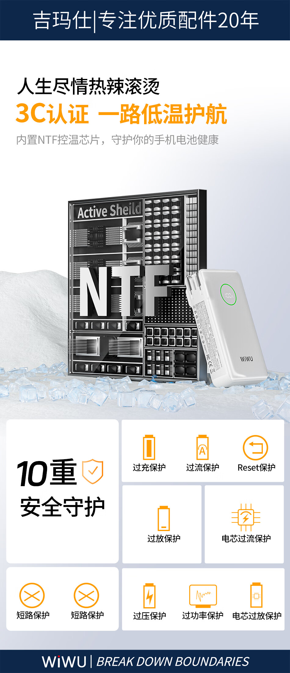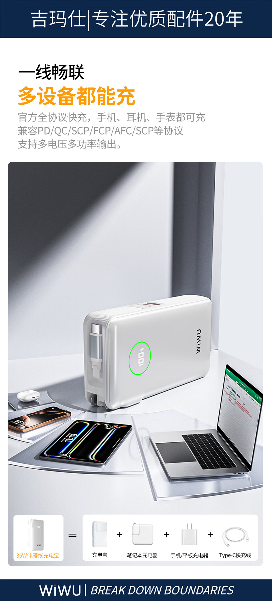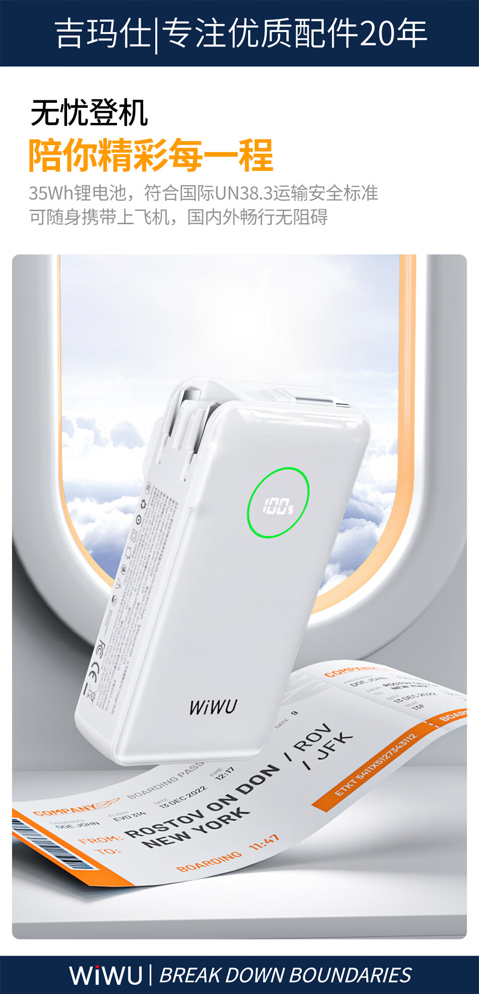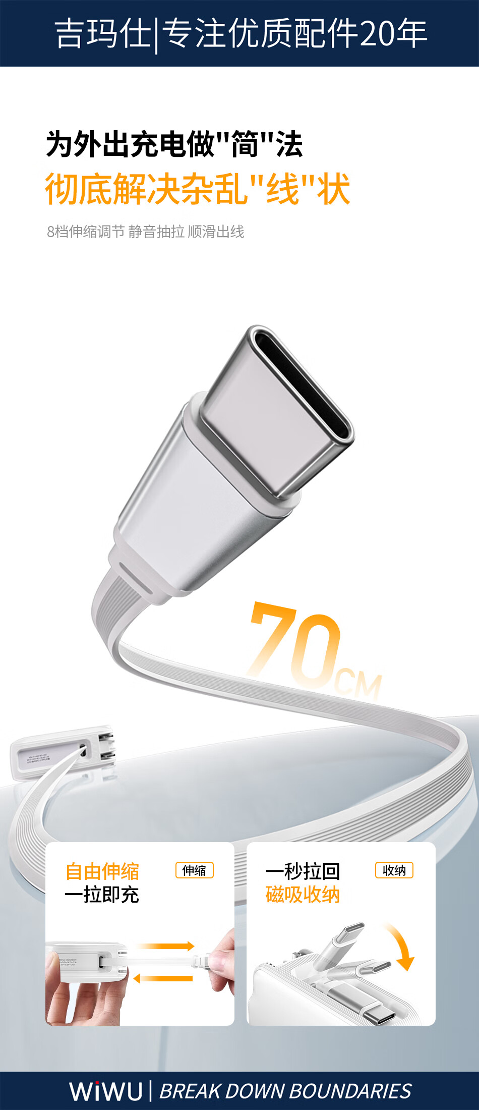 ZGA DY25 10000mAh插头快充移动电源Type-C双线合一充电宝自带线