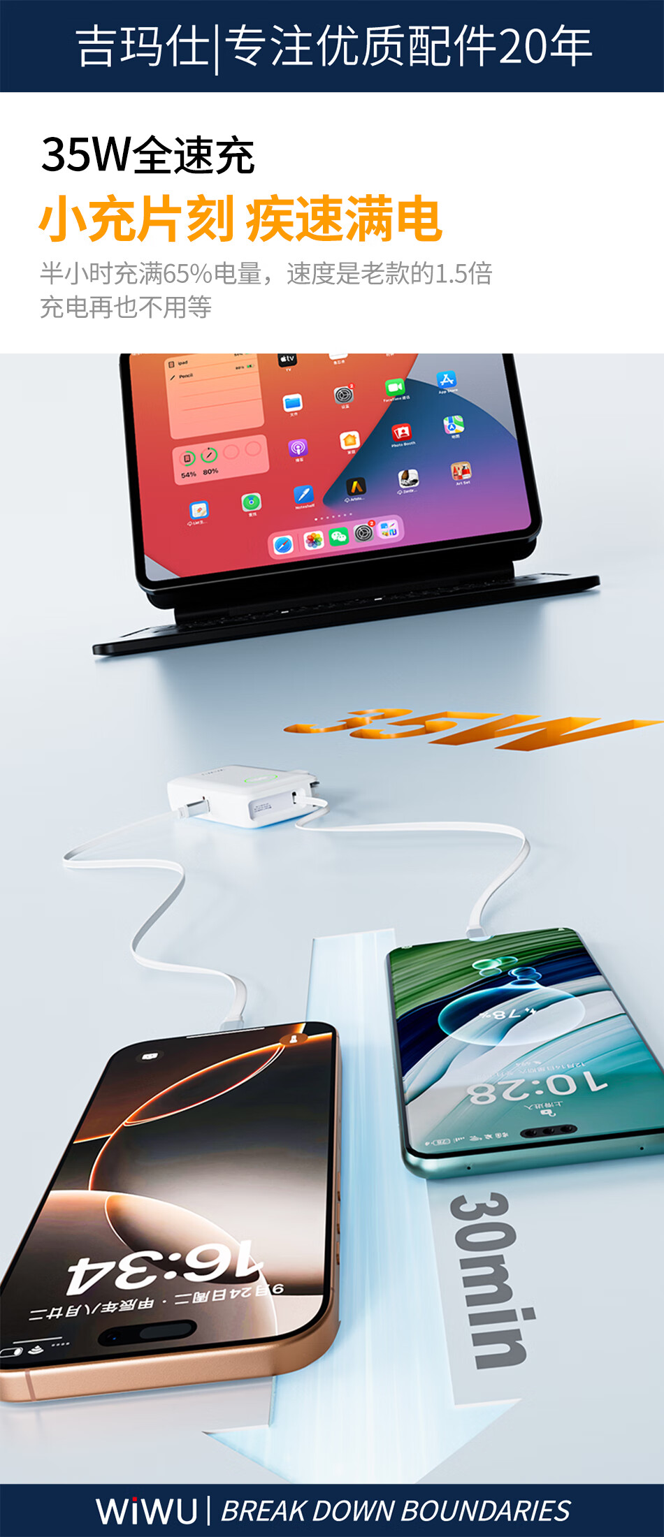 点音Divoom电饱饱像素35W氮化镓充电器适用小巧便携PD