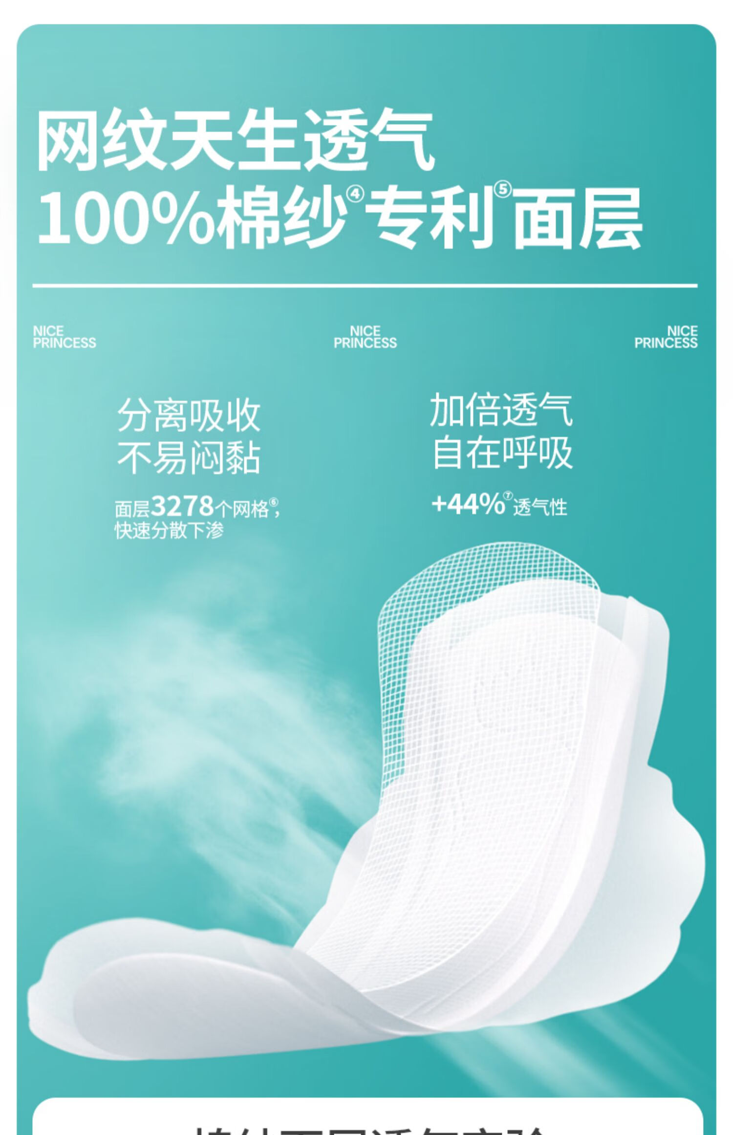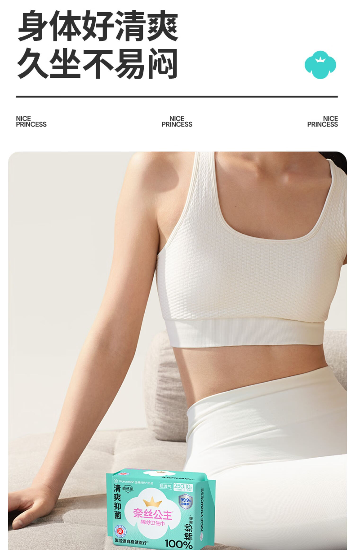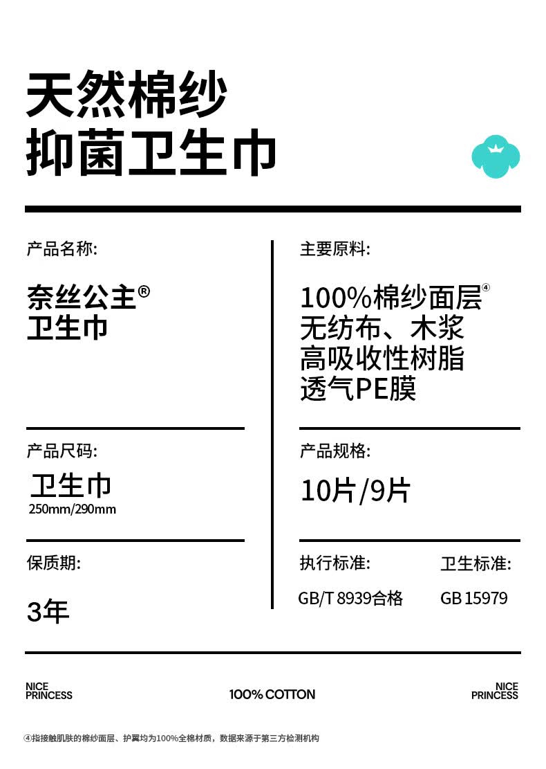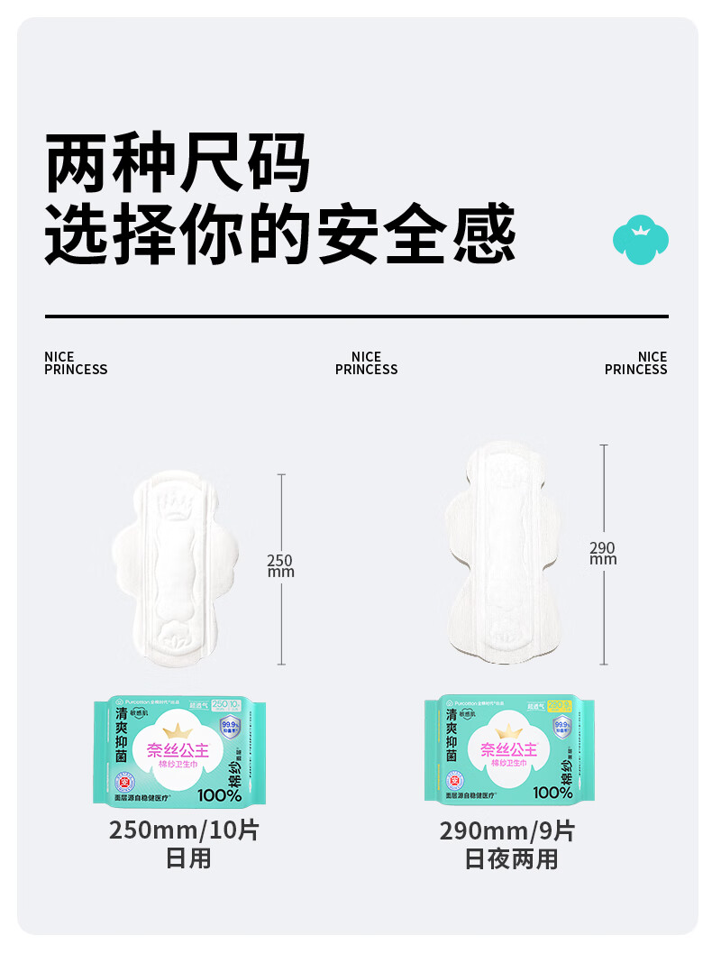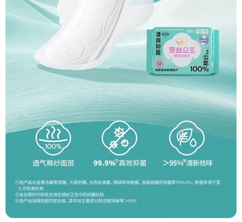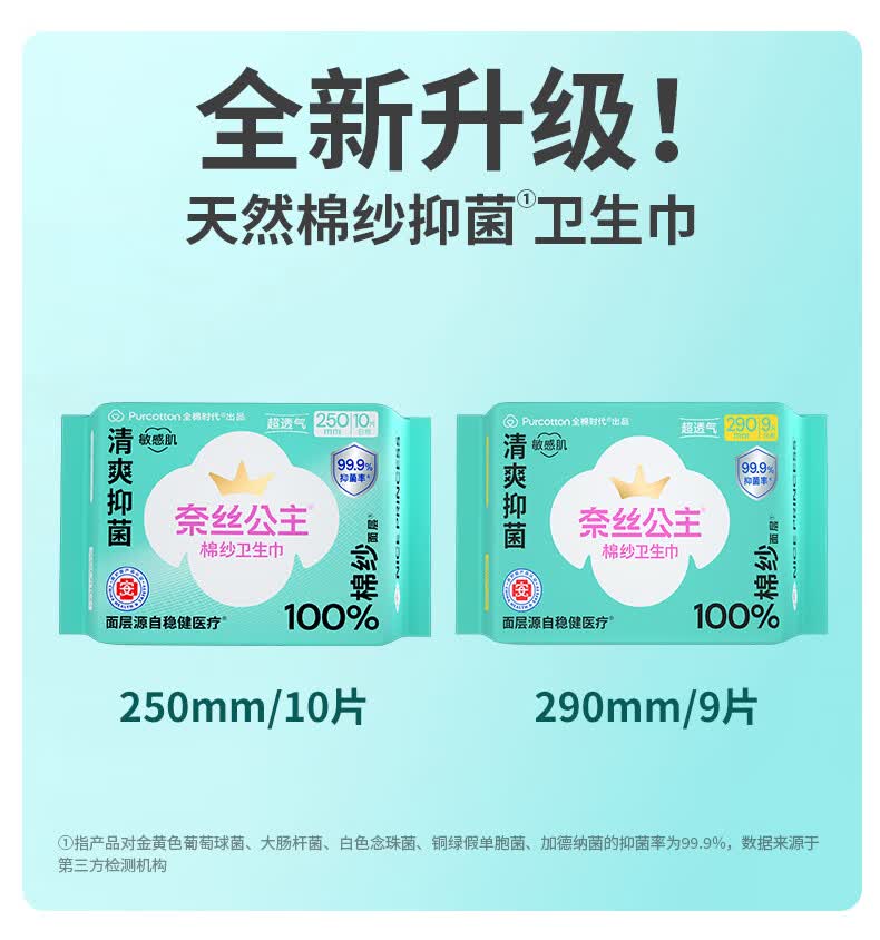 全棉时代奈丝公主100%棉纱抑菌卫生巾 250mm 10片*5包