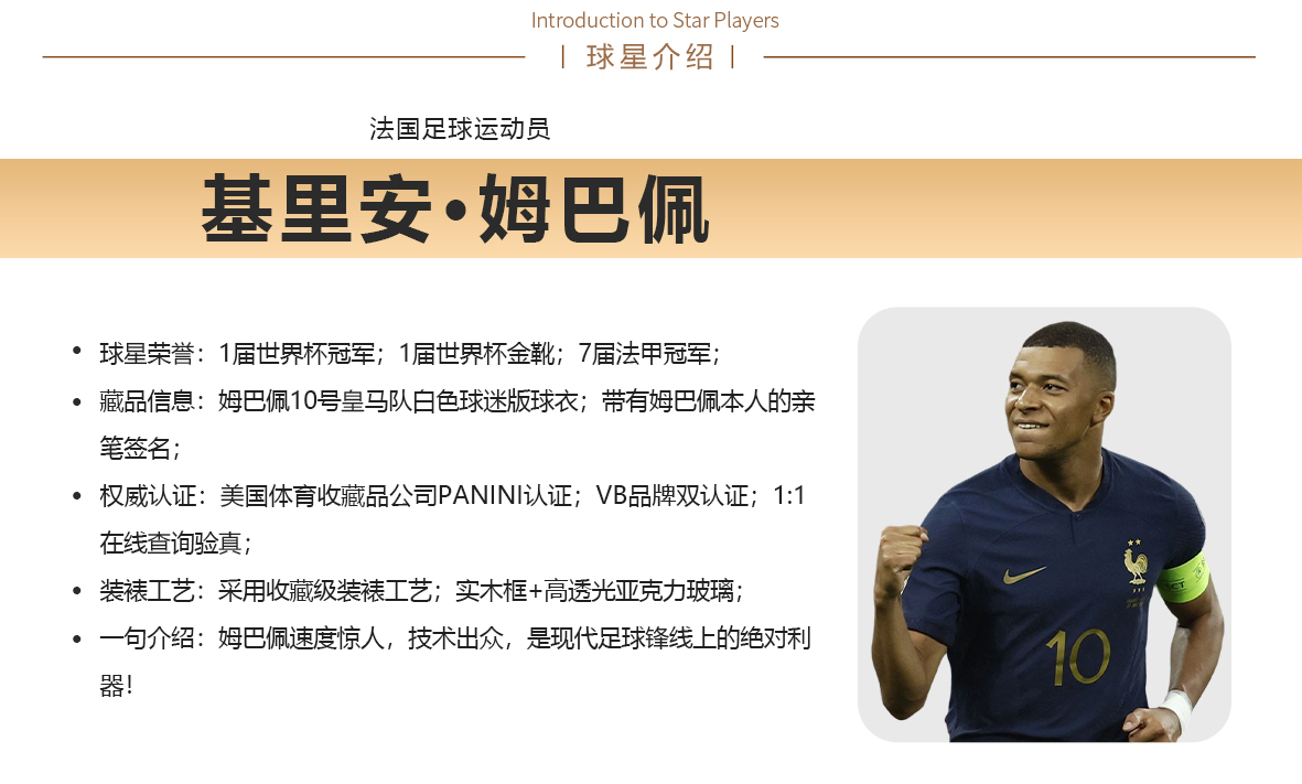 收藏系列 姆巴佩 法国队10号 22世界杯 亲笔签名球衣