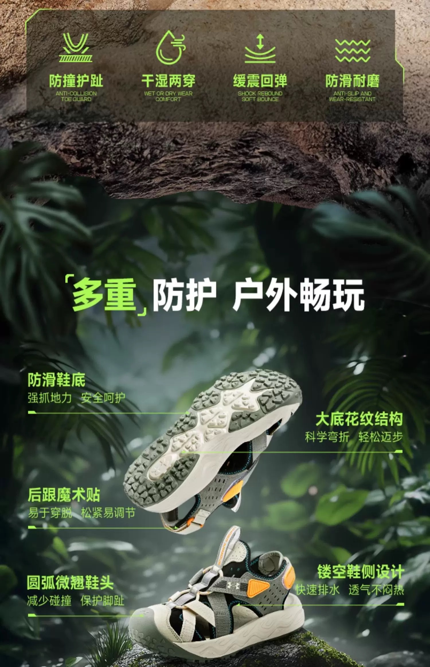 【出游季-品牌直发】Under Armour安德玛 夏季新款儿童沙滩鞋软底透气鞋男女大童运动凉鞋【爆款合集】 2421506 /2521815/2421505超低折扣
