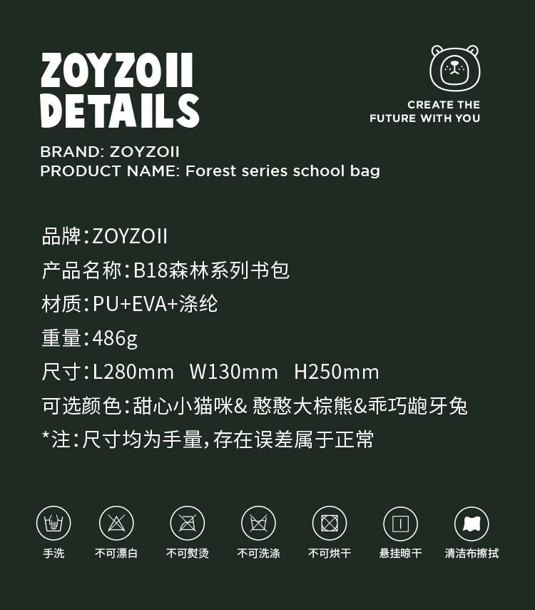 zoyzoii b18 儿童书包幼儿园女孩男孩出行小背包宝宝可爱轻便双肩包适合2-6岁儿童