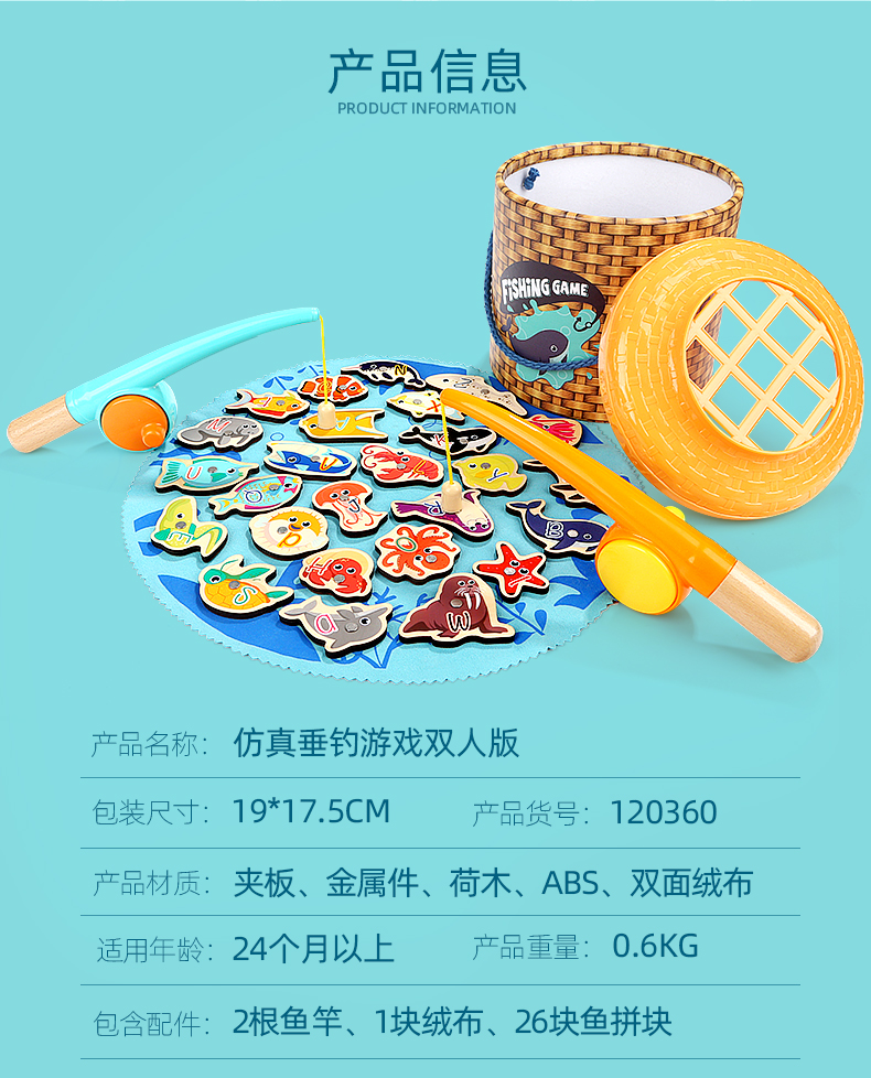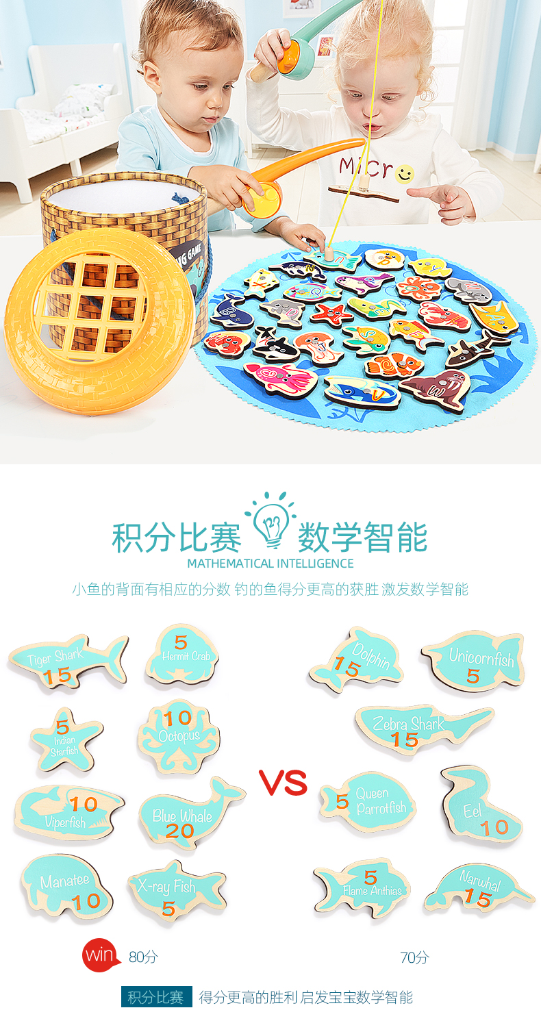双人版 特宝儿1-2-3岁宝宝磁力钓鱼玩具套装婴幼儿童磁性鱼益智早教游戏