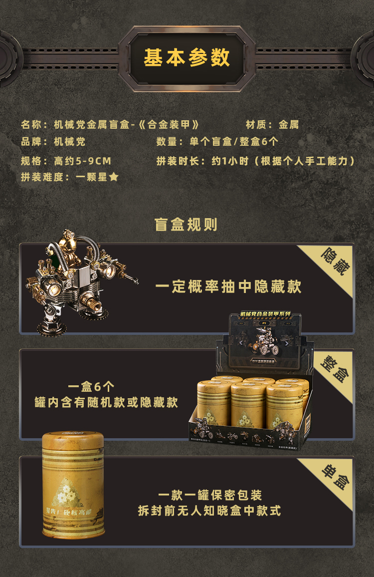 机械党合金装甲拼装盲盒玩具礼物潮流桌面摆件手办