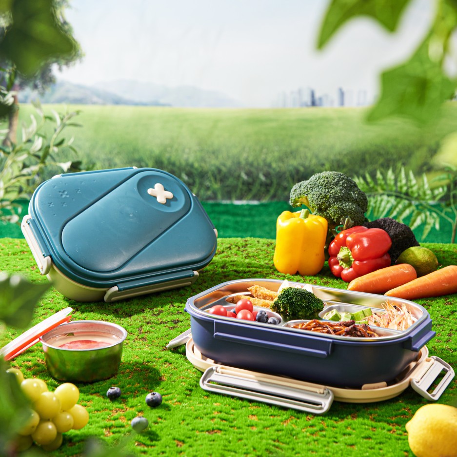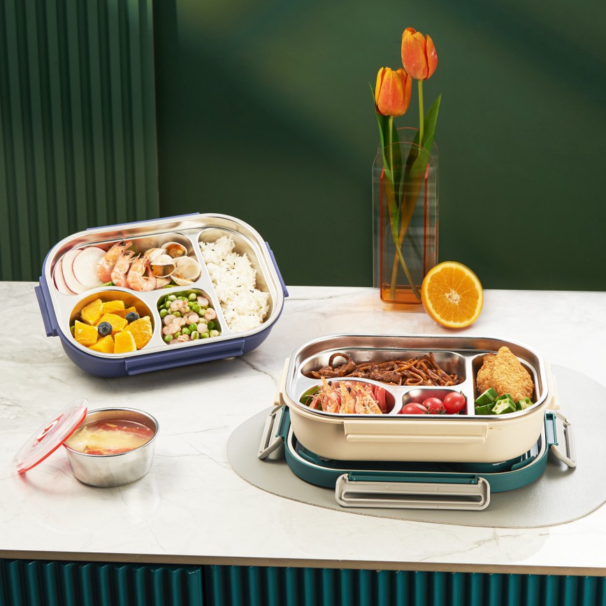甲克虫JKC-5754带汤碗B款不锈钢饭盒(中四格)1520ml