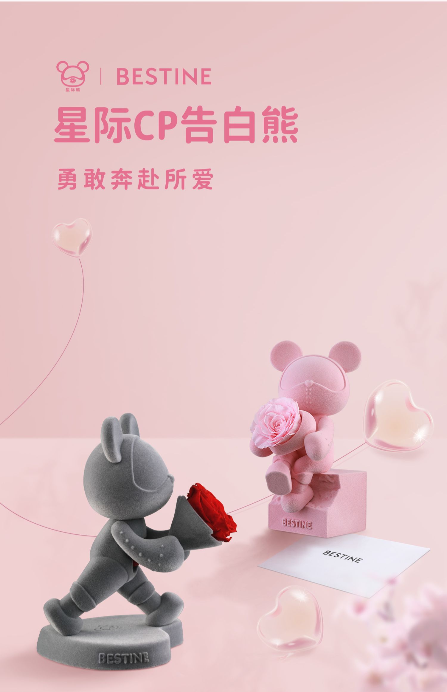 VBEINGS花语 双向奔赴系列 星际熊 永生花CP告白熊IP联名款情人节送女友爱人生日礼物