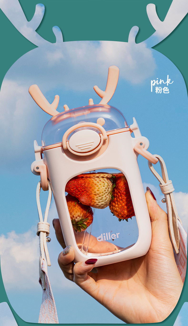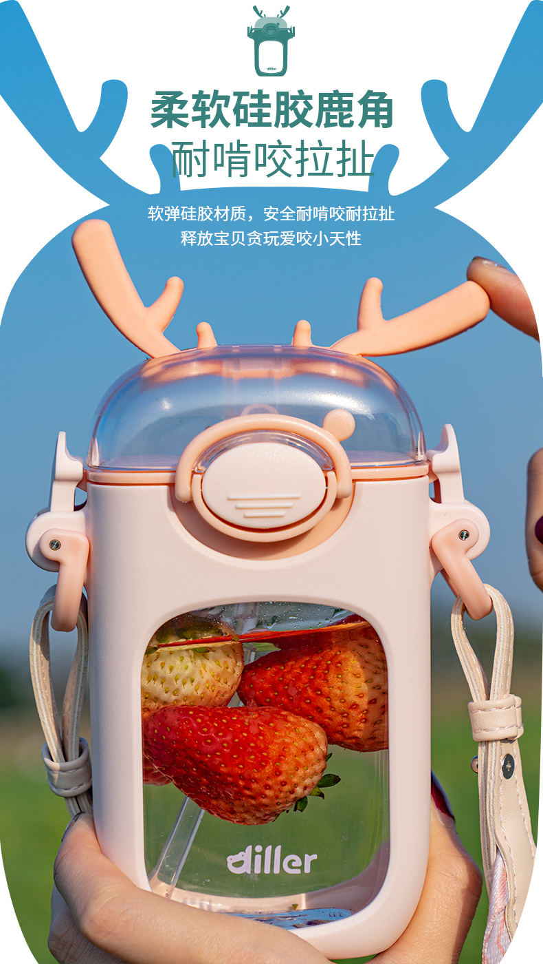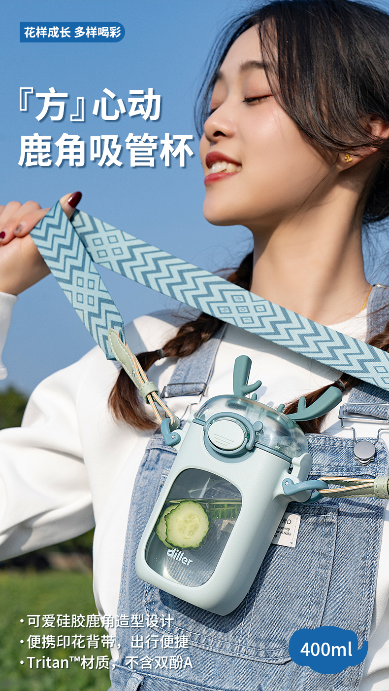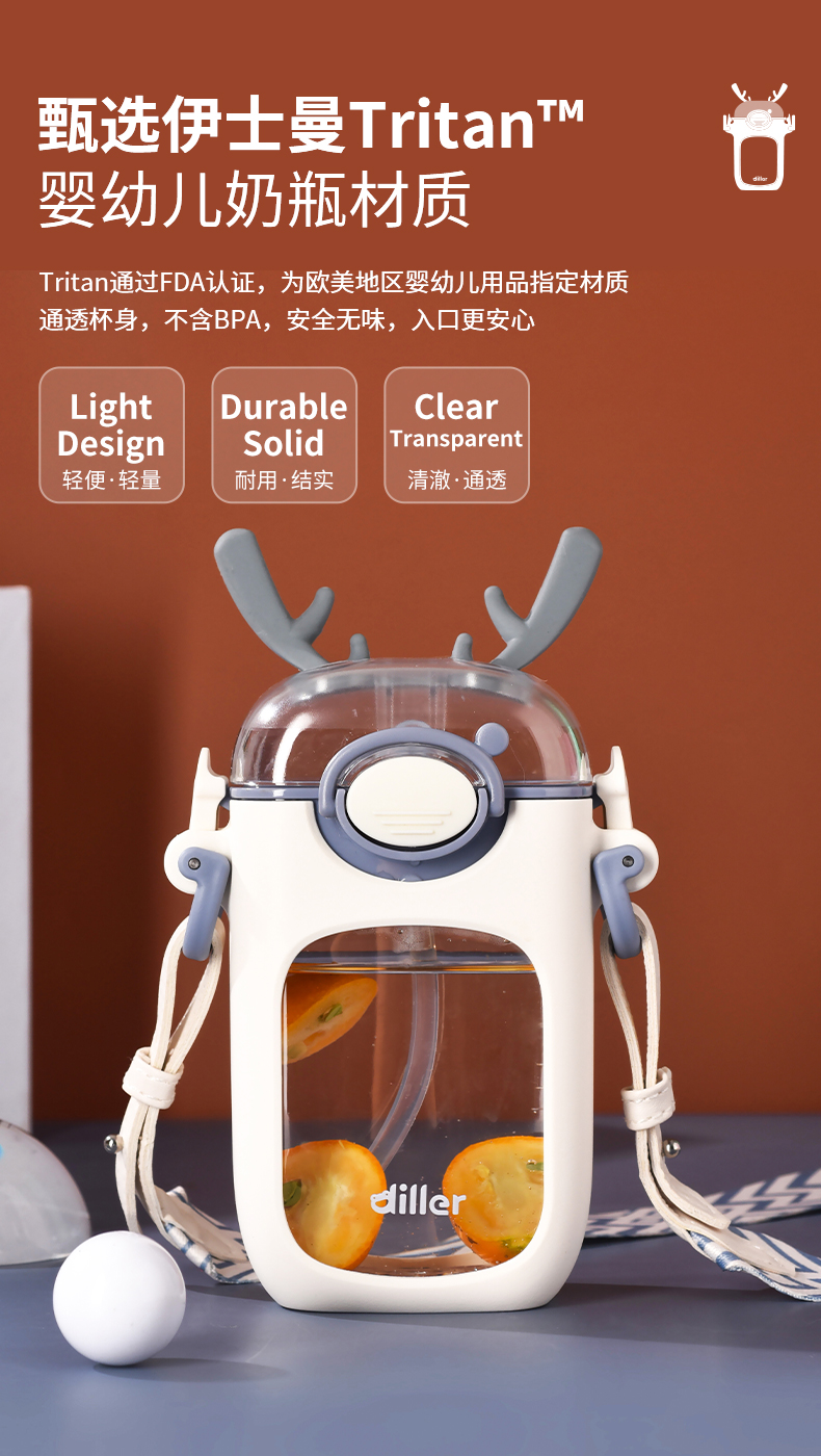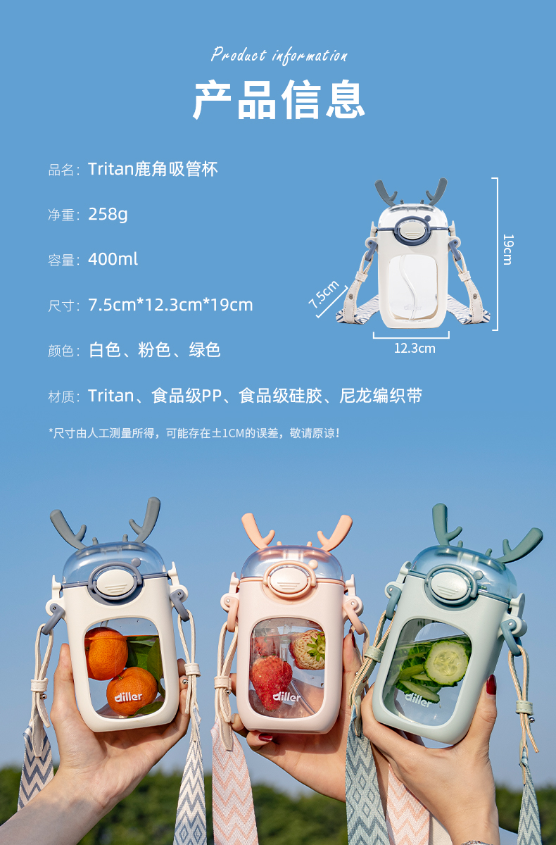 迪乐贝尔tritan鹿角吸管杯T-P4014/400ml儿童吸管杯女生高颜值大容量夏季水杯子