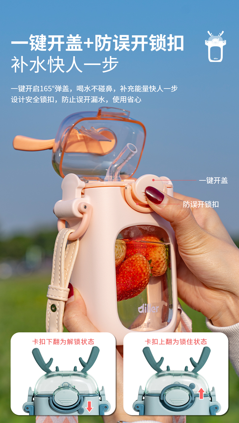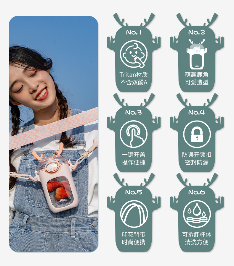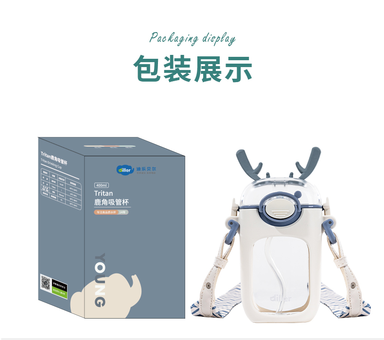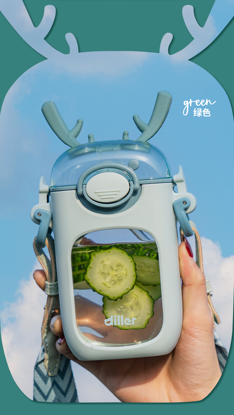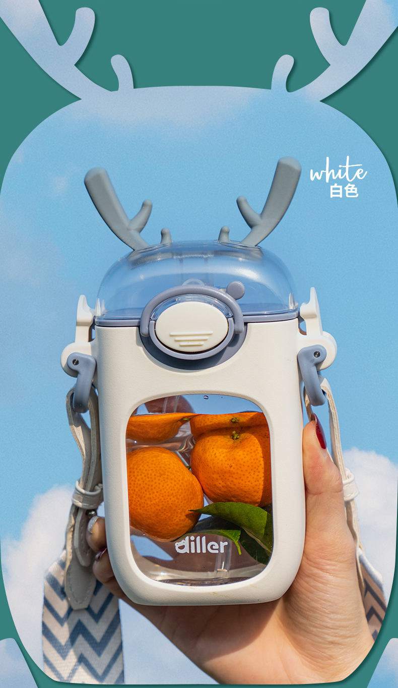 迪乐贝尔tritan鹿角吸管杯T-P4014/400ml儿童吸管杯女生高颜值大容量夏季水杯子