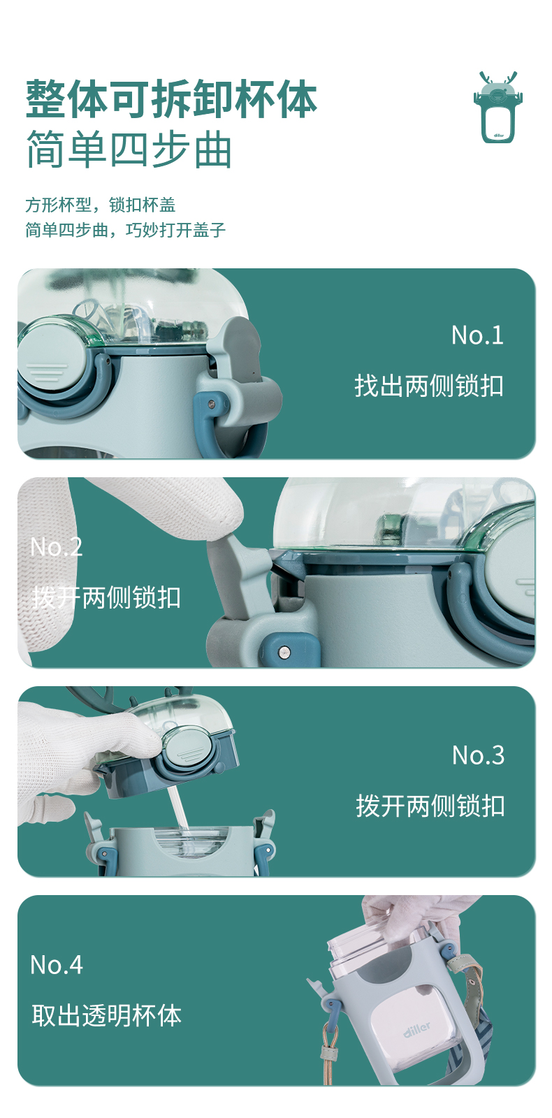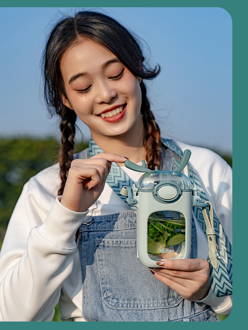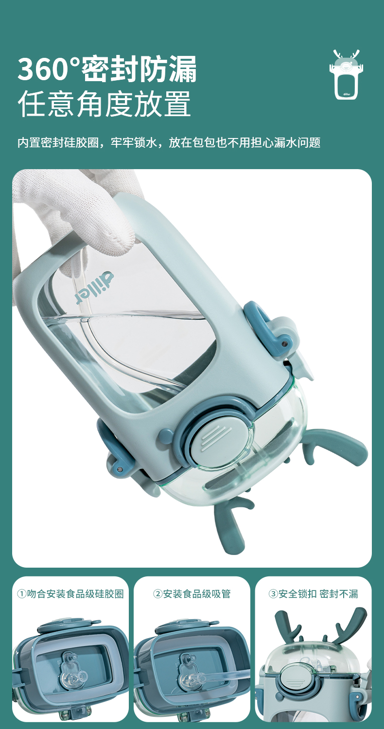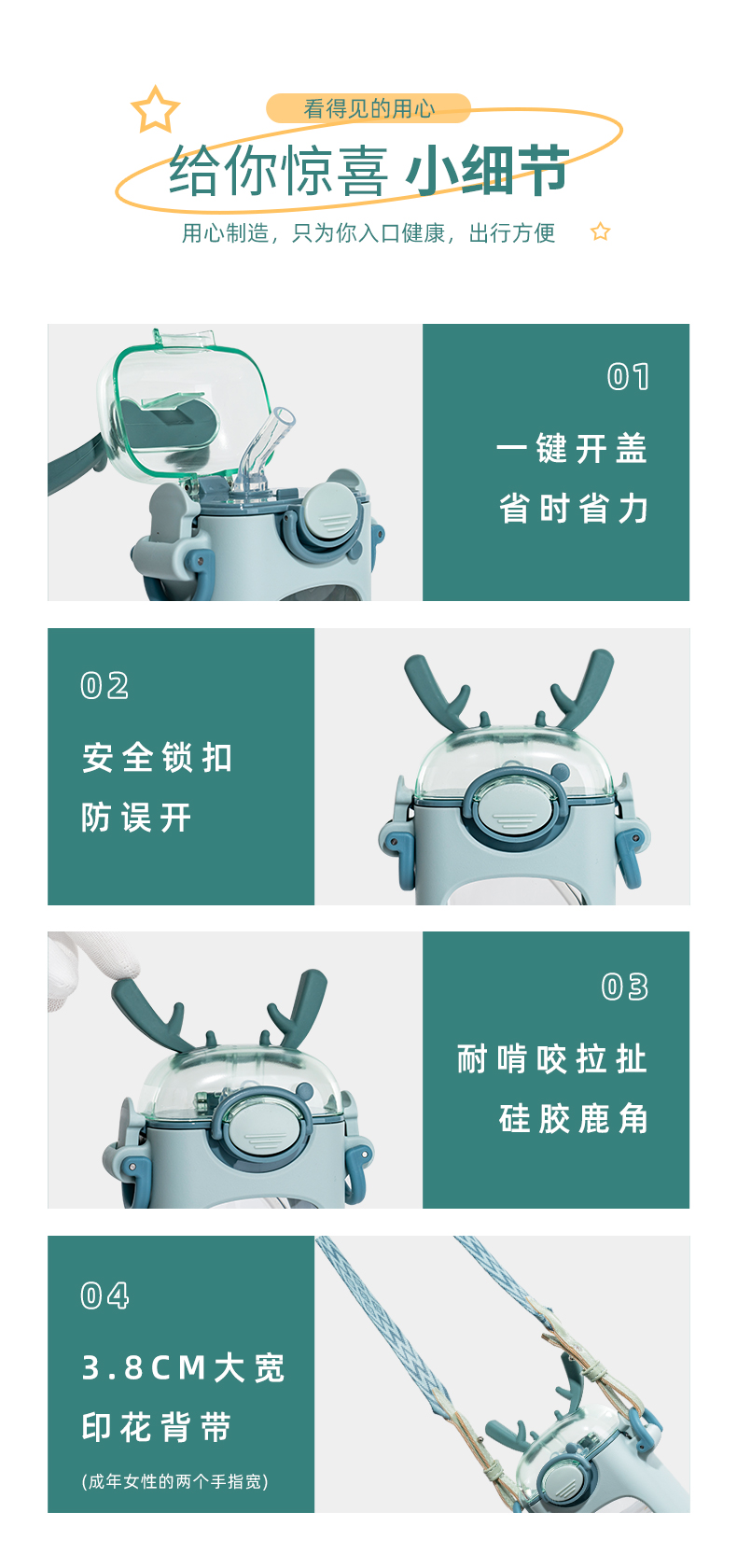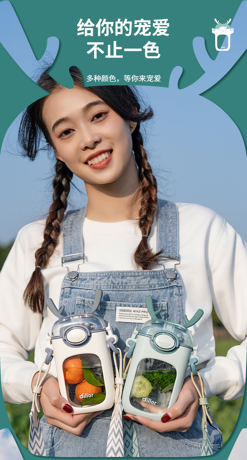 迪乐贝尔tritan鹿角吸管杯T-P4014/400ml儿童吸管杯女生高颜值大容量夏季水杯子