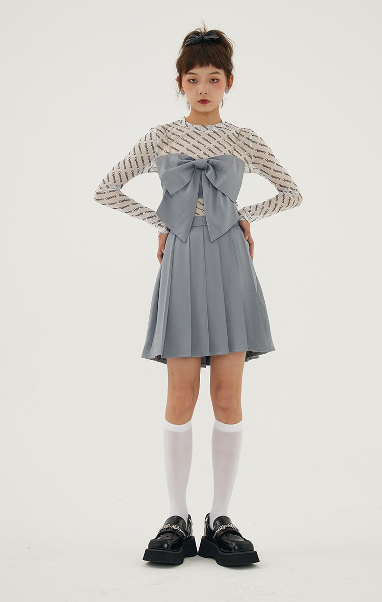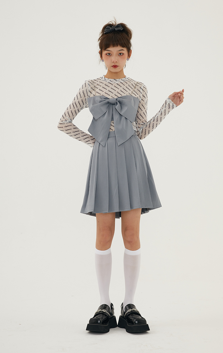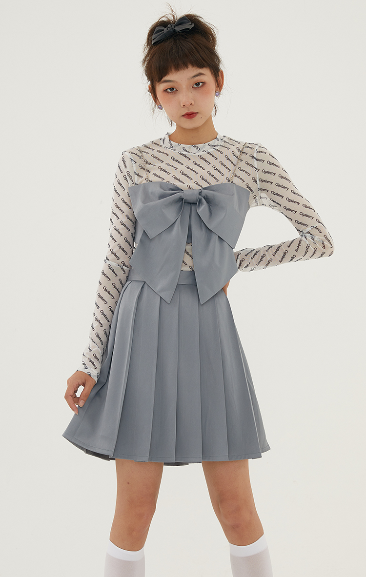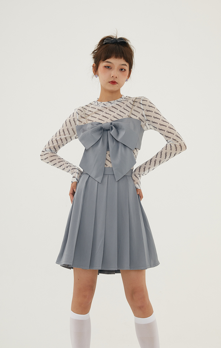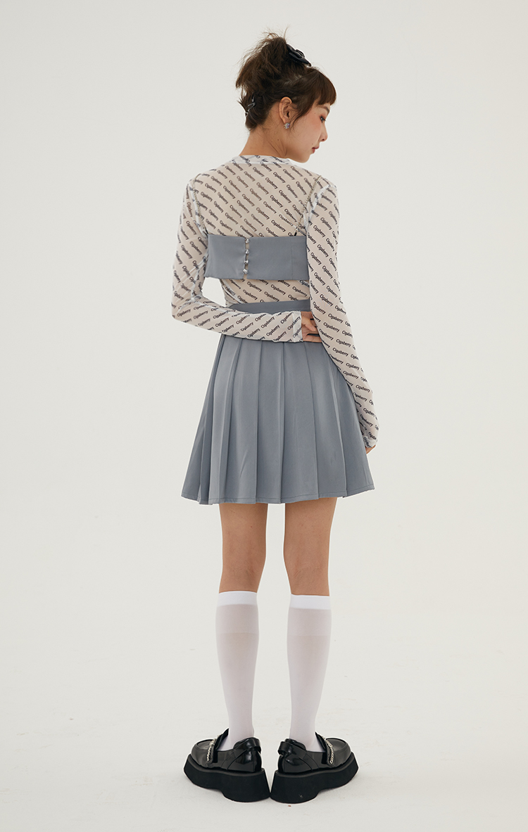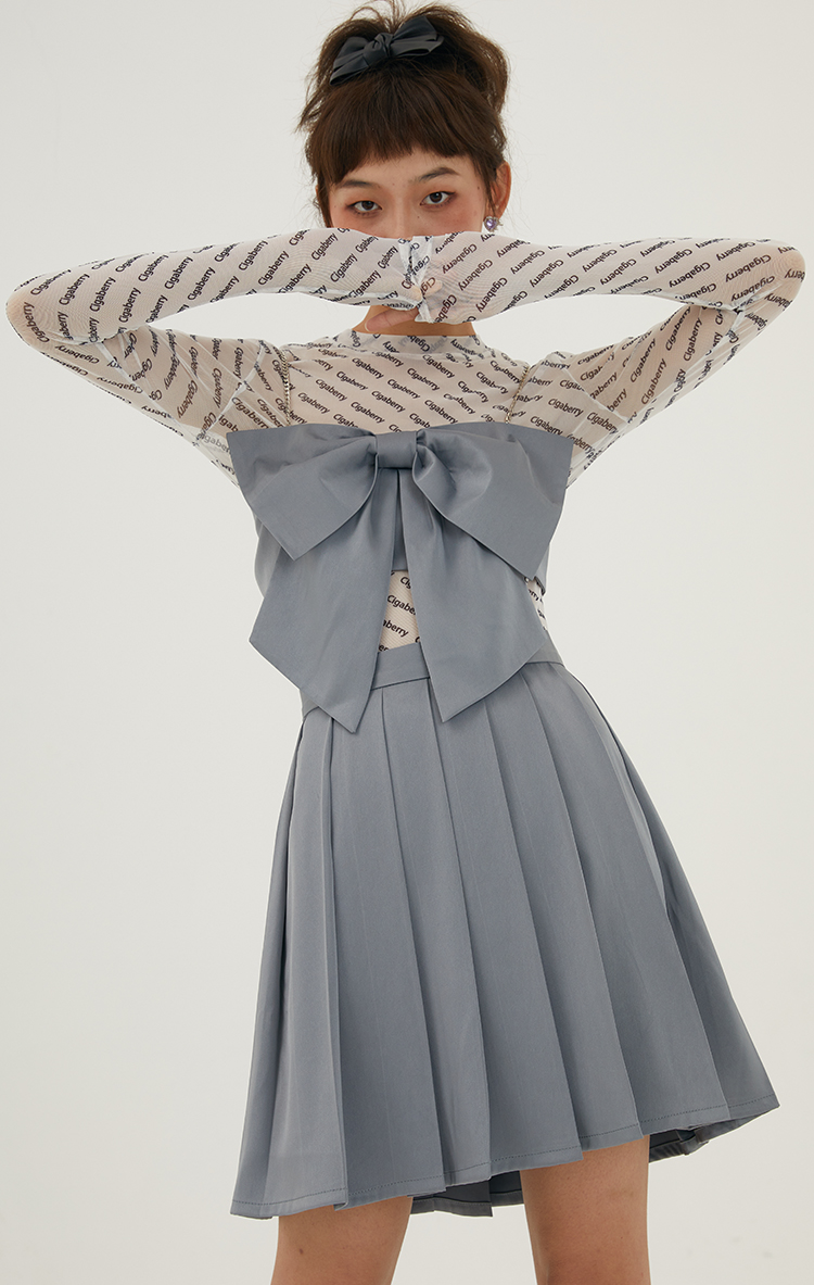 Cigaberry2021春夏流行灰色缎面百搭百褶半裙少女学院风半身裙