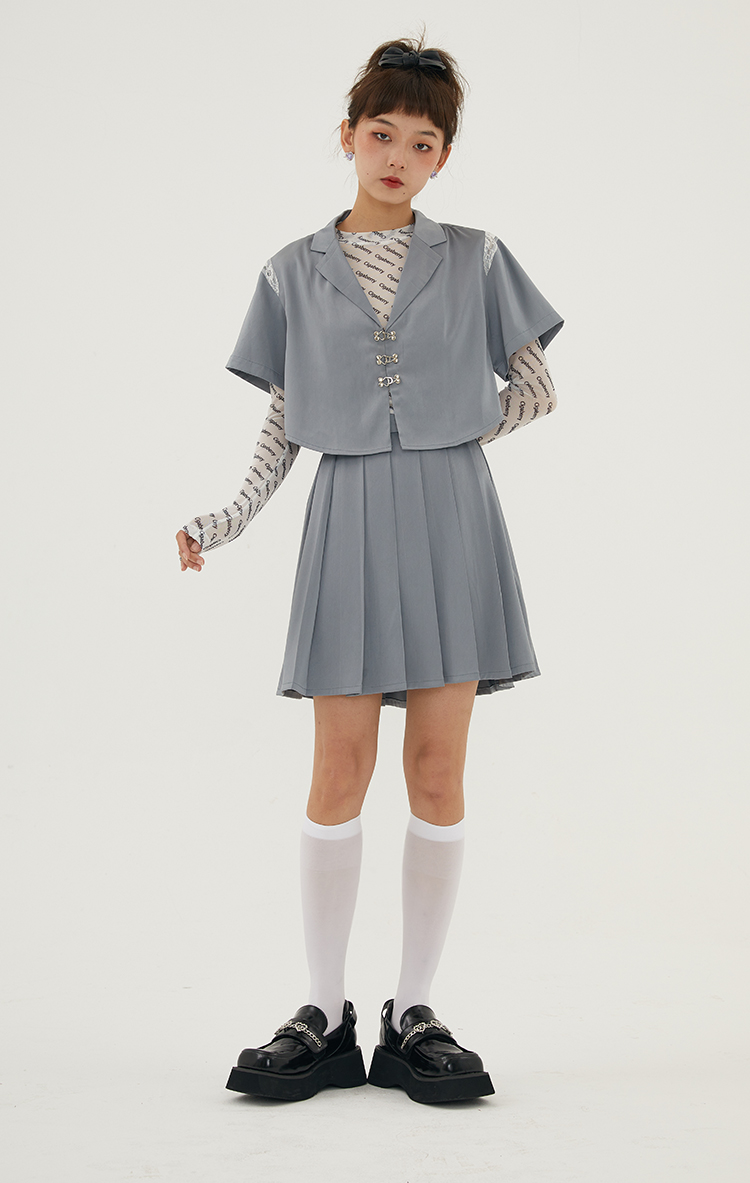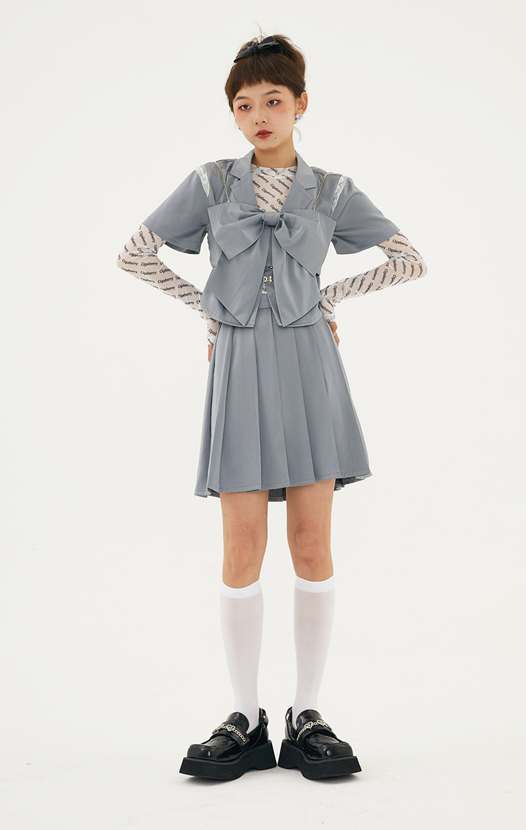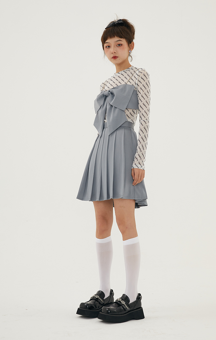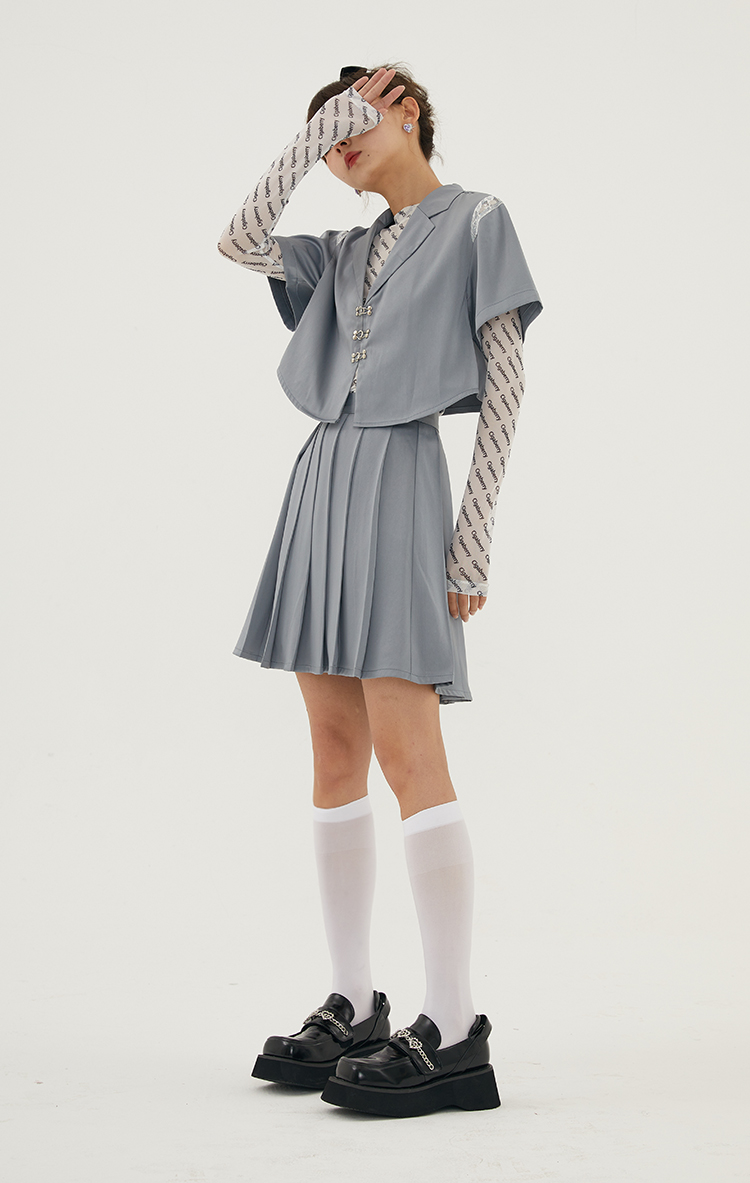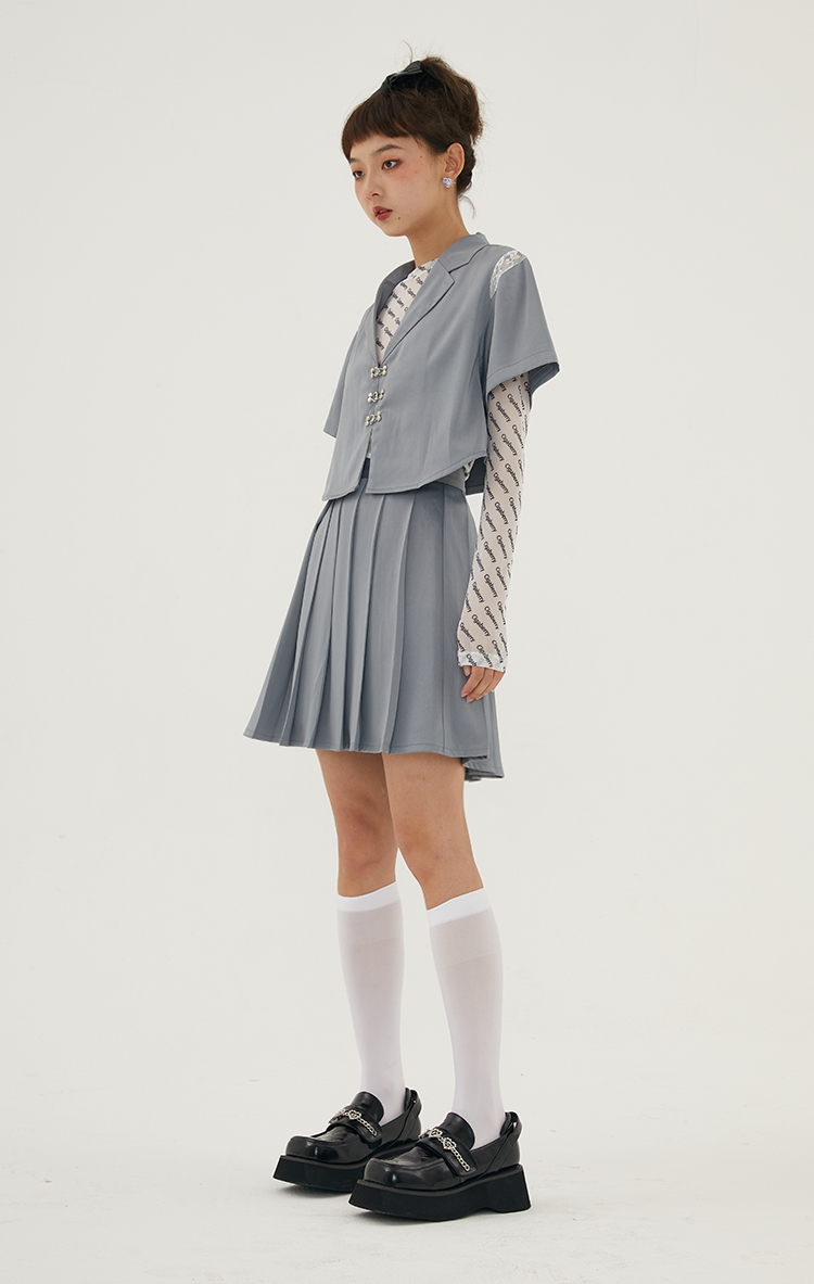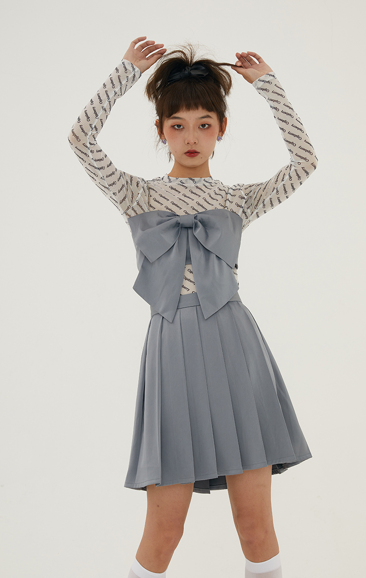 Cigaberry2021春夏流行灰色缎面百搭百褶半裙少女学院风半身裙