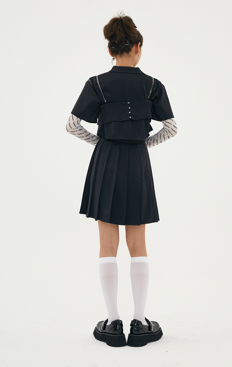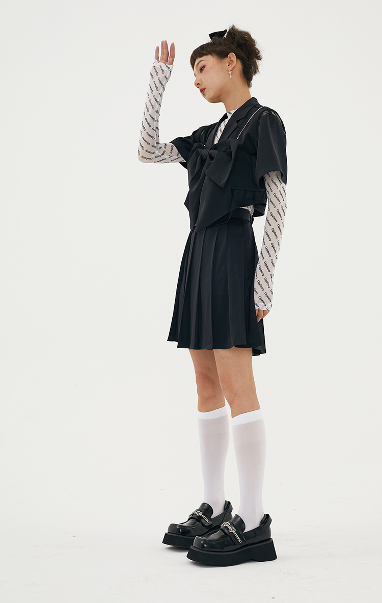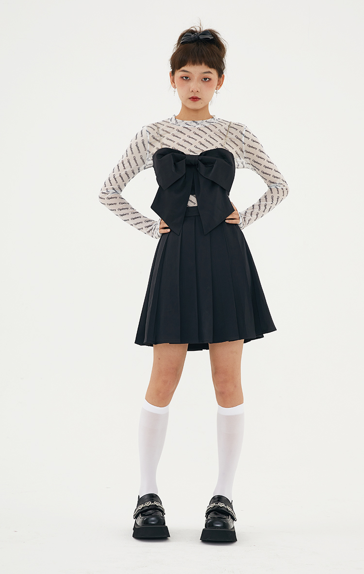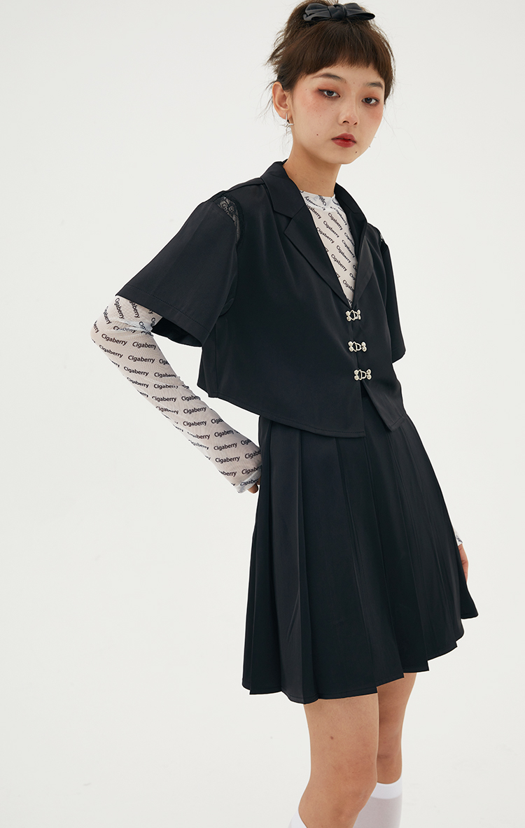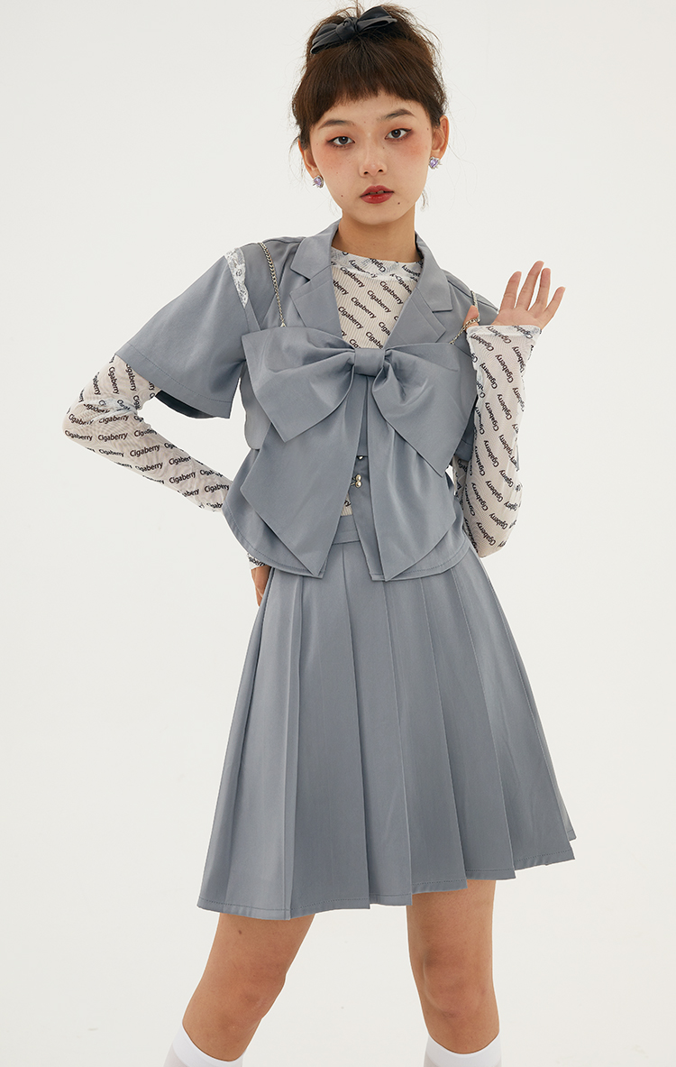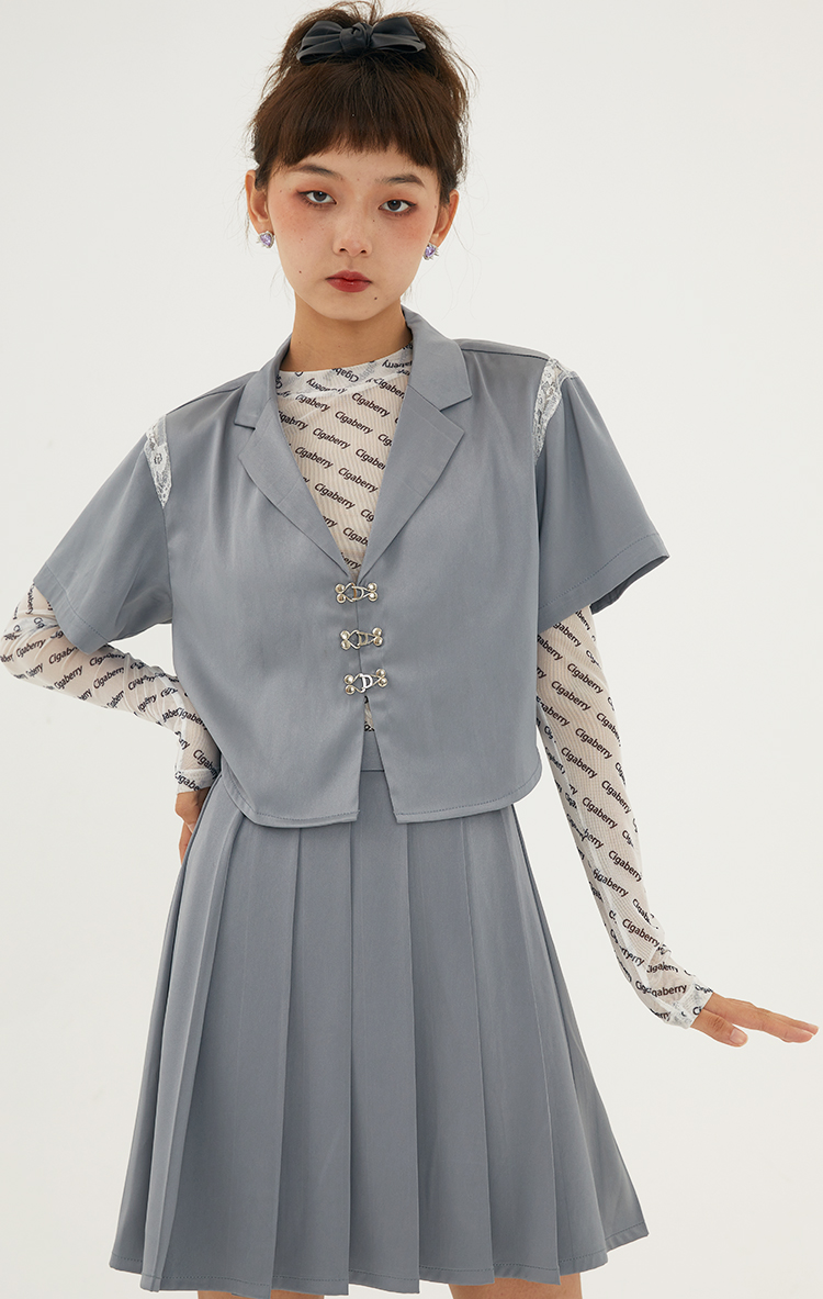 Cigaberry2021春夏流行灰色缎面百搭百褶半裙少女学院风半身裙