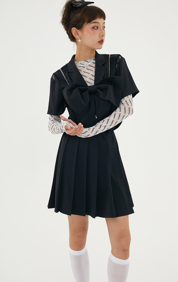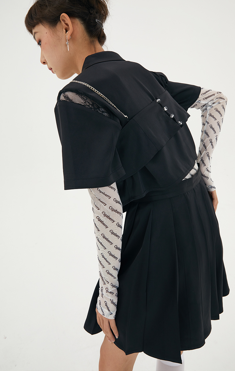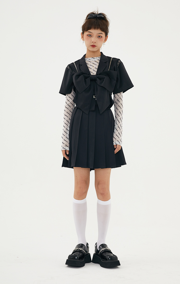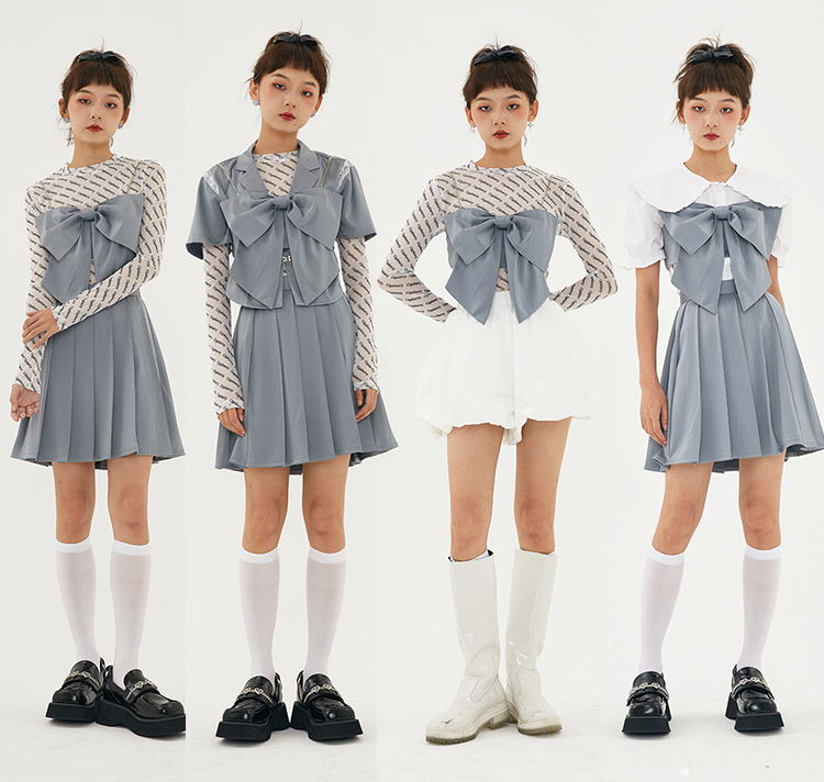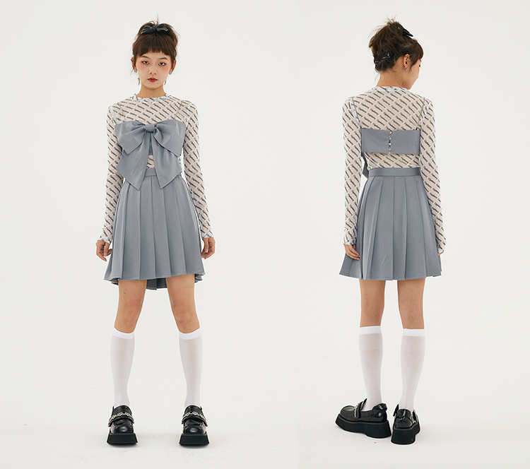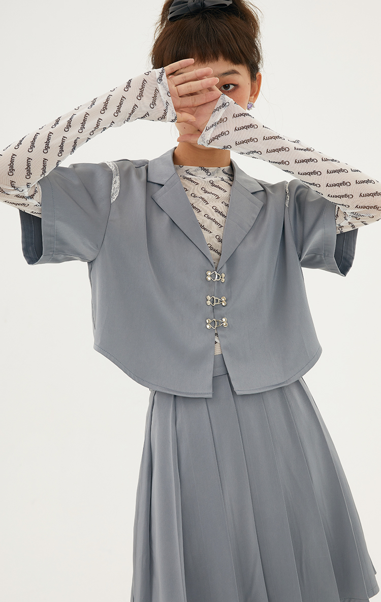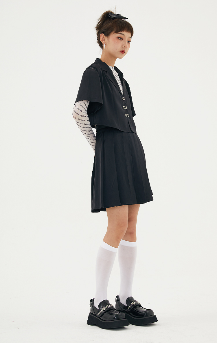Cigaberry2021春夏流行灰色缎面百搭百褶半裙少女学院风半身裙