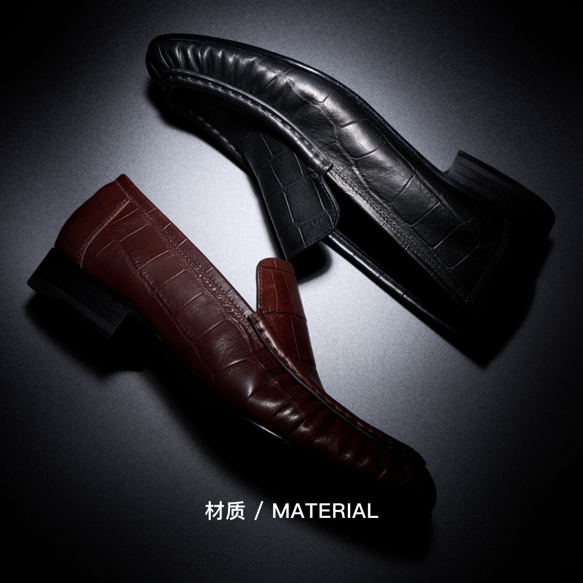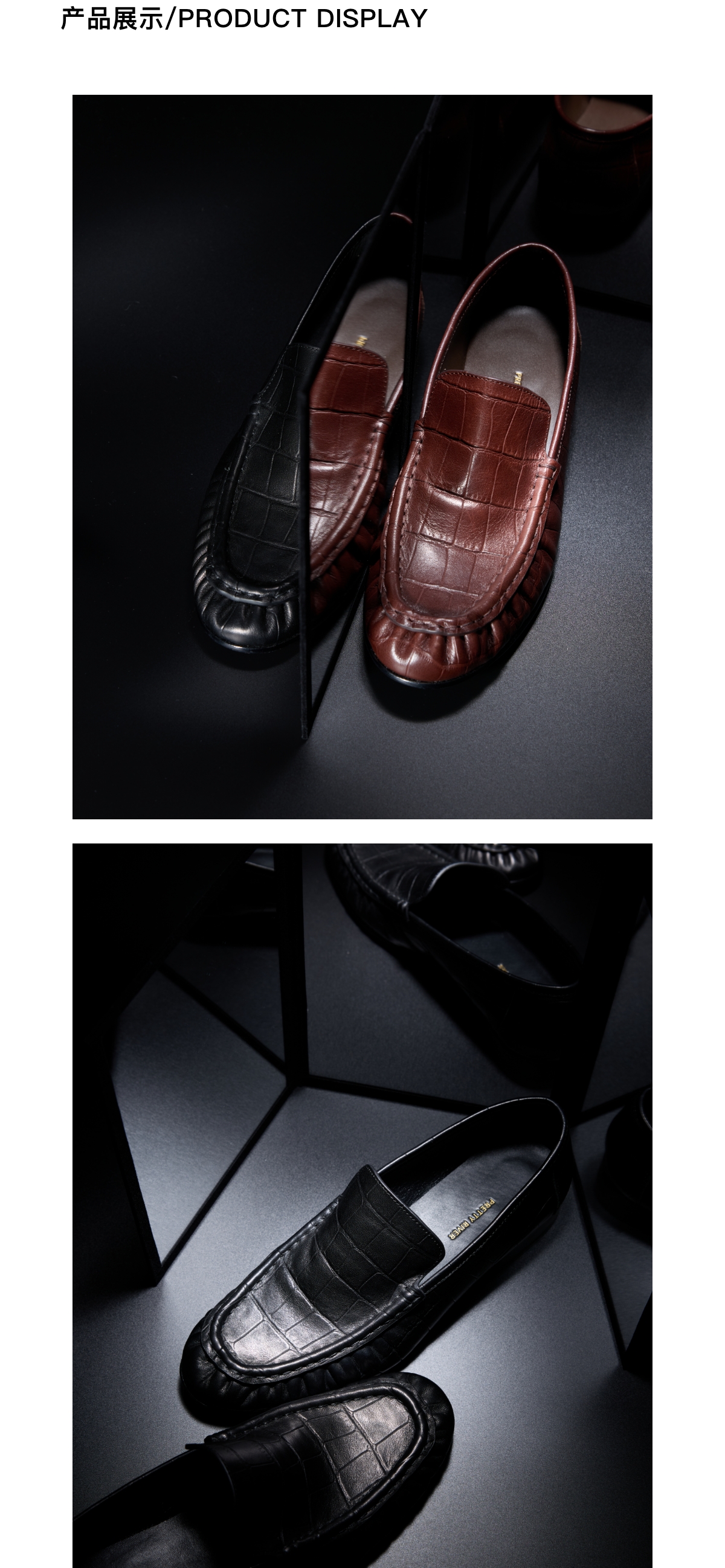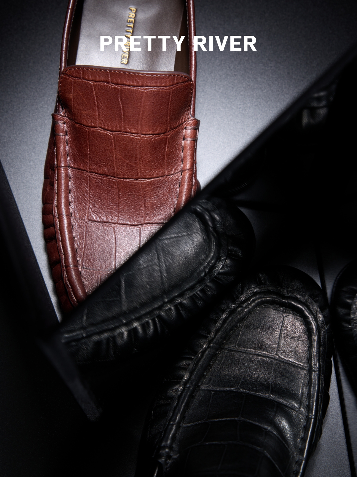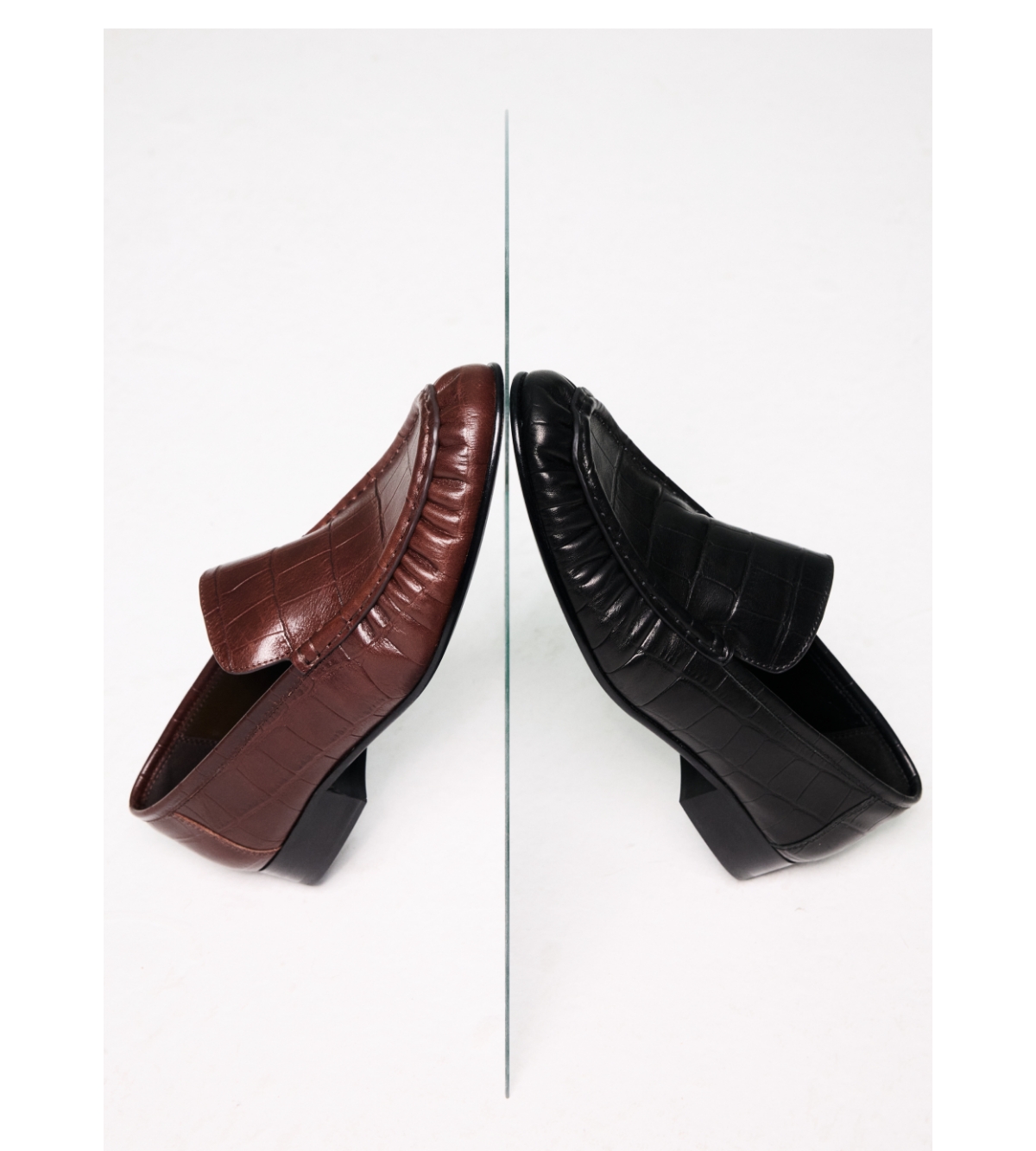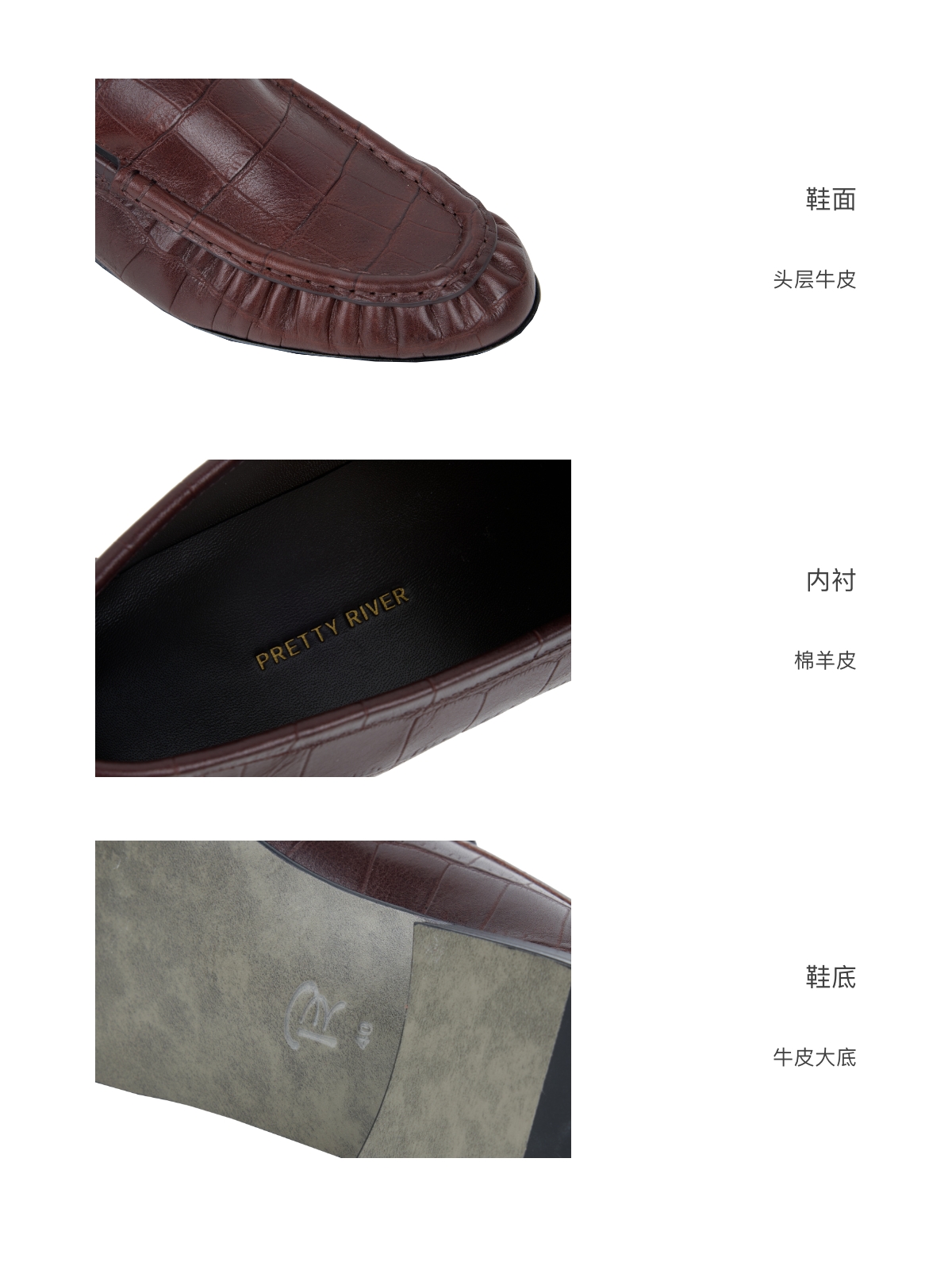 PRETTY RIVER鳄鱼纹尖头褶皱乐福