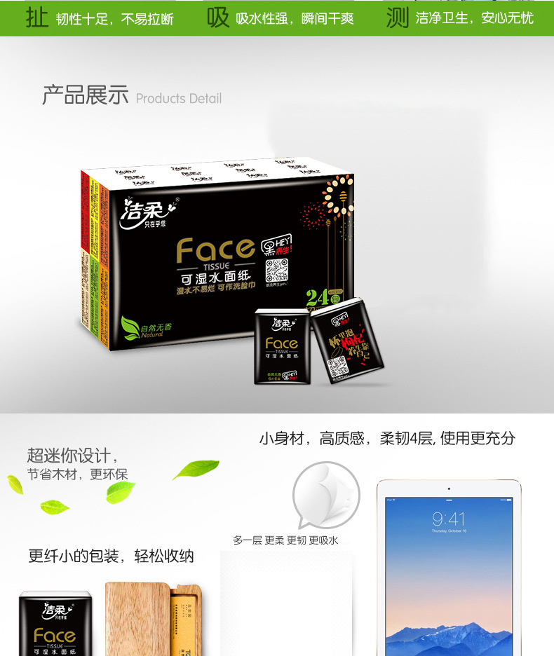 【洁柔手帕纸】4层6片*24包自然无香居家日用清洁工具便携纸巾餐巾纸