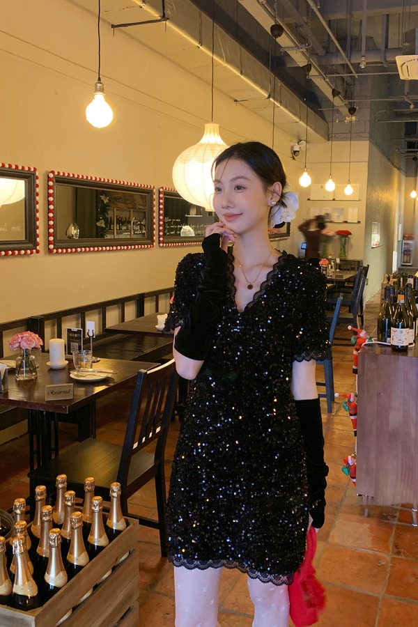ELLA JADE 名媛礼服亮片小黑裙连衣裙 21886