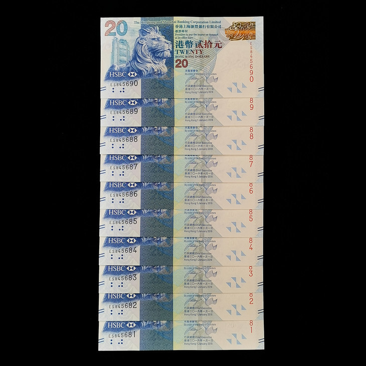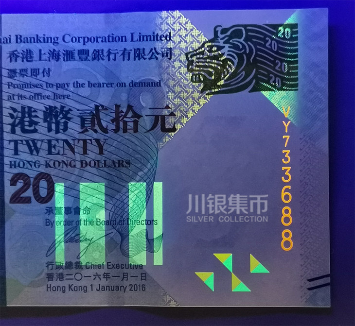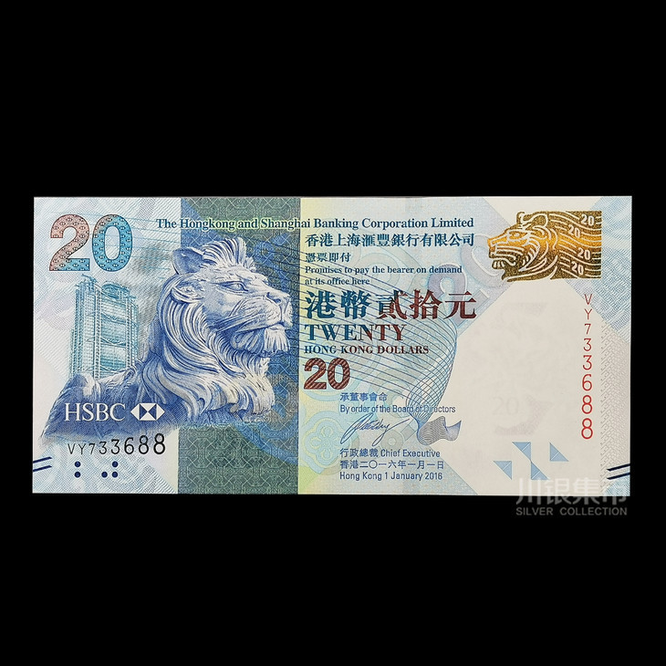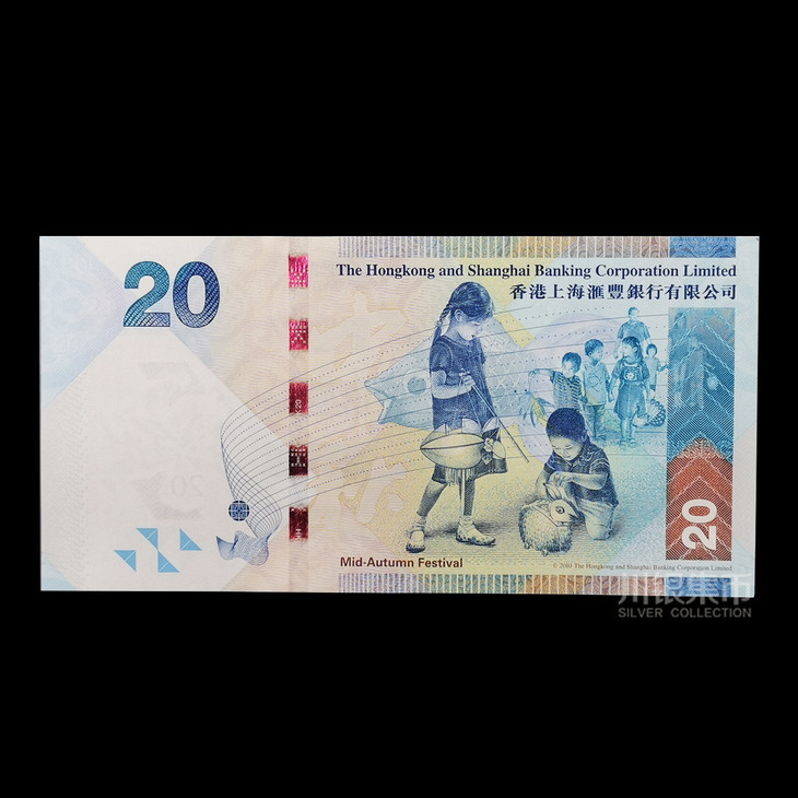 香港上海汇丰银行发行,我国首枚吉庆佳节中秋纪念钞隆重面世。面值为20元,同20港币等值流通。