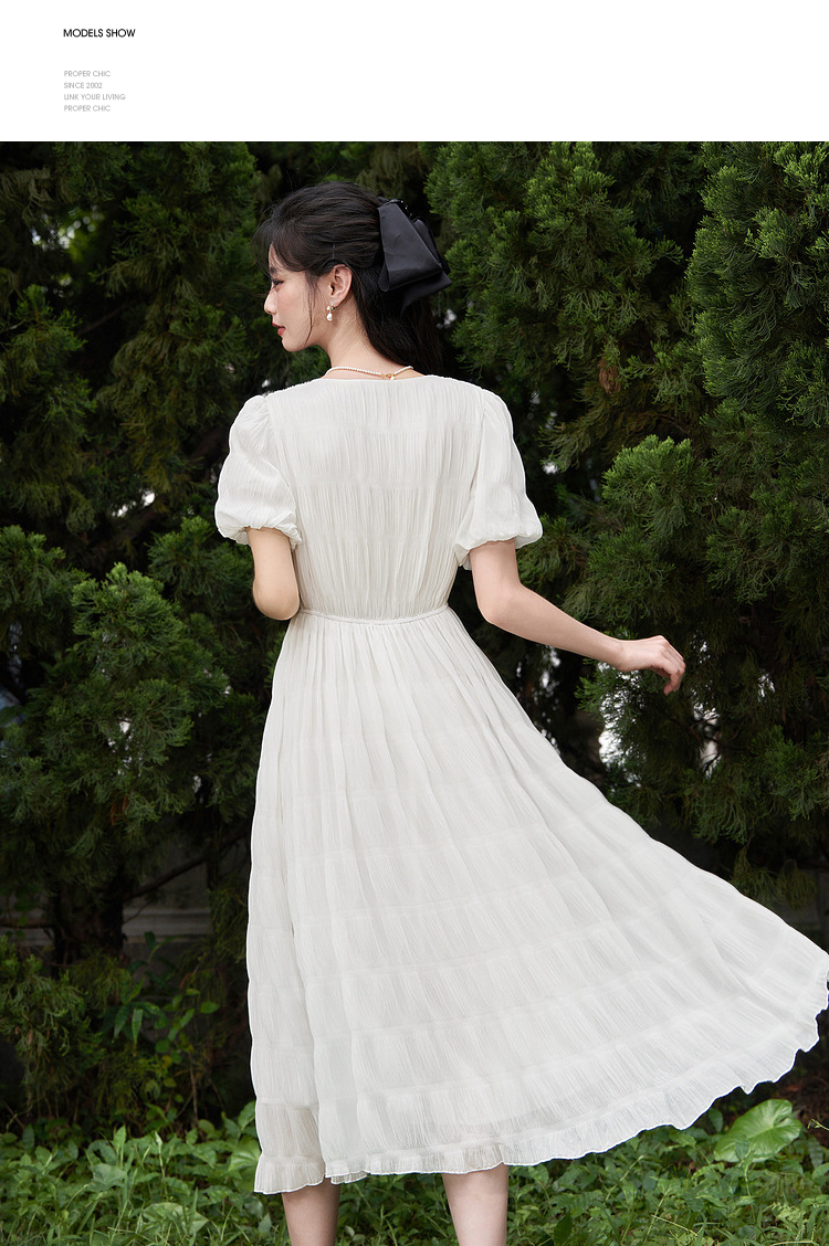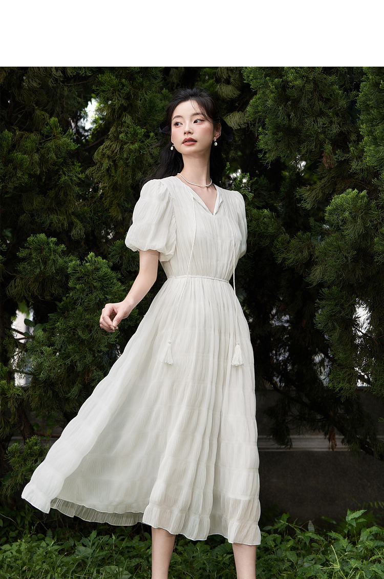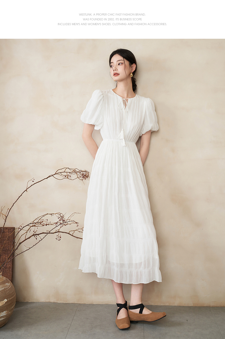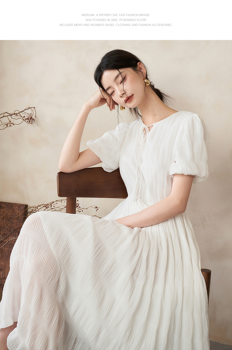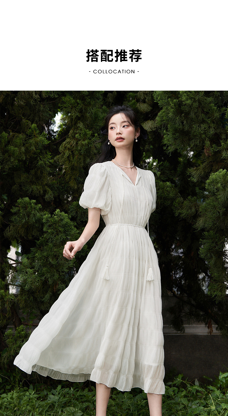 西遇法式温柔风连衣裙女夏季新款肌理感花苞袖垂感高级蛋糕裙D1040840
