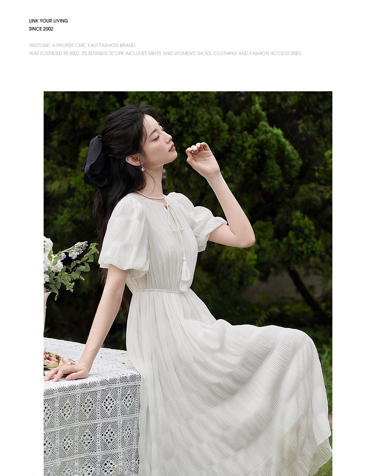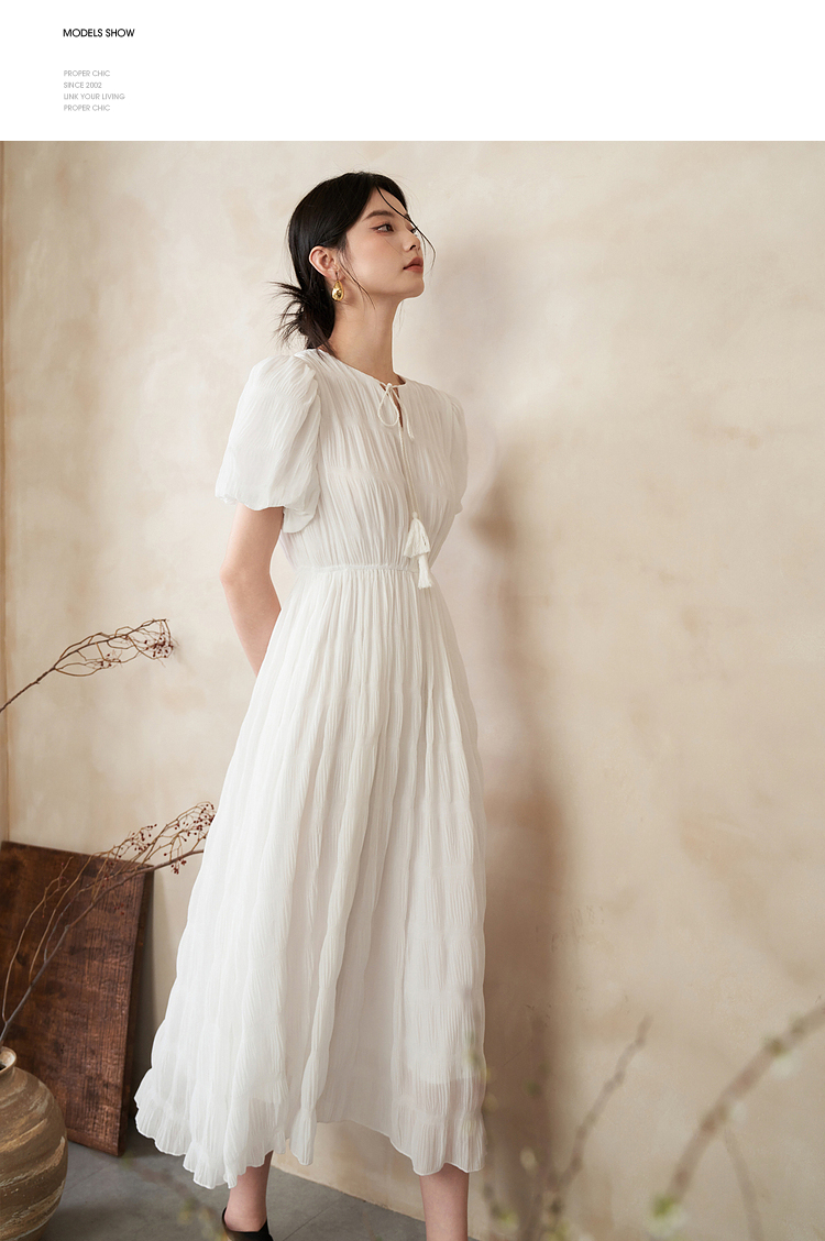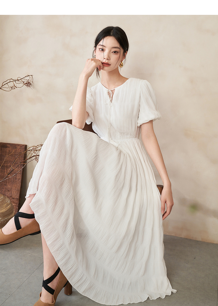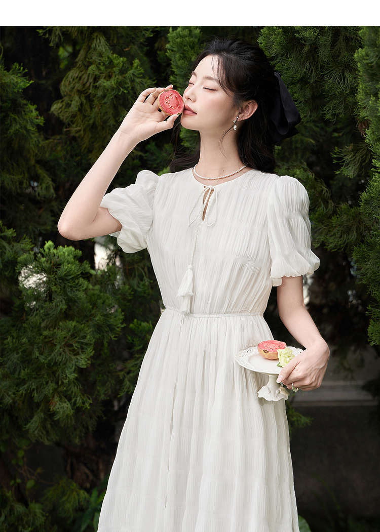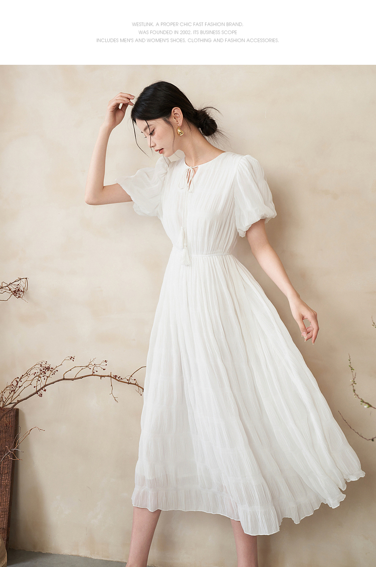 西遇法式温柔风连衣裙女夏季新款肌理感花苞袖垂感高级蛋糕裙D1040840