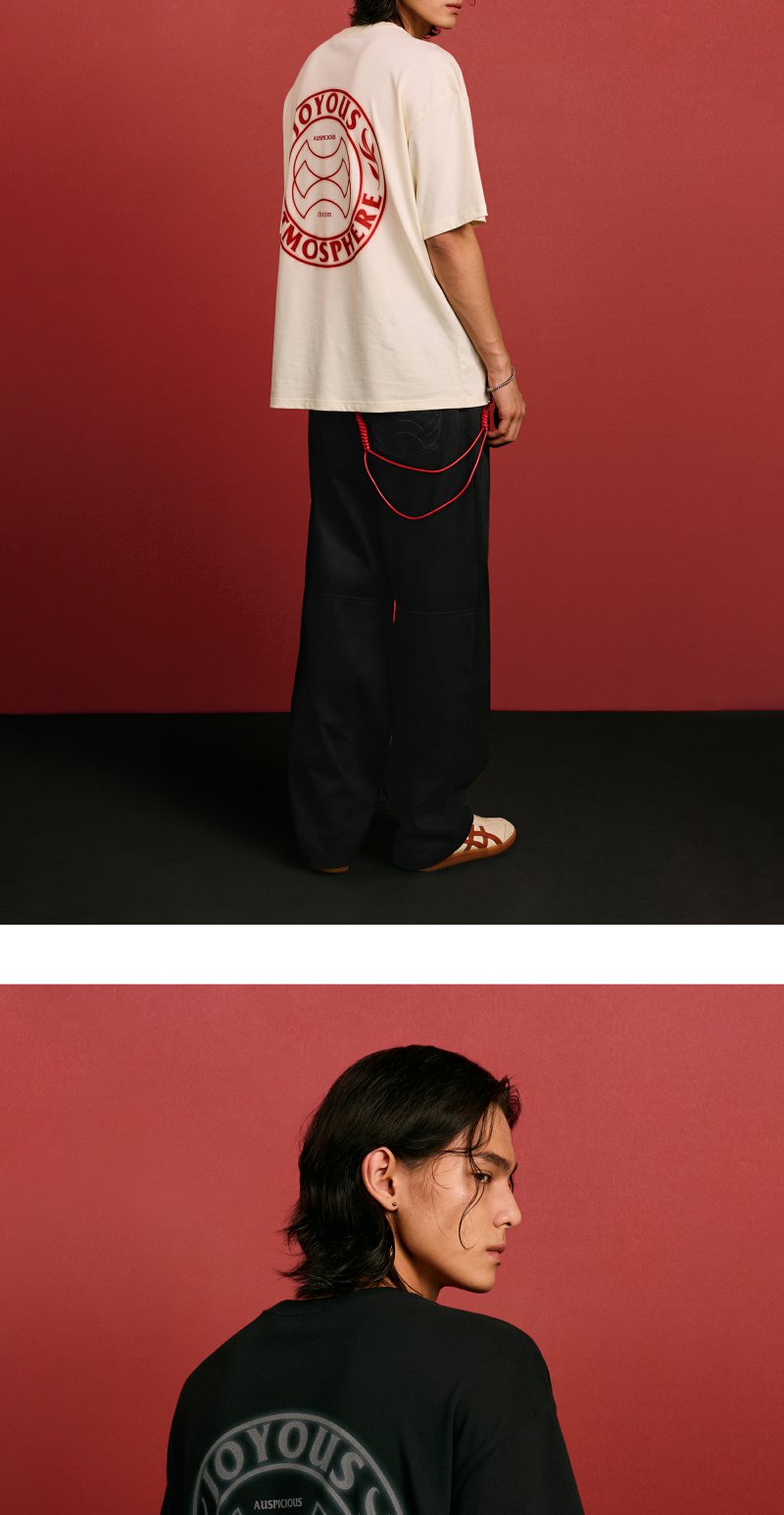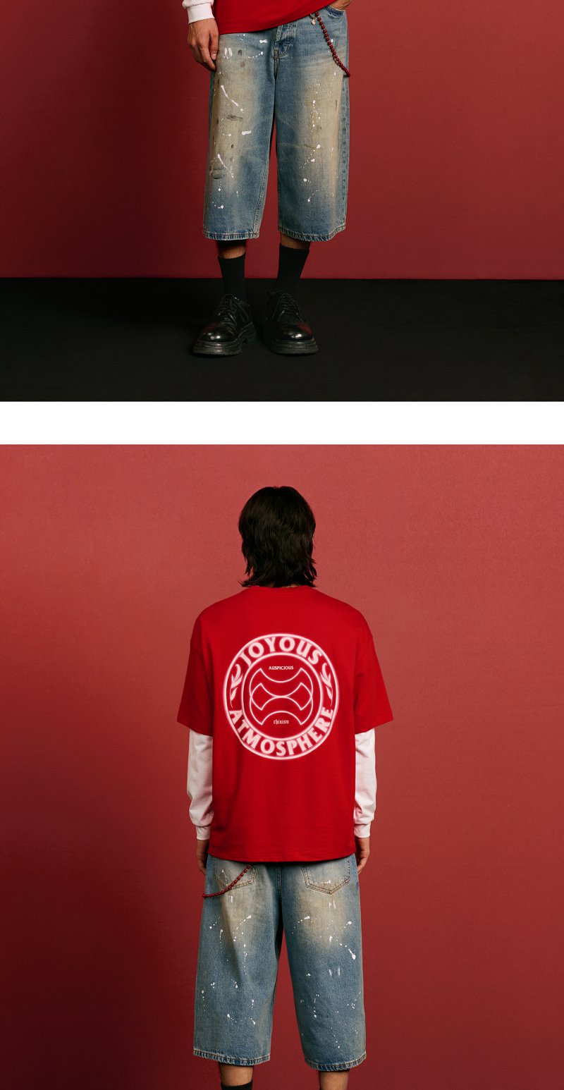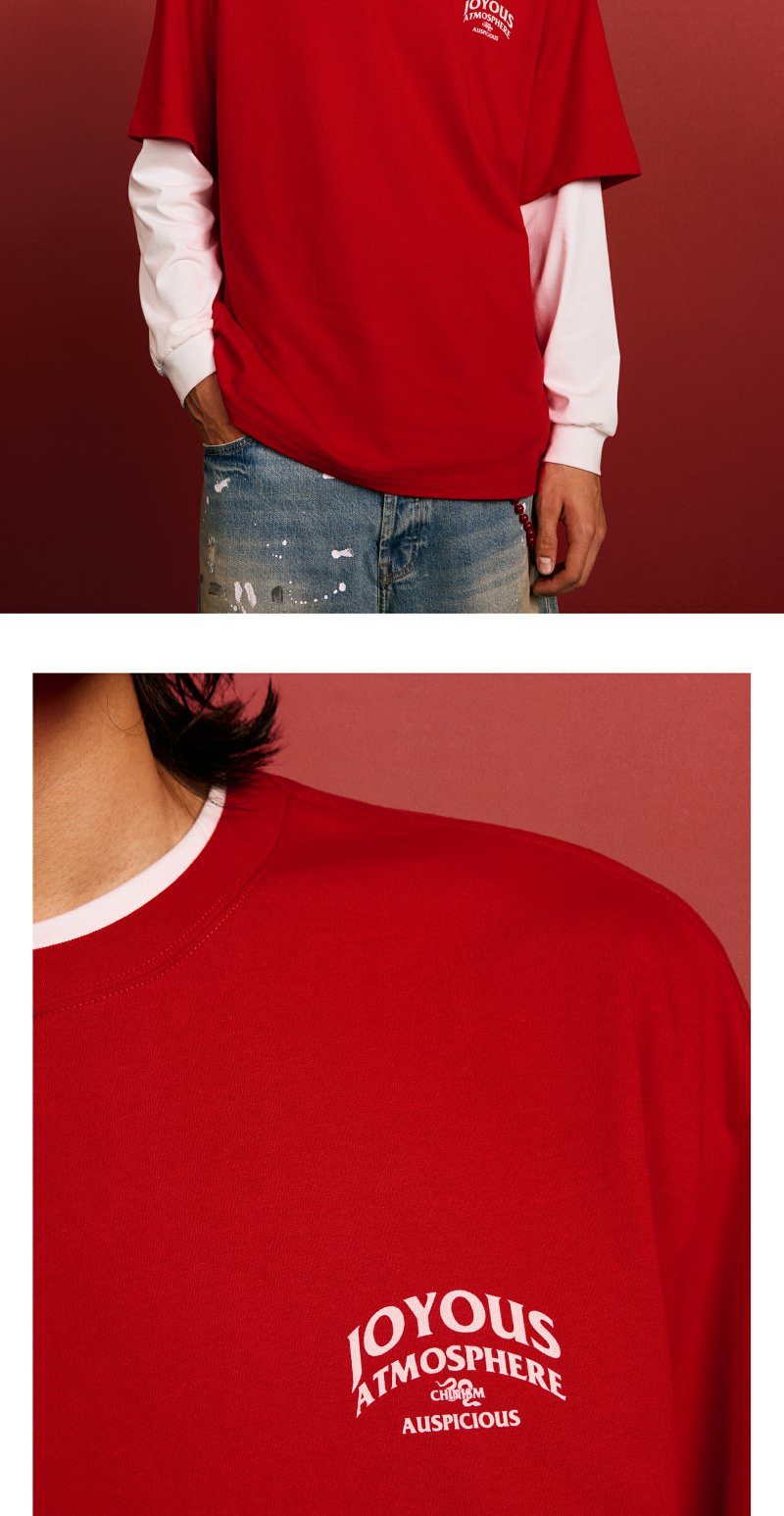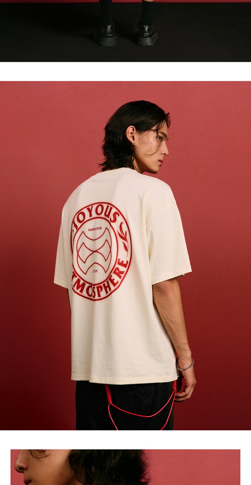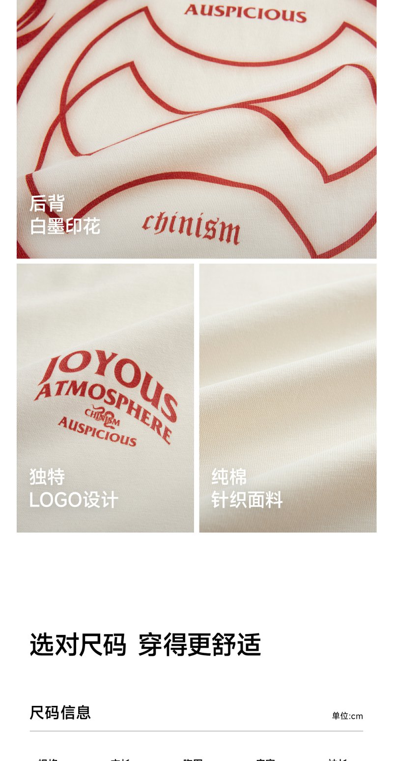 CHINISM赤尘 CH红色重磅短袖T恤男夏季情侣男生宽松纯棉宽松半袖