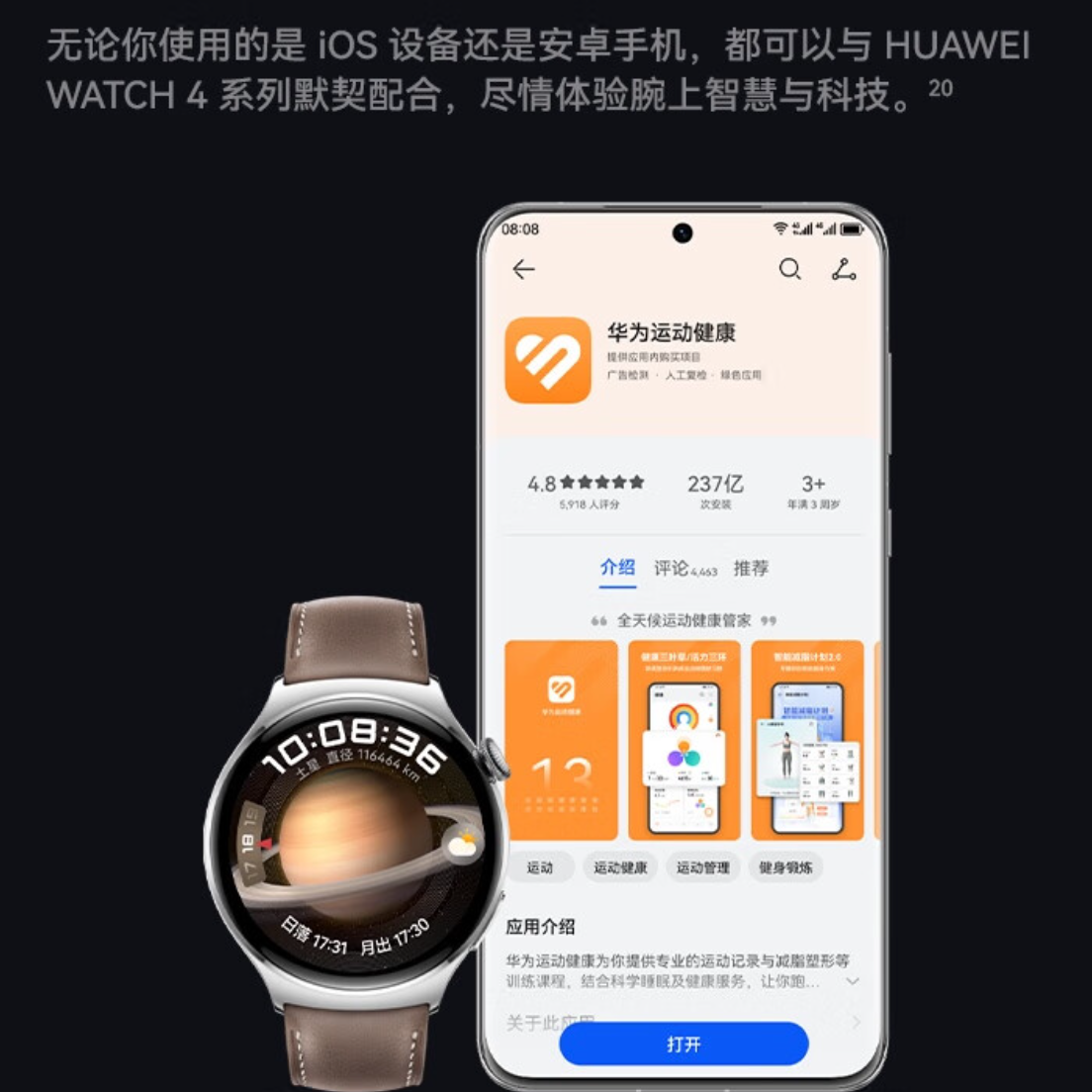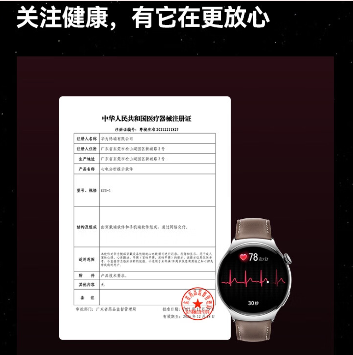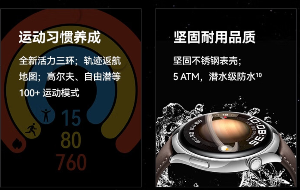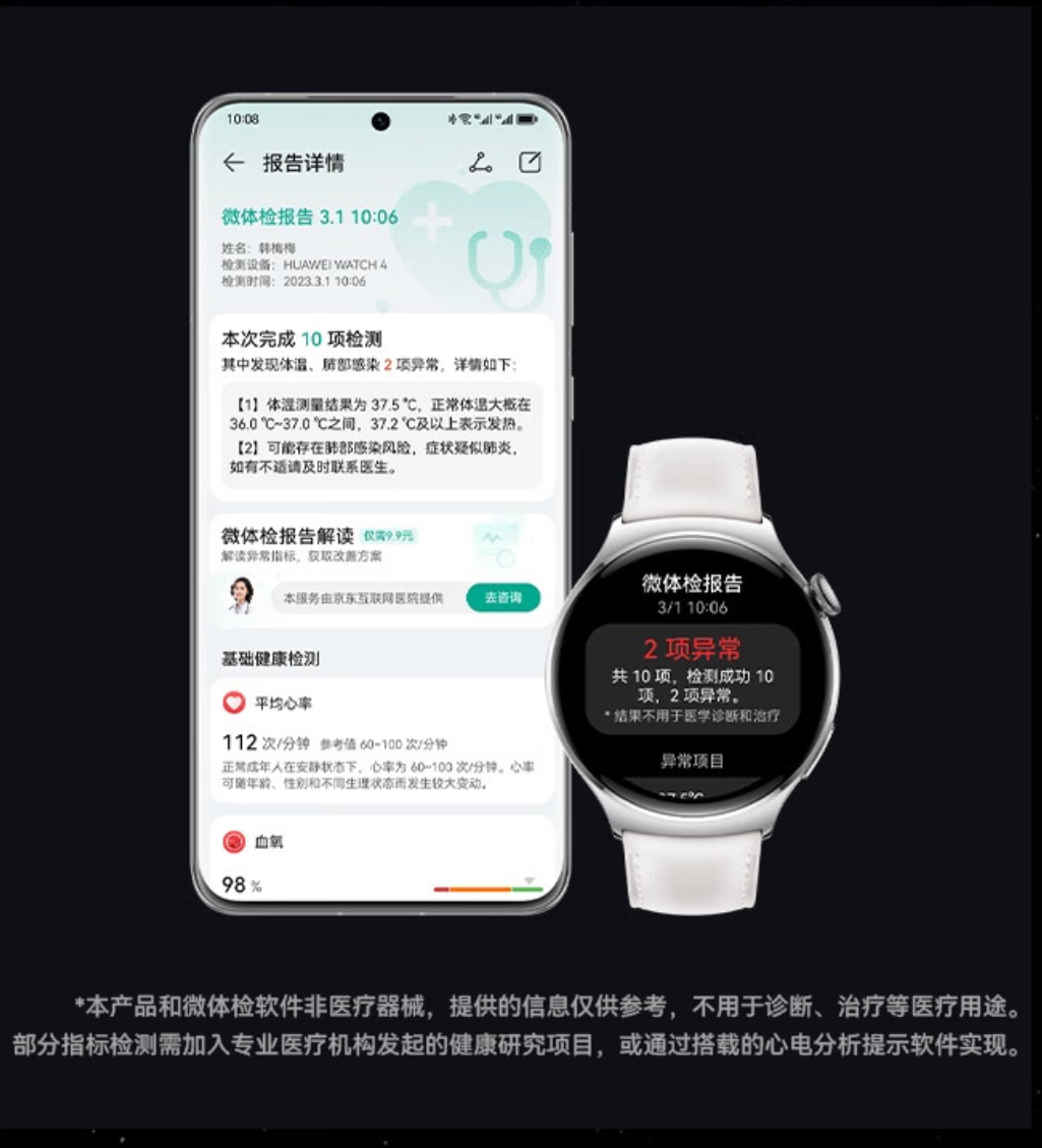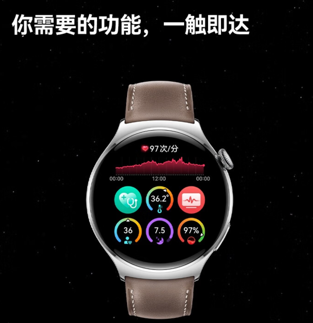 华为WATCH 4华为手表智能手表呼吸健康研究一键微体检华为运动手表幻月黑支持龙年表盘