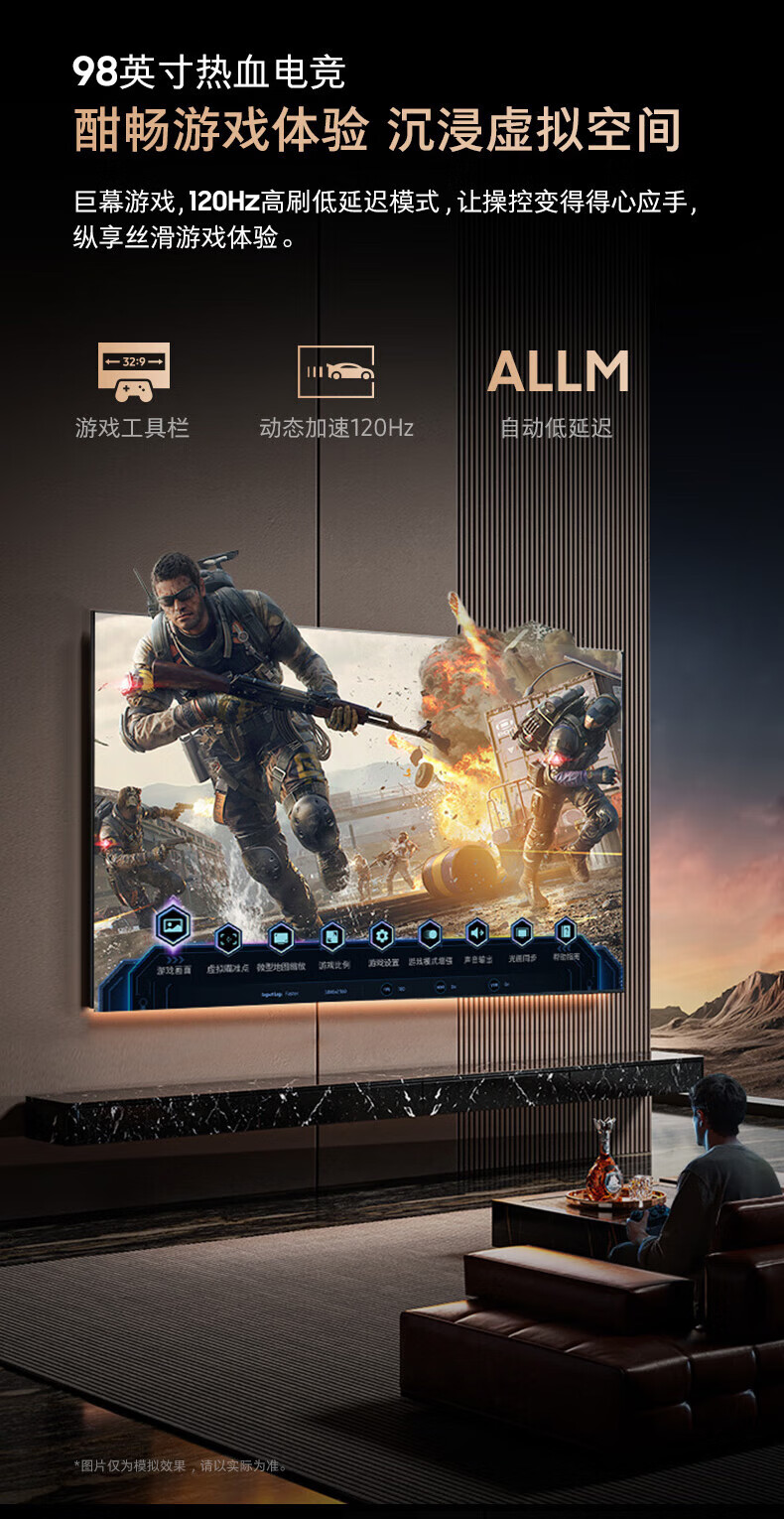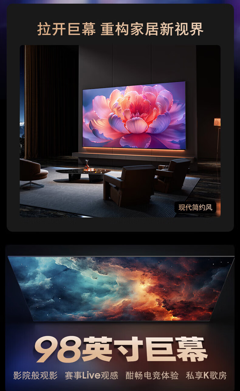 三星电视98英寸 3+64G内存 平板液晶AI电视薄4K全面屏 AI智能补帧 臻彩巨幕电视 98英寸 UA98DU9100JXXZ