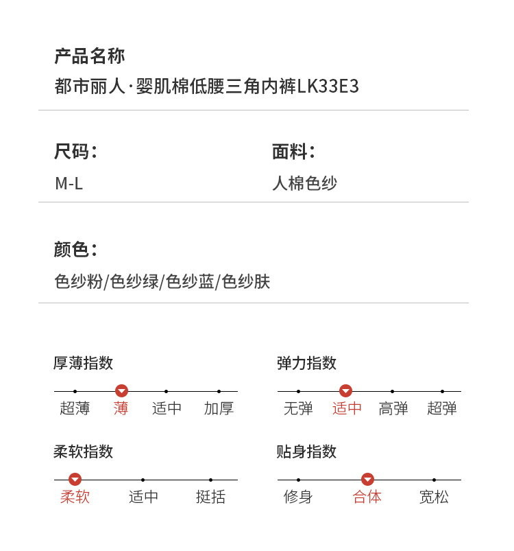 都市丽人健康系列色纱人棉三角裤女士内裤低腰三角裤LK33E3