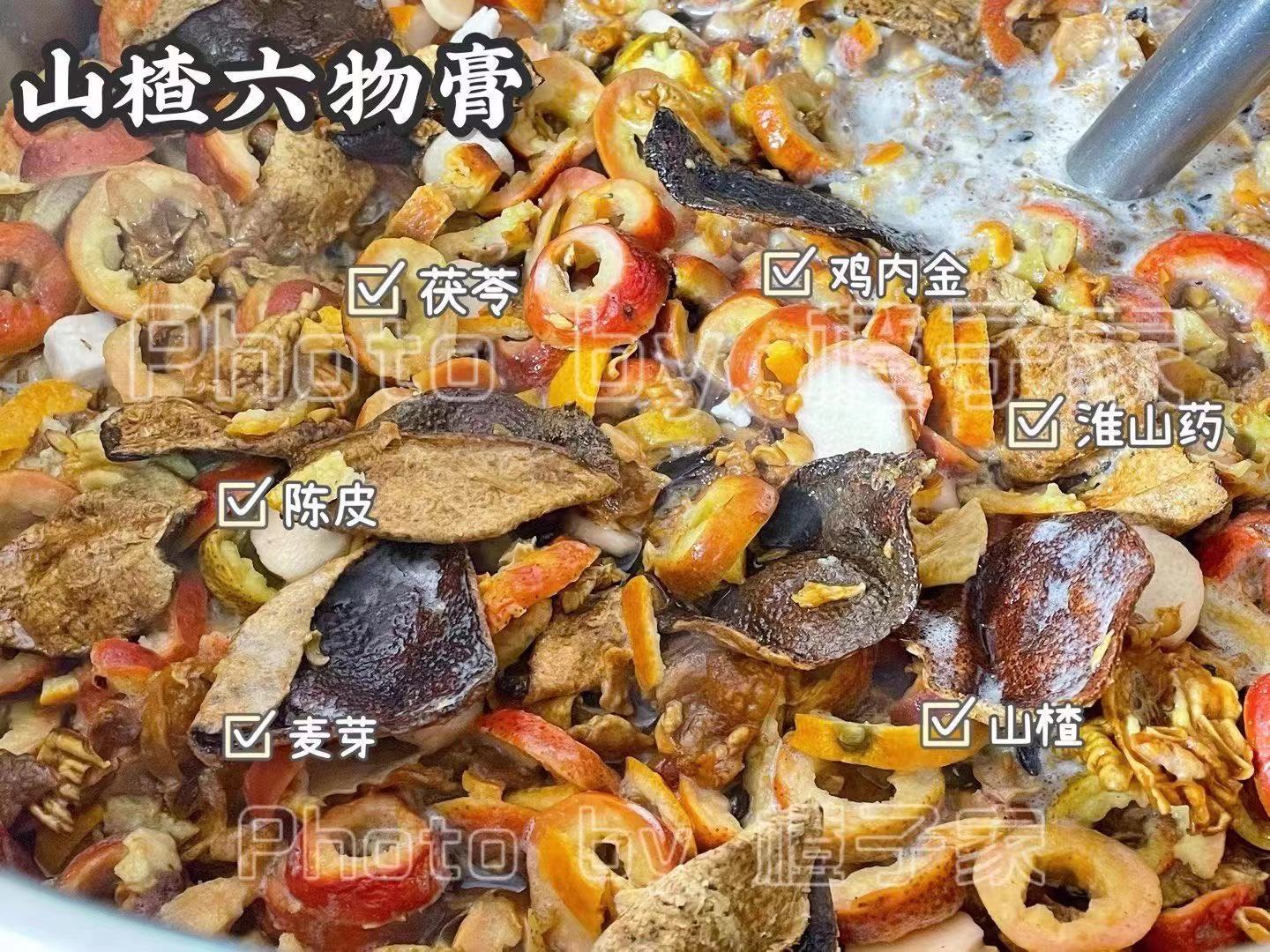 【原材料】山楂、麦芽、淮山、茯苓、鸡内金、陈皮、老冰糖