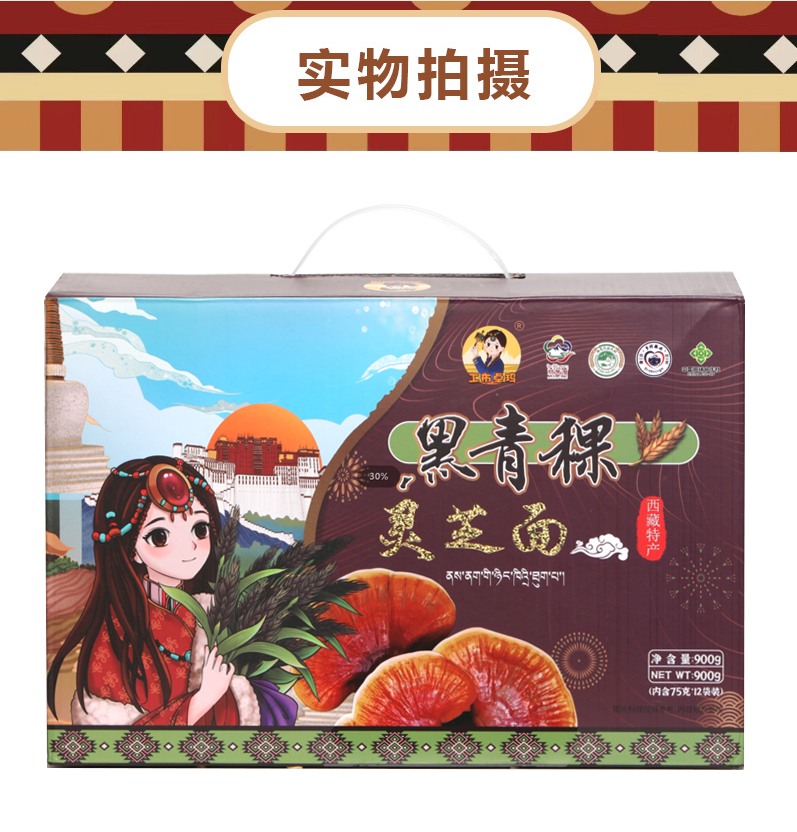 【西藏帮扶】西藏黑青稞灵芝面 900g/盒 (75gx12袋)