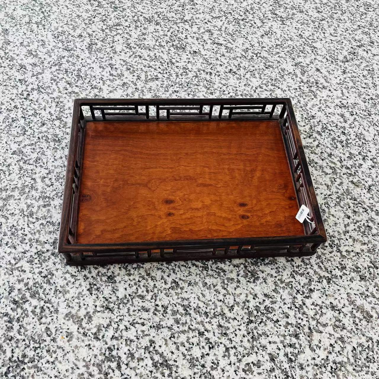 水波纹文房都承盘°血檀镶缅花