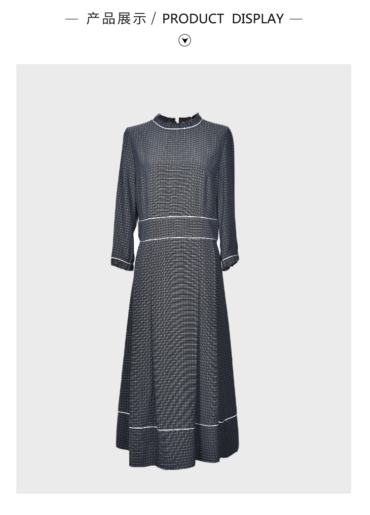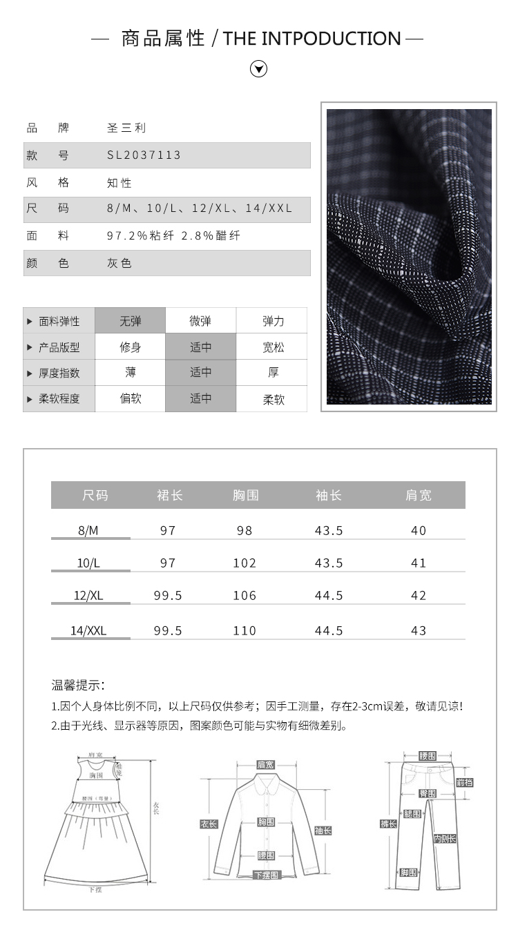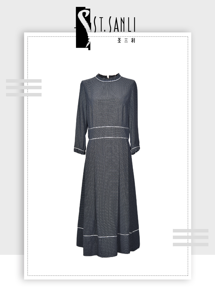 圣三利女装 新款气质优雅长款收腰弹力针织格子连衣裙SL2037113
