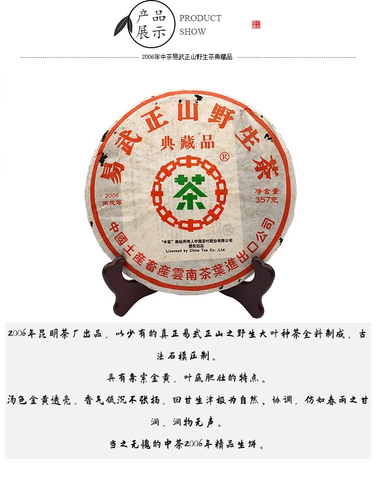 中粮-中茶2006年易武正山野生茶典藏版(生茶16年干仓)357g /云南干仓直发