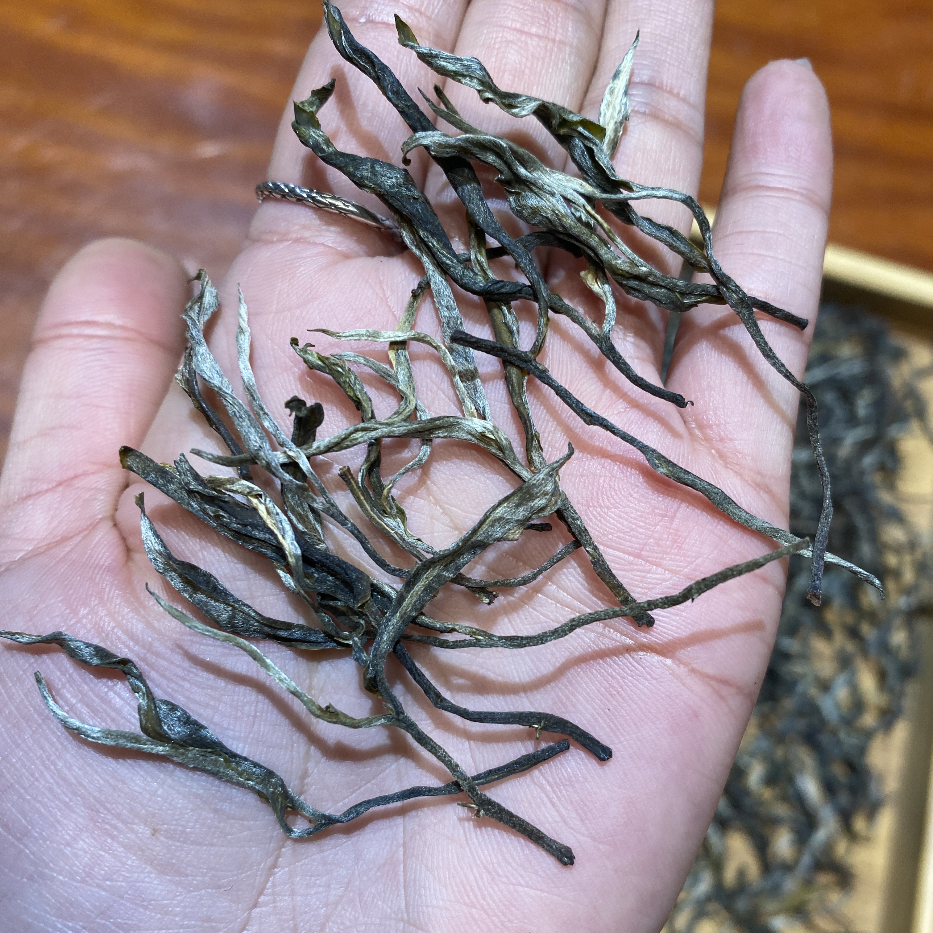 往年这时候才发芽,今年由于天气较好,春茶采摘较早,昨日刚到店。