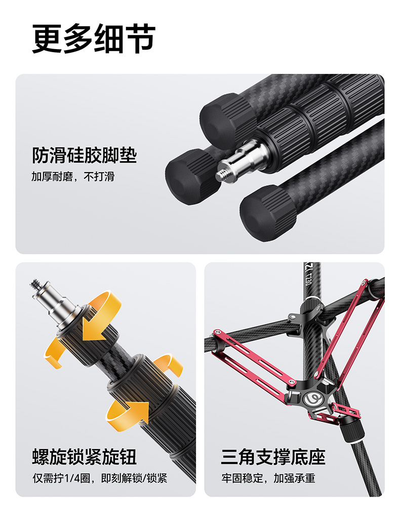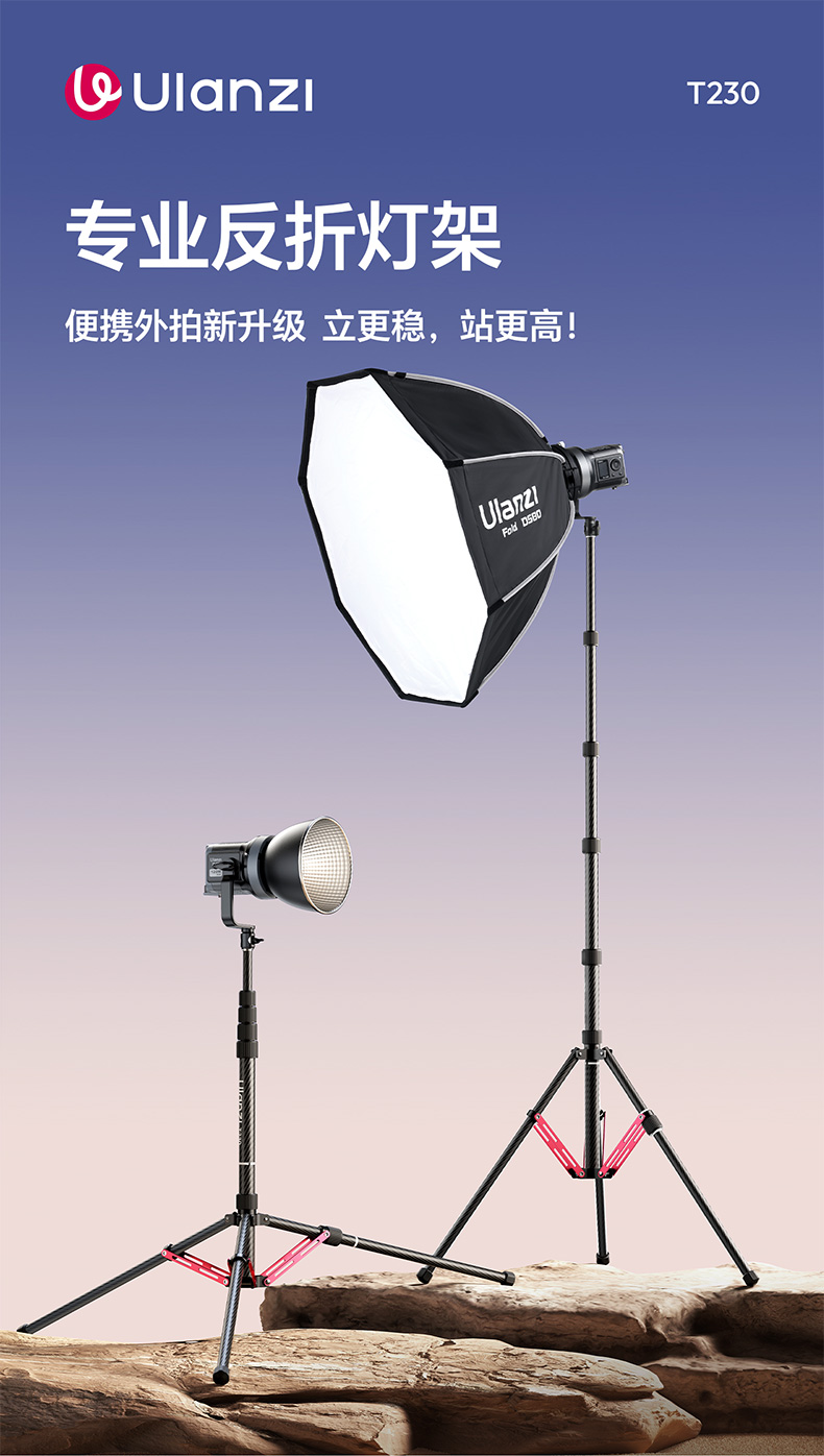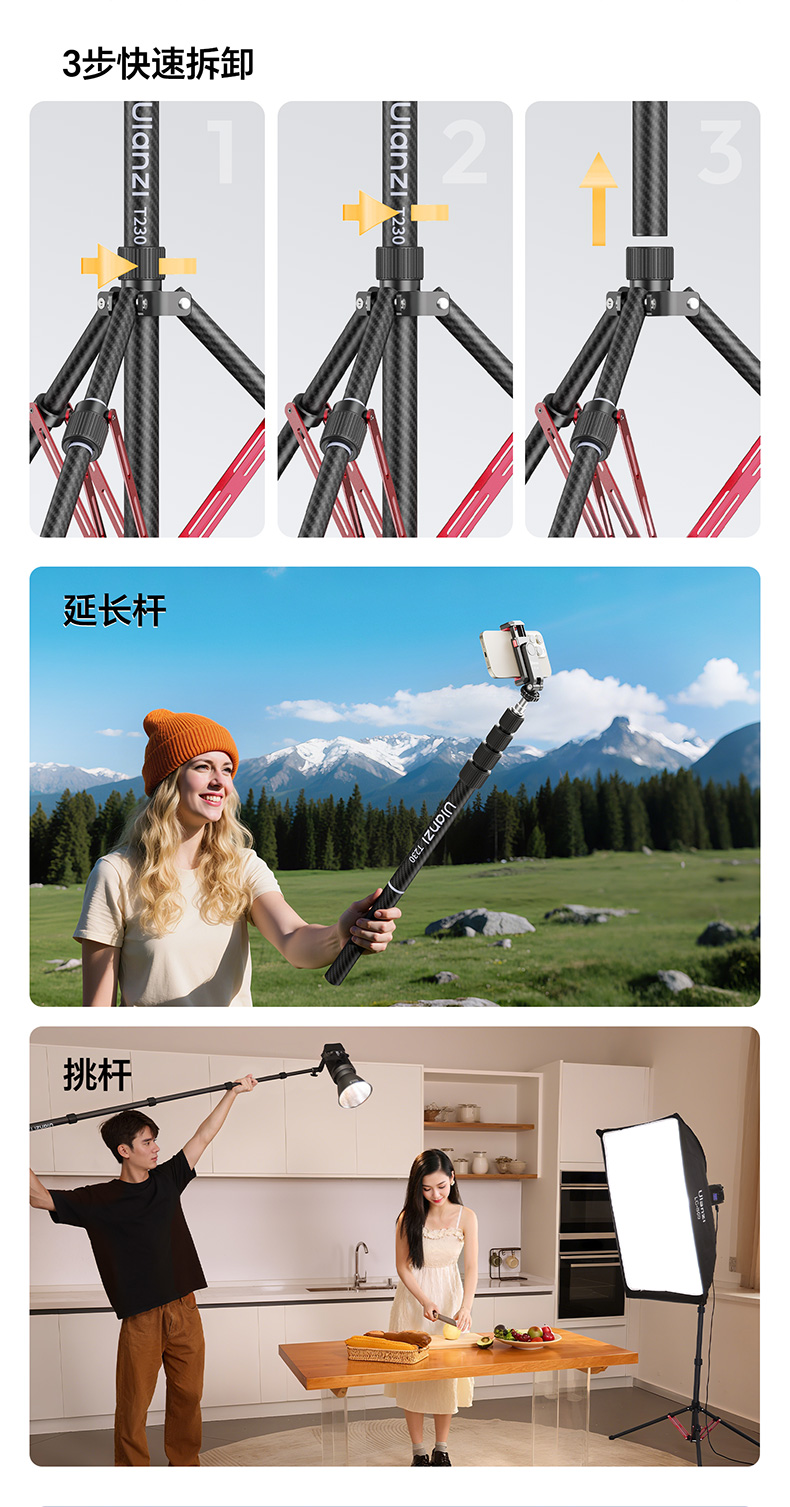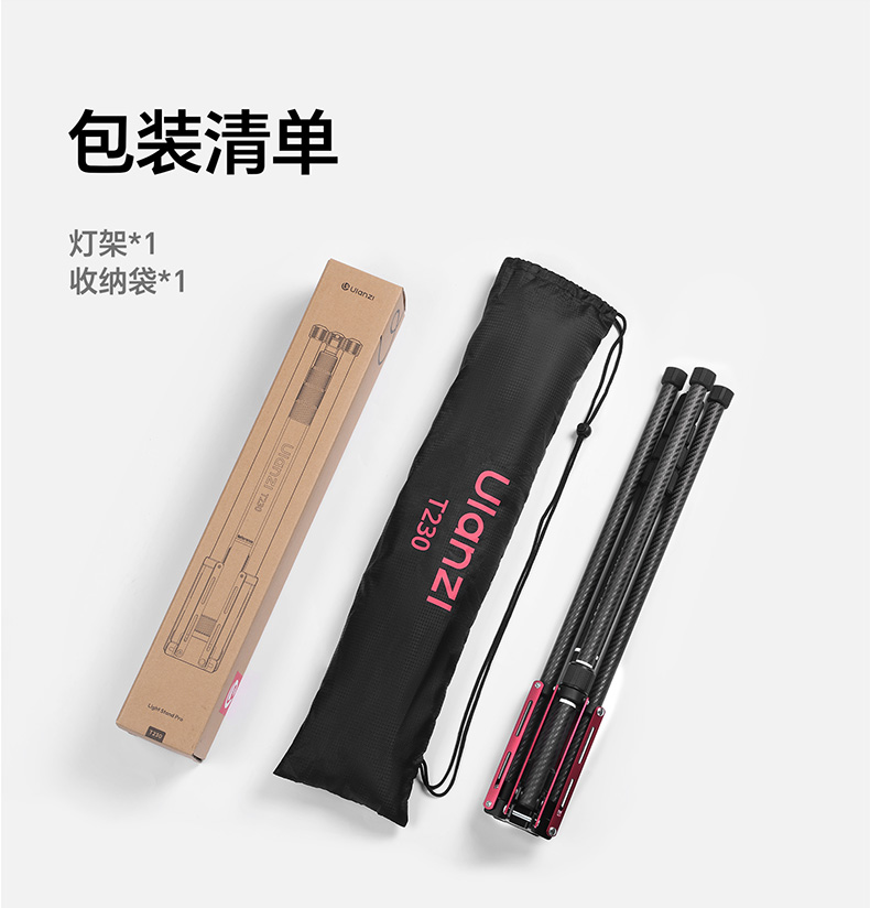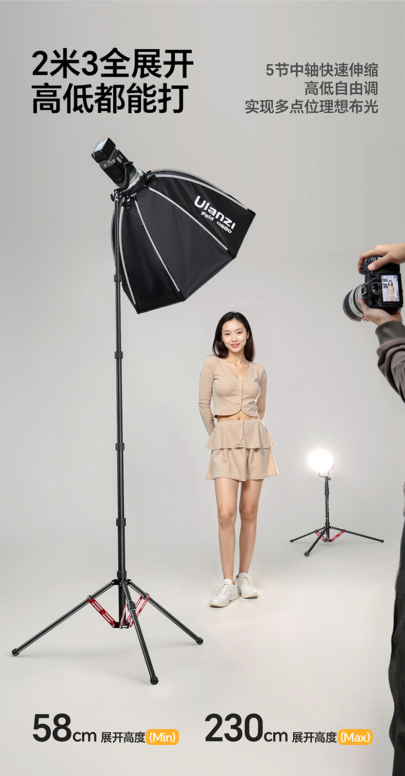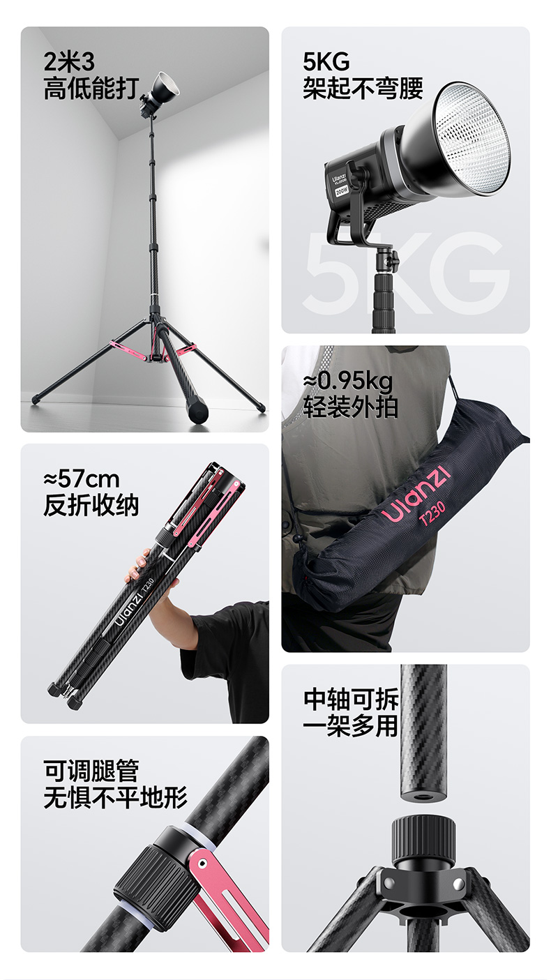 Ulanzi优篮子T230碳纤维专业反折灯架补光灯闪光灯室内直播支架户外摄影摄像手机相机微单多功能便携三脚架