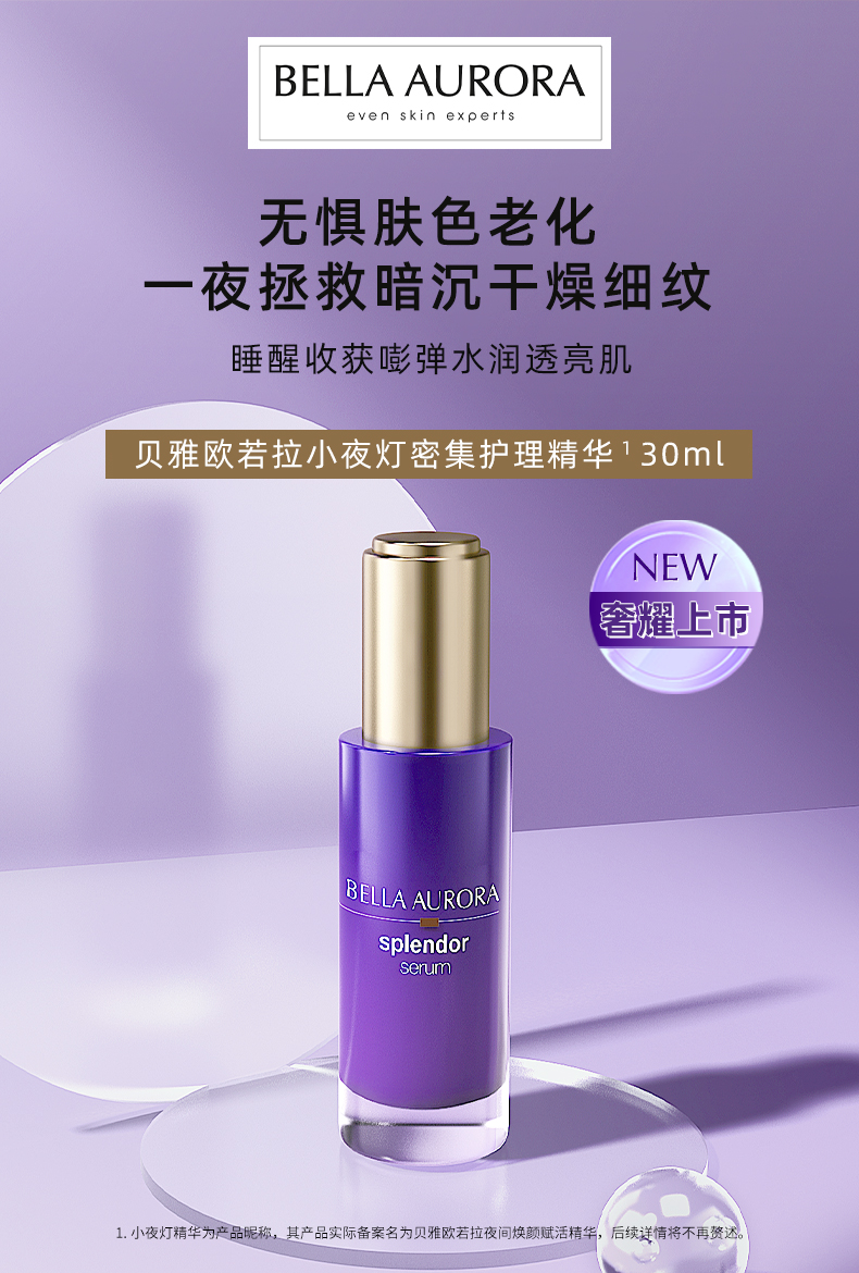 【灯泡肌 夜间焕颜 美白K老】小夜灯密集修护精华 30ml 西班牙 Bella Aurora贝雅欧若拉