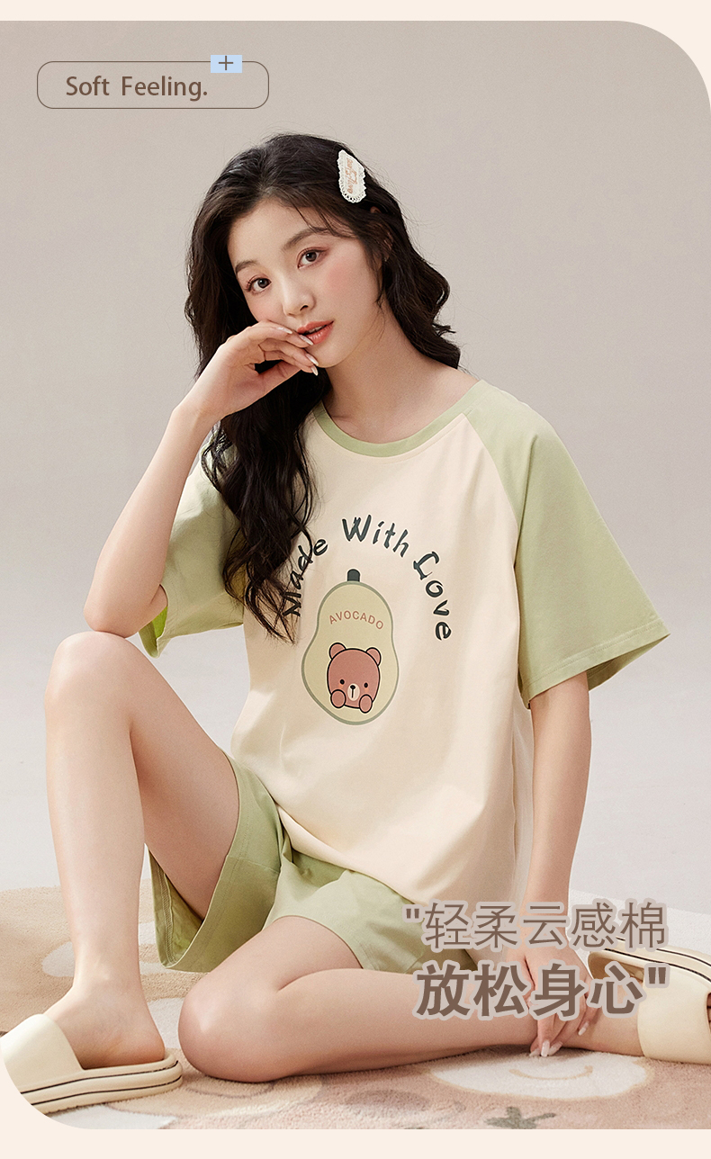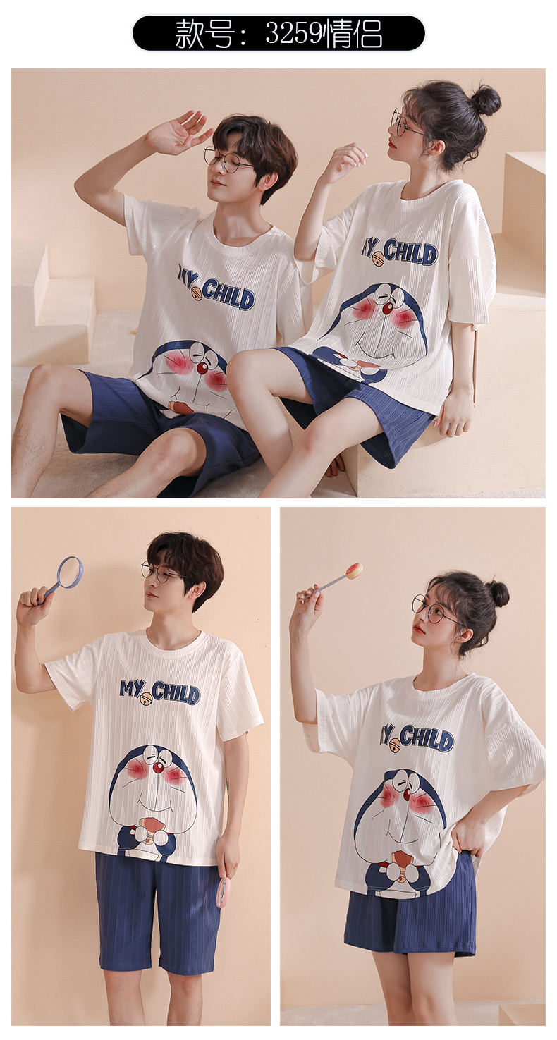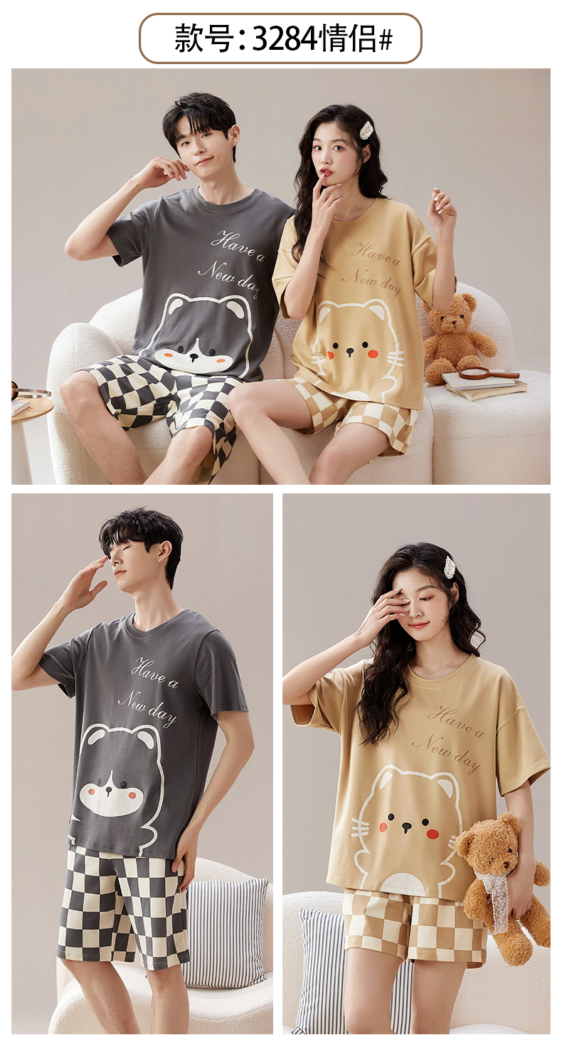 自然醒流萤情侣睡衣夏季针织棉薄款男女士短袖两件套新款夏天家居服QH