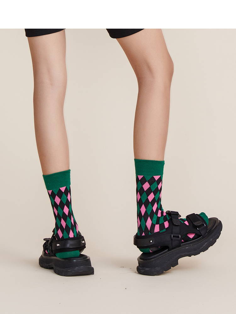 谜底宽松中长款大衣女2023冬新品复古格纹拼接毛呢外套234MD1506