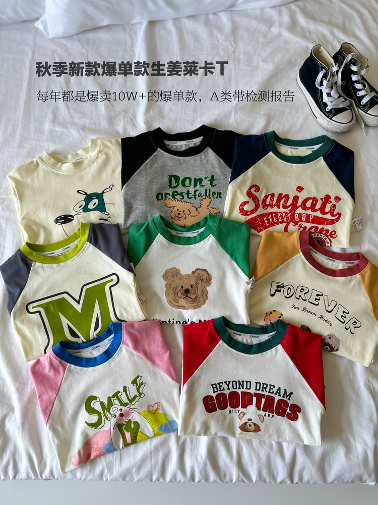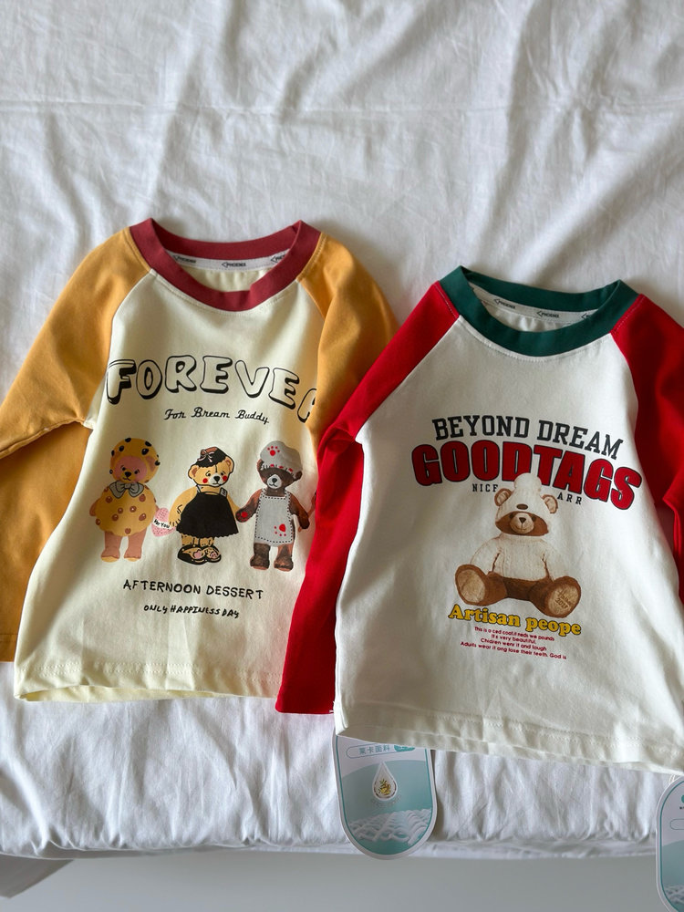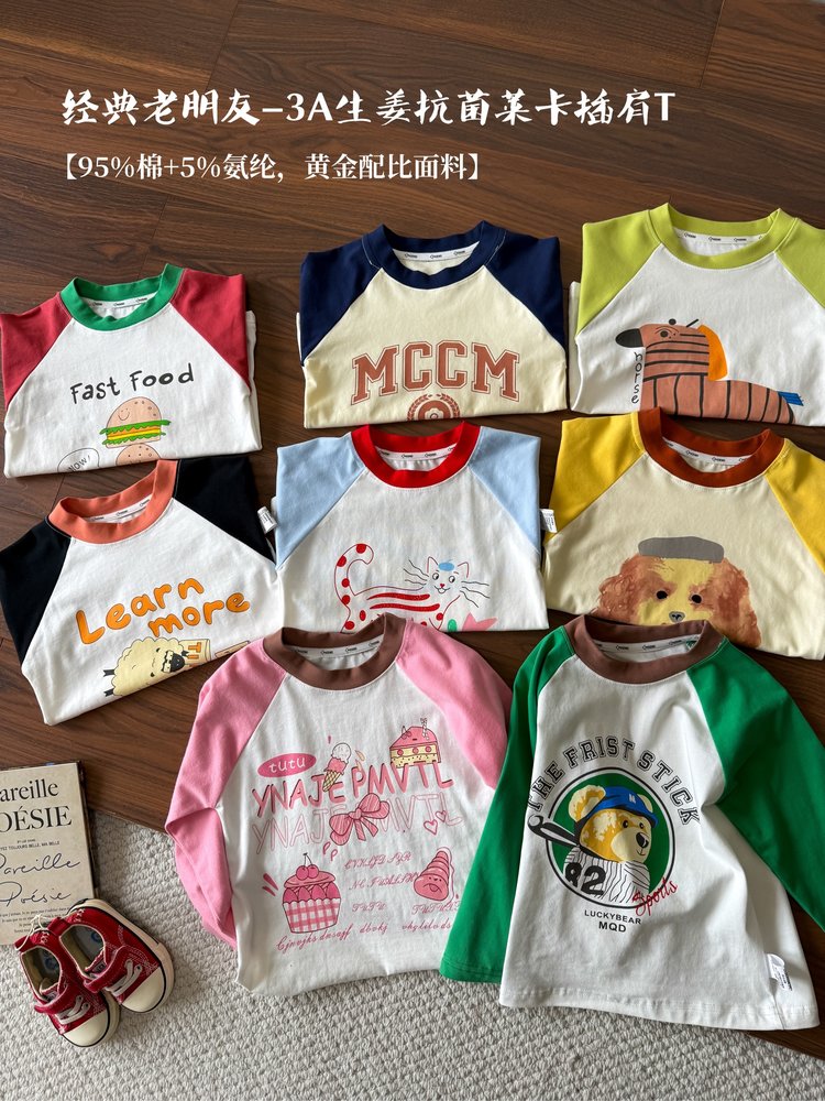第二件0元,加入购物车下单【3A生姜抗菌莱卡插肩长袖T】爆单款 卡通图案精致萌趣 亲肤透气 单穿打底都合适