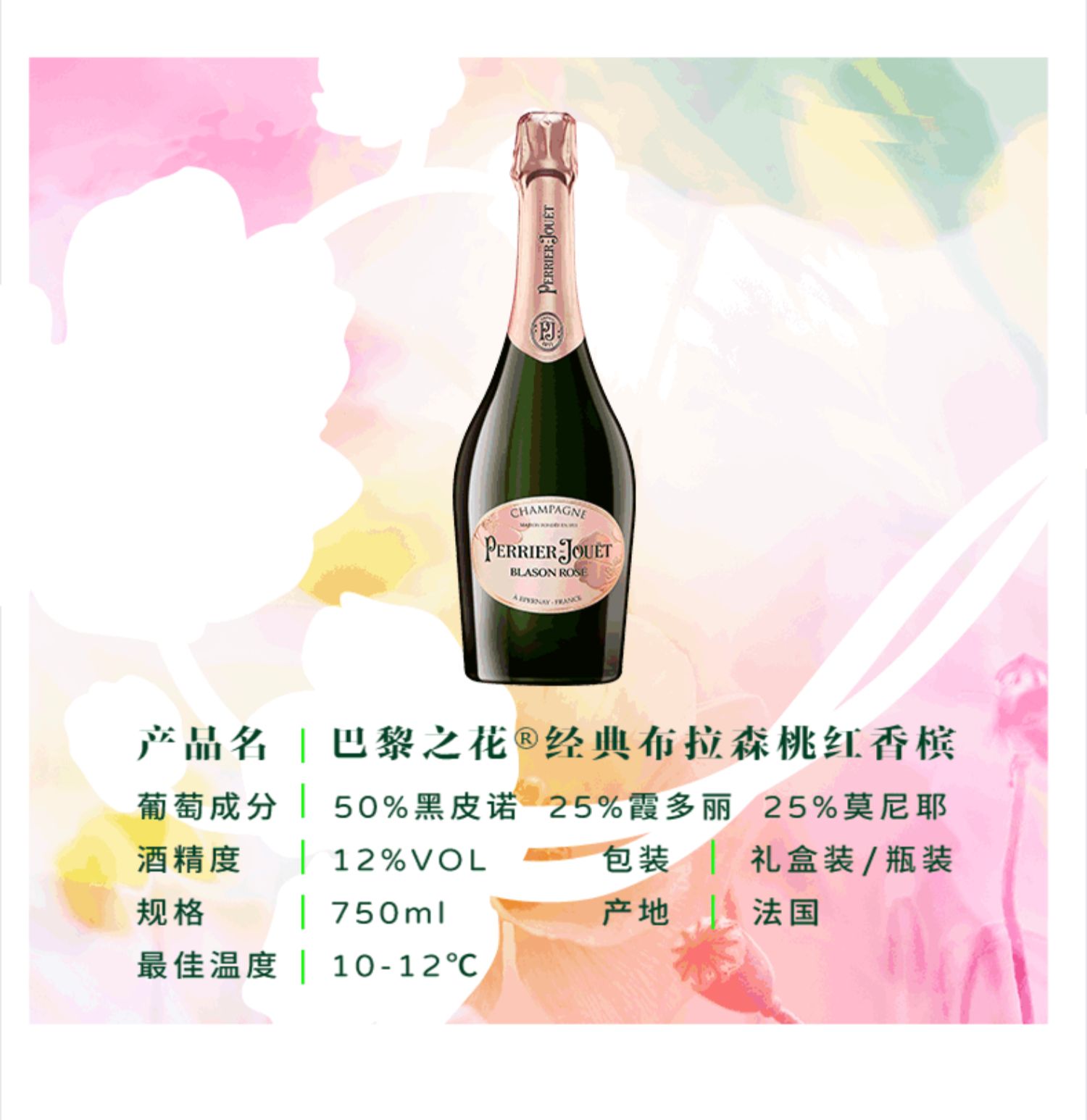 巴黎之花美丽时光布拉森粉桃红香槟气泡酒750ml法国进口洋酒 布拉森粉桃红