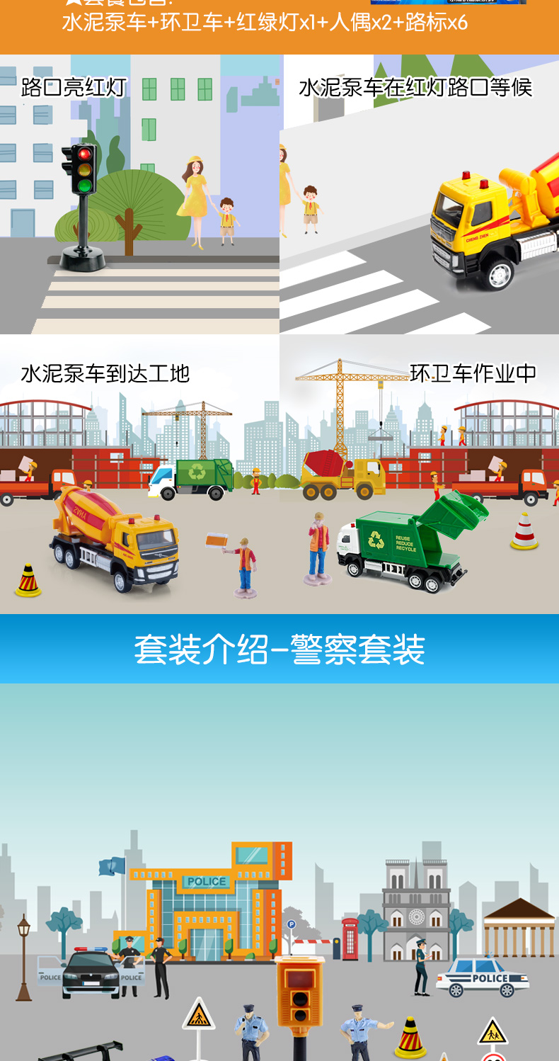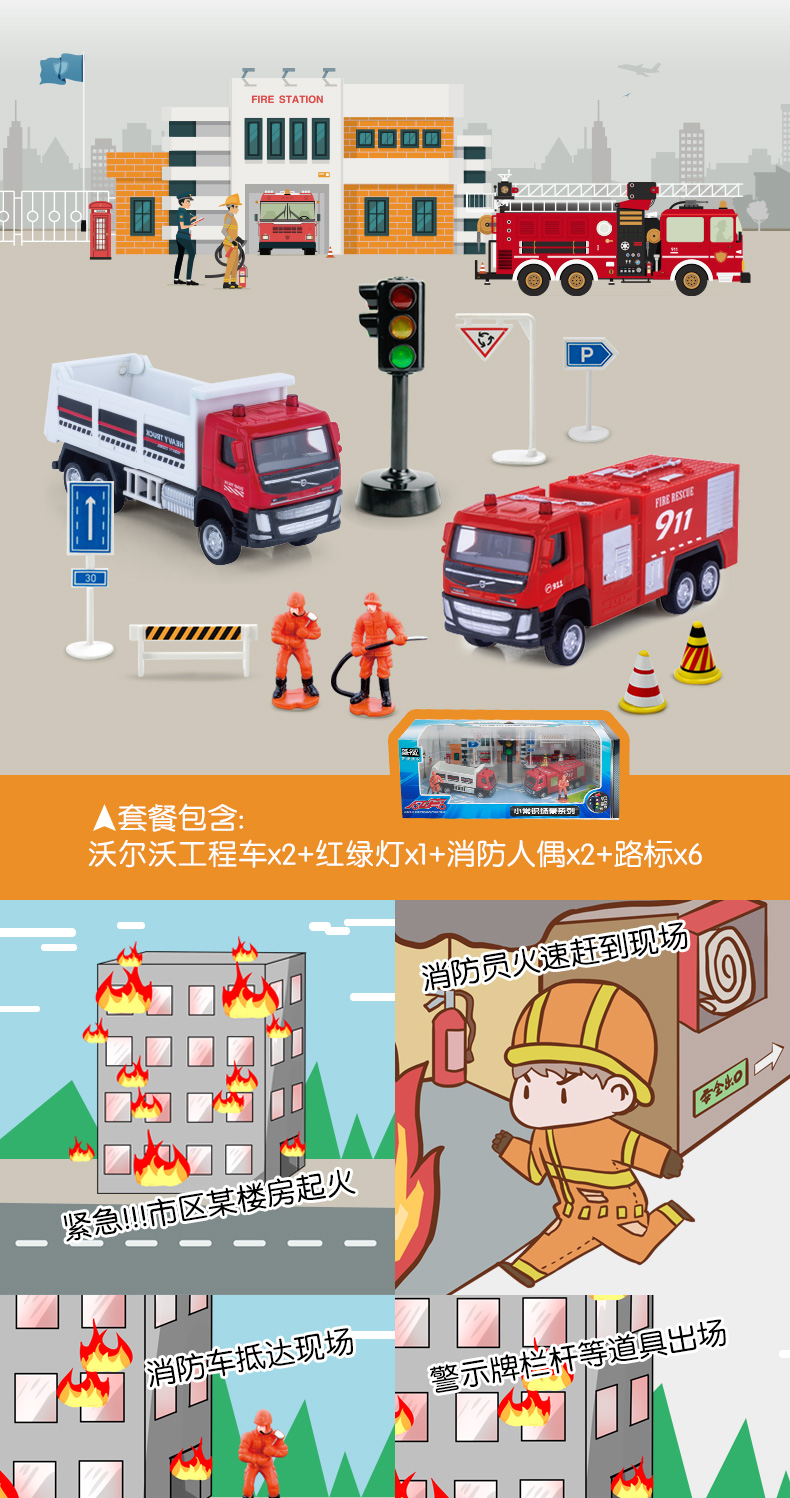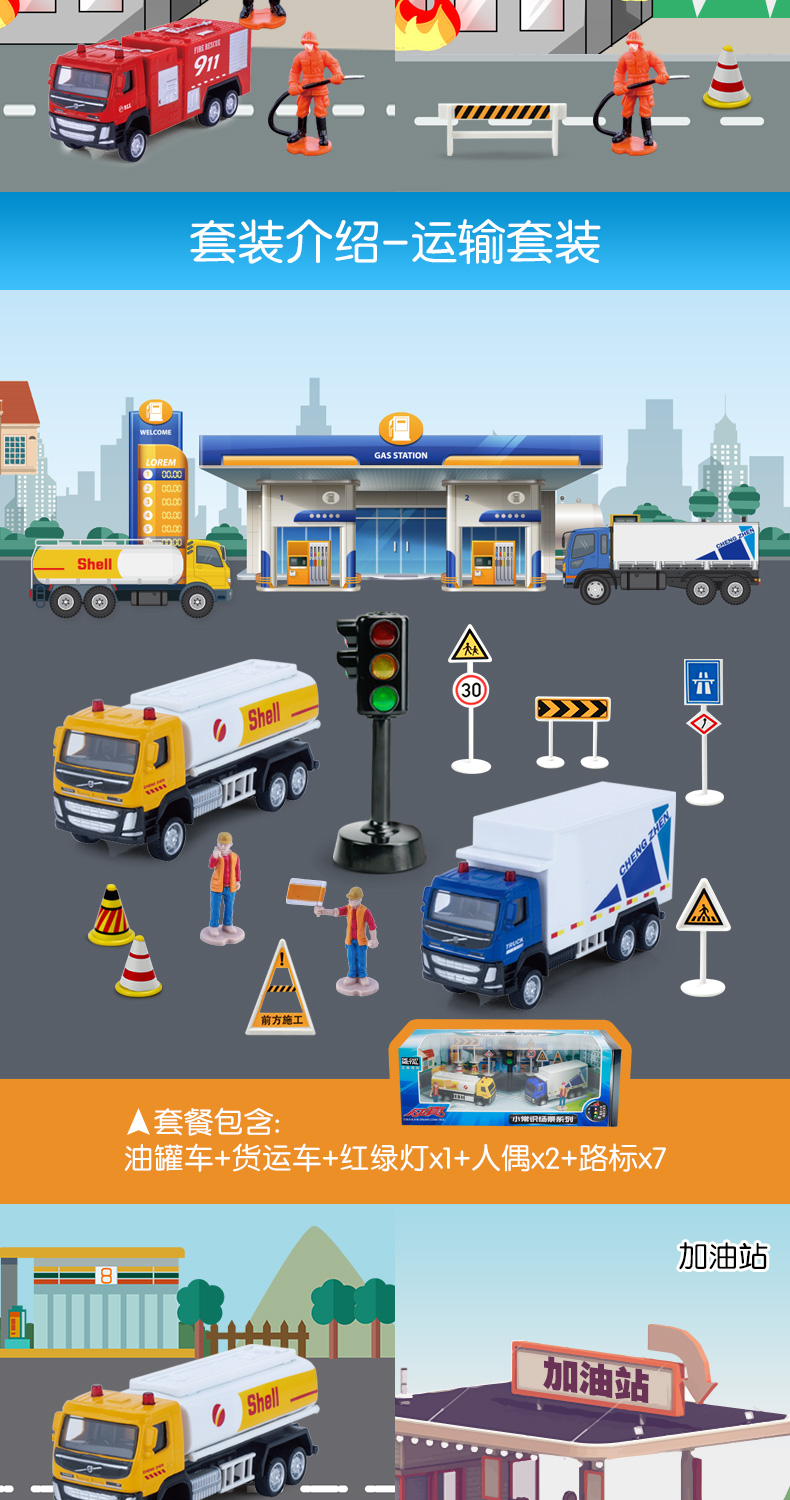 【成真场景套装】1:72场景套装消防警察运输环保套装
