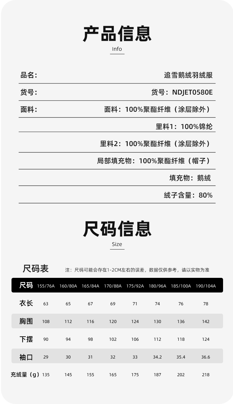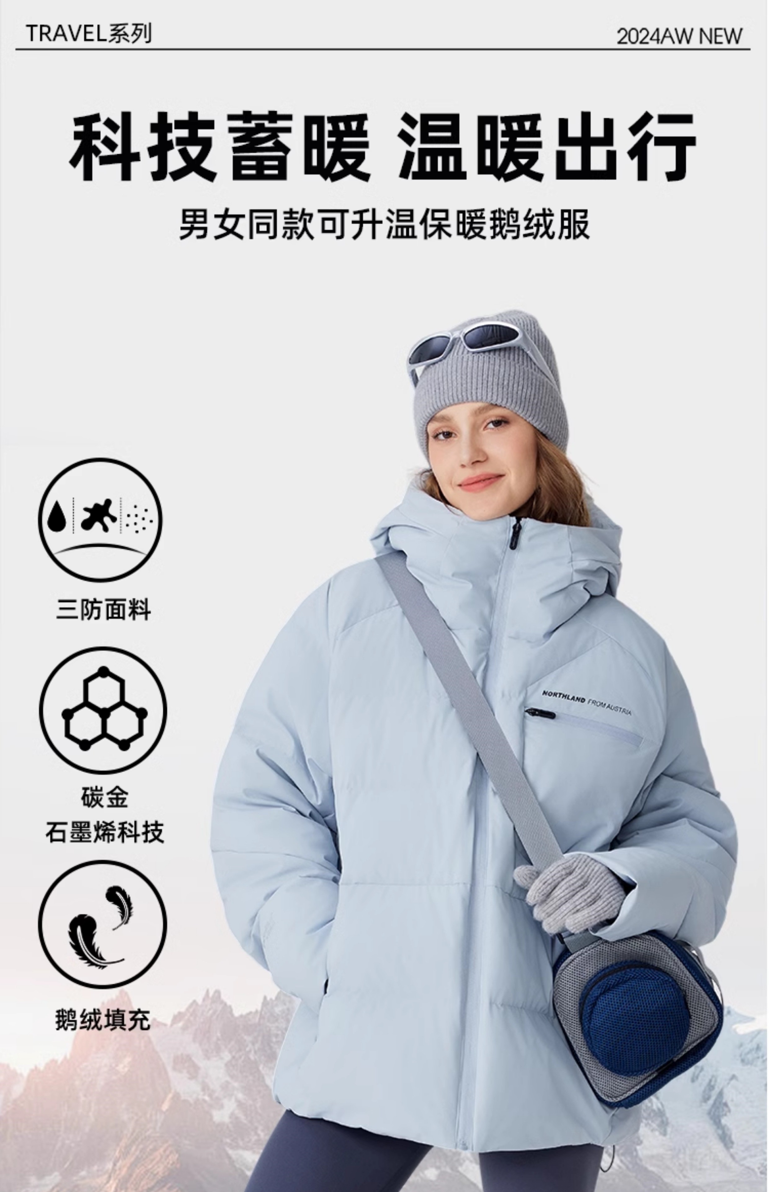 诺诗兰 追雪鹅绒羽绒服 NDJET0580E