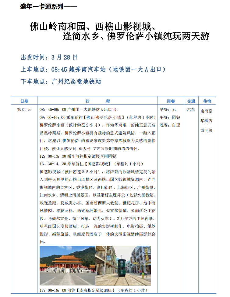 盛年一卡通系列——佛山岭南和园、西樵山影视城、逢简水乡、佛罗伦萨小镇纯玩两天游