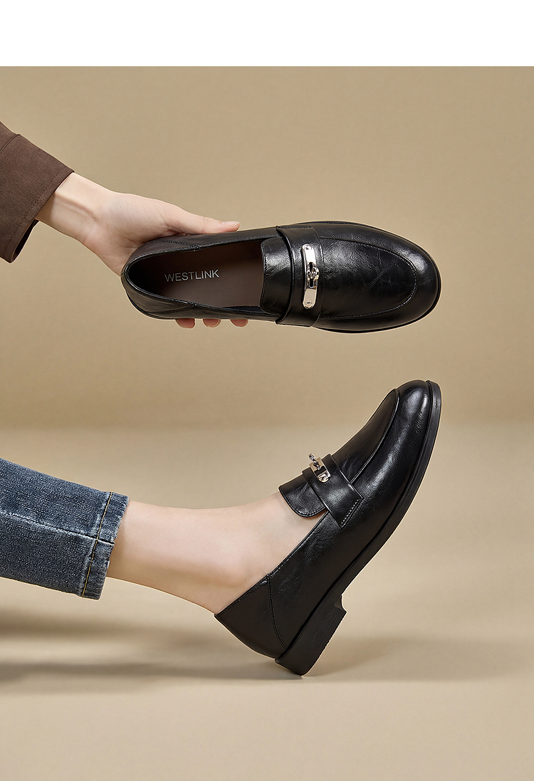西遇锁扣乐福鞋女2026春季新款软面舒适英伦风小皮鞋百搭豆豆单鞋V0166240