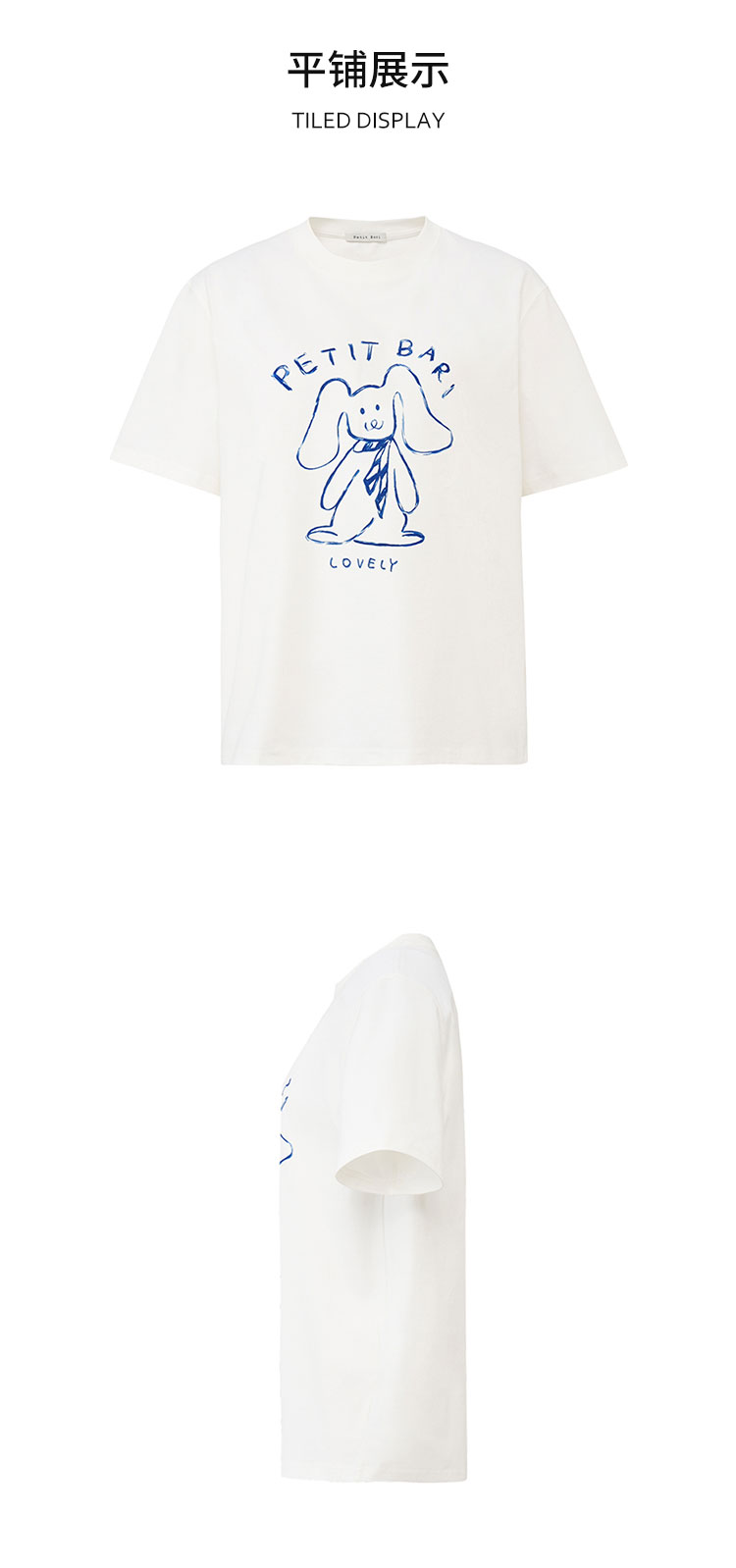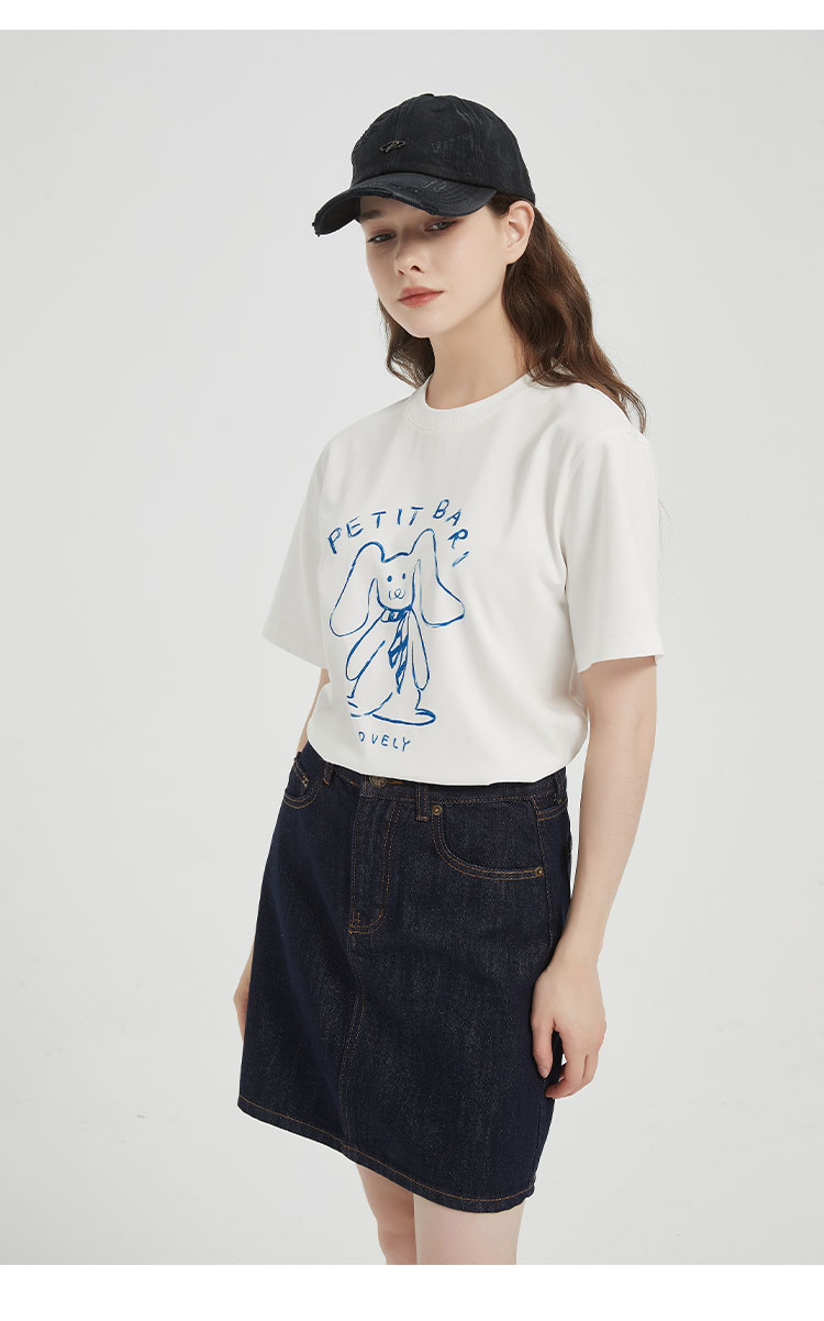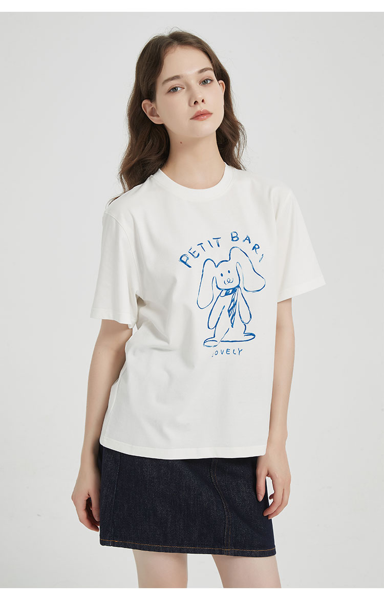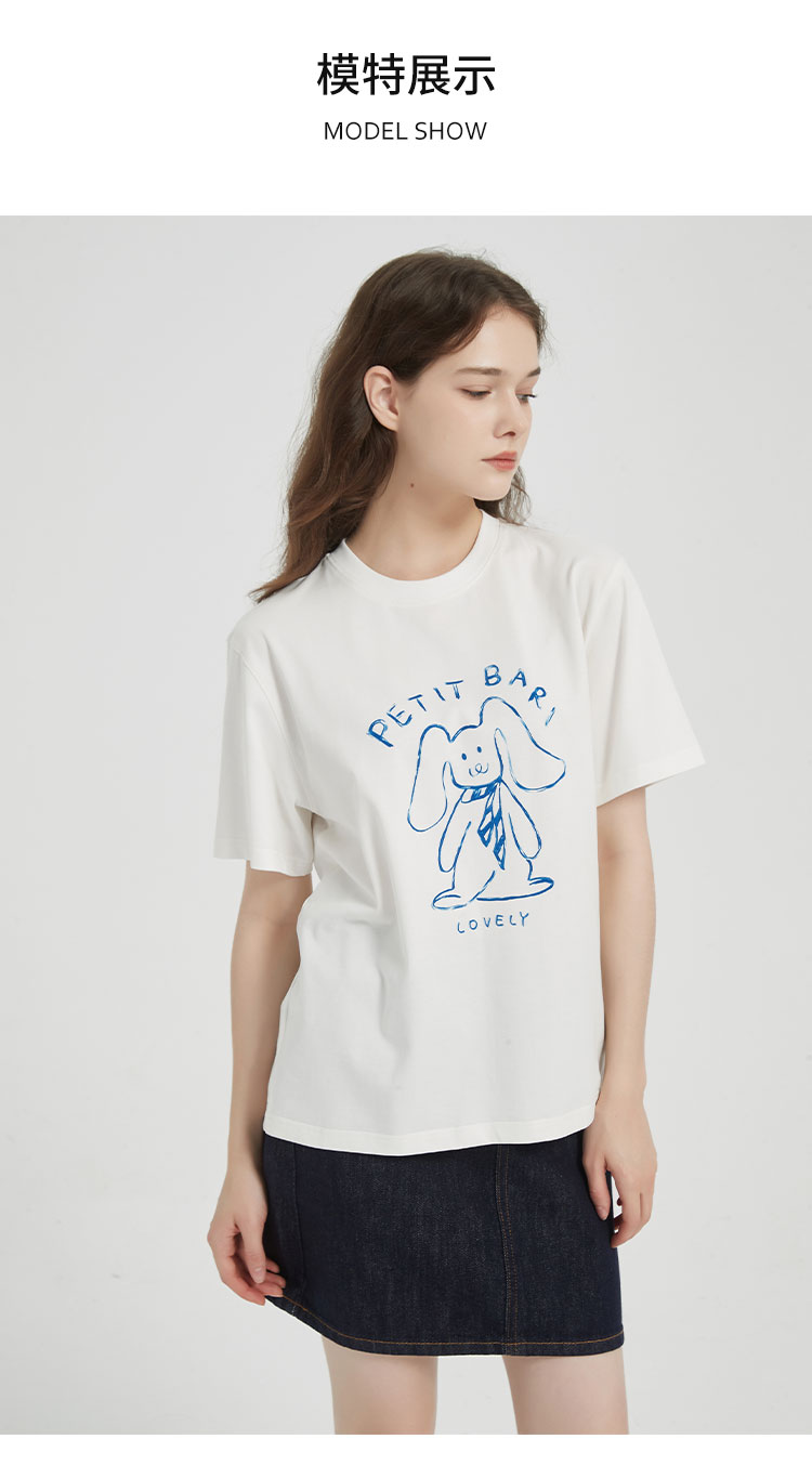 【2件9折】【Petit Bari】涂鸦手绘兔子印花凉感索罗娜短袖T恤