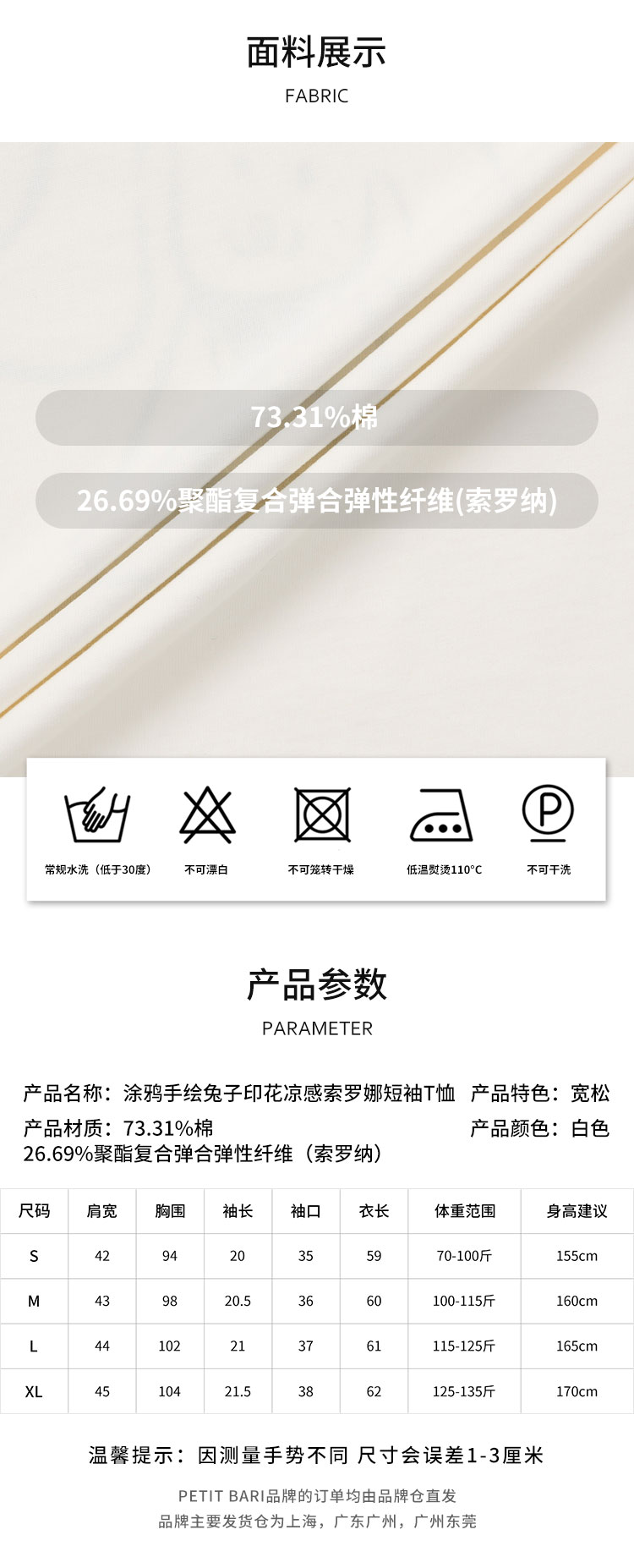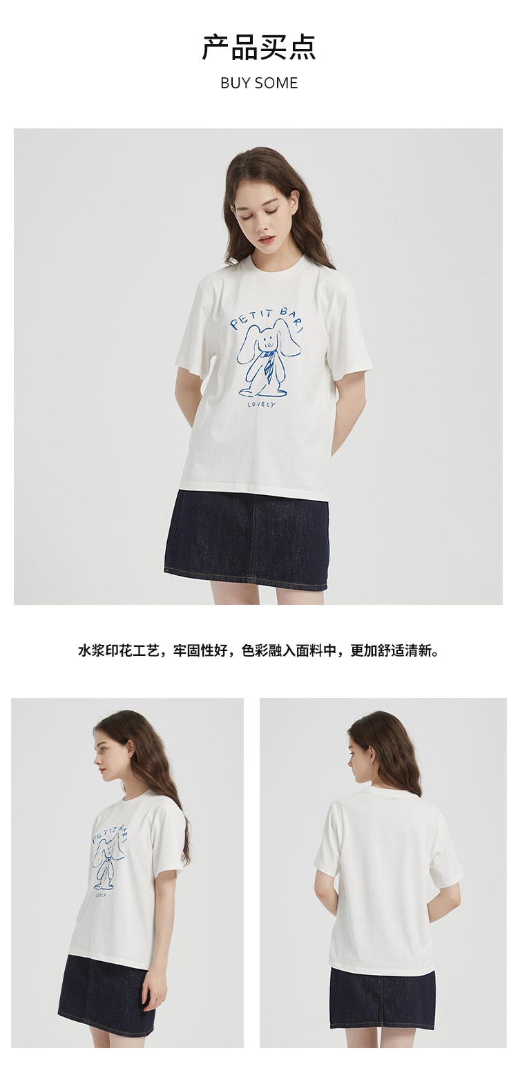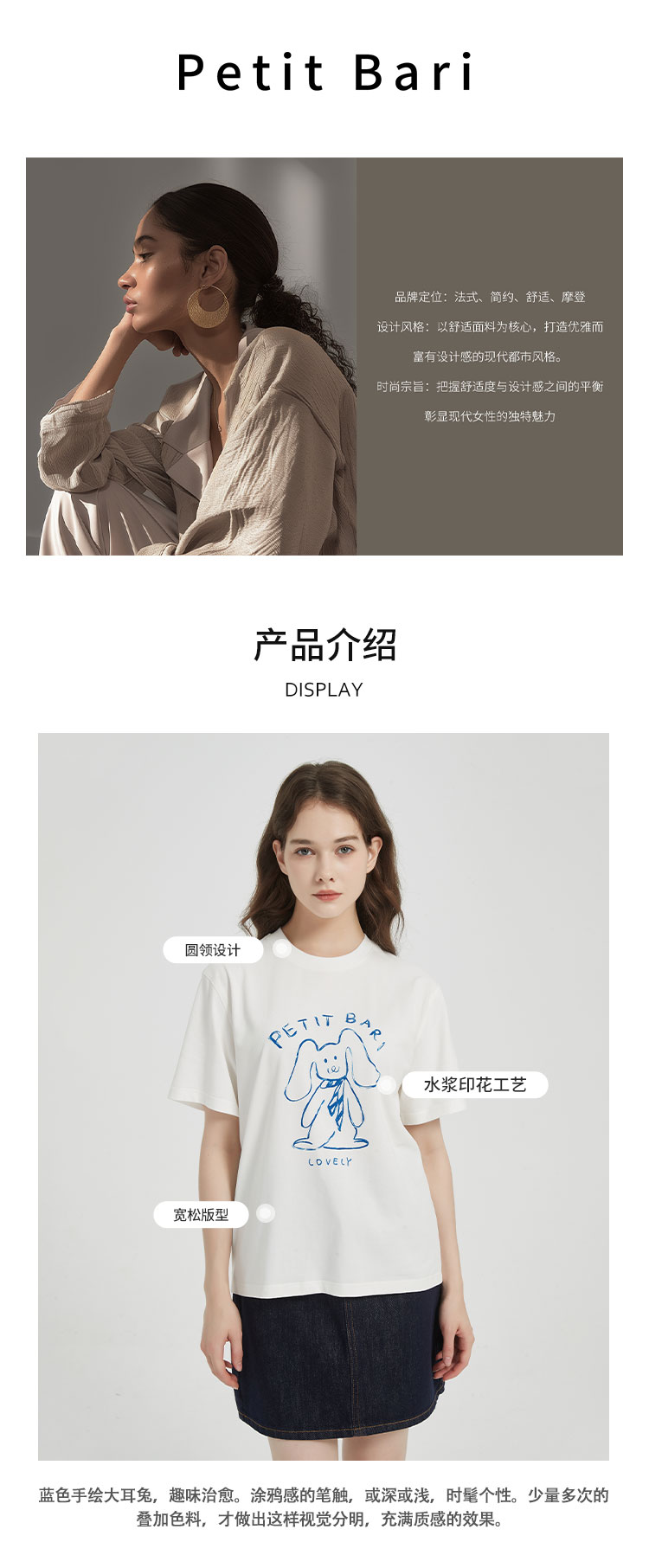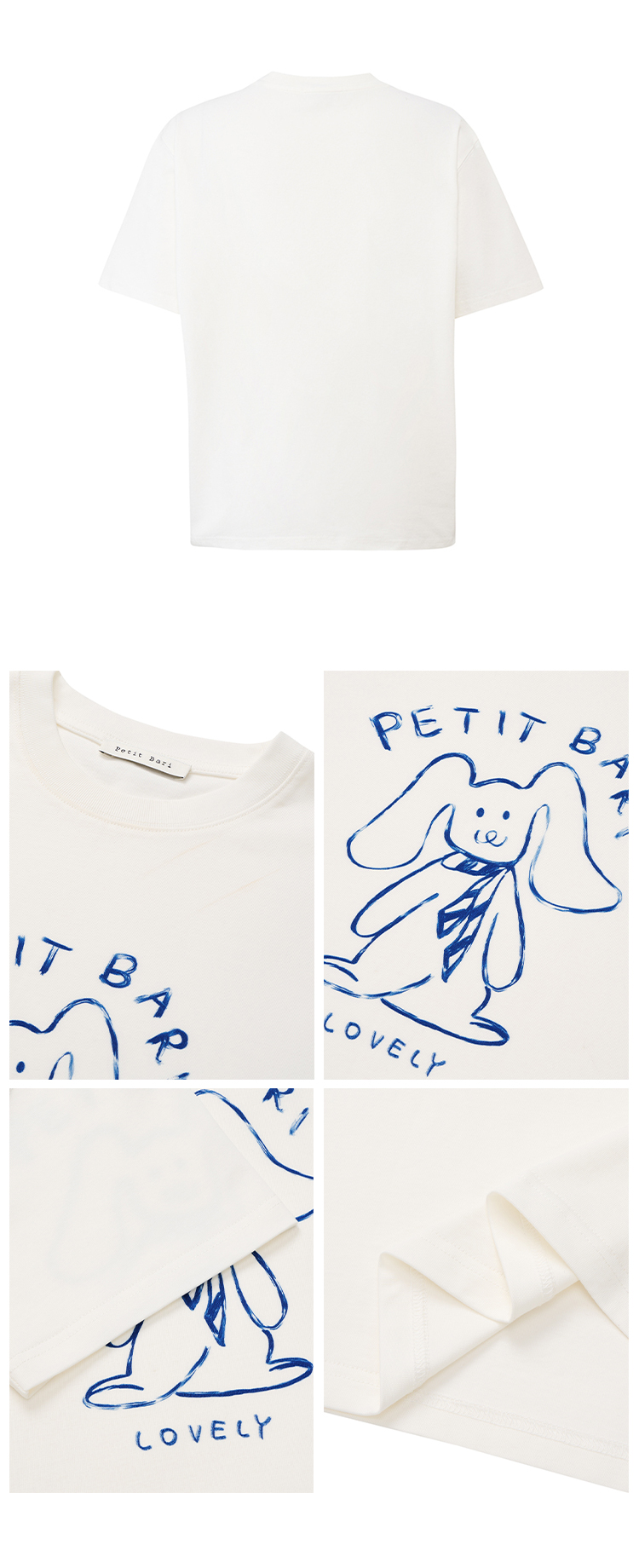 【2件9折】【Petit Bari】涂鸦手绘兔子印花凉感索罗娜短袖T恤