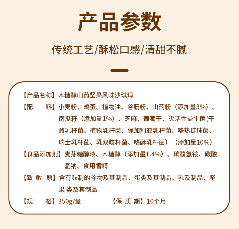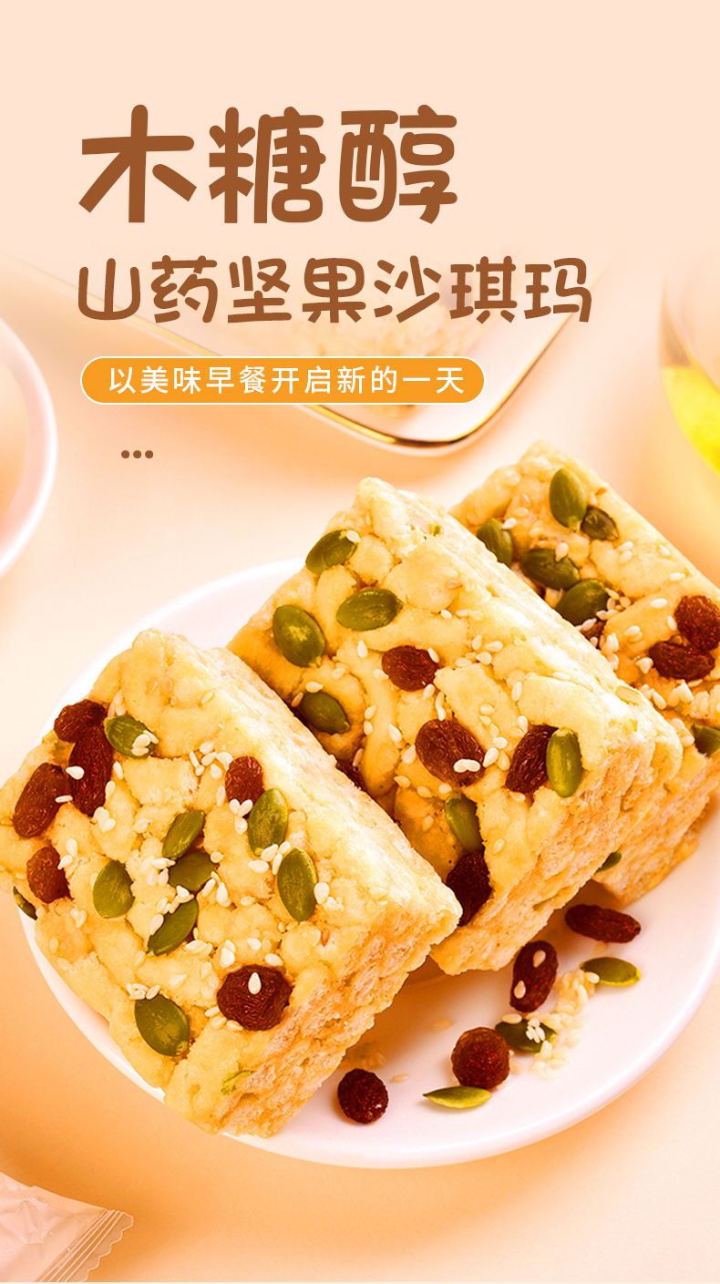 贡宝林木糖醇山药坚果沙琪玛,添加益生菌,开袋即食,传统工艺,膳食润养,不添加蔗糖,一盒350克
