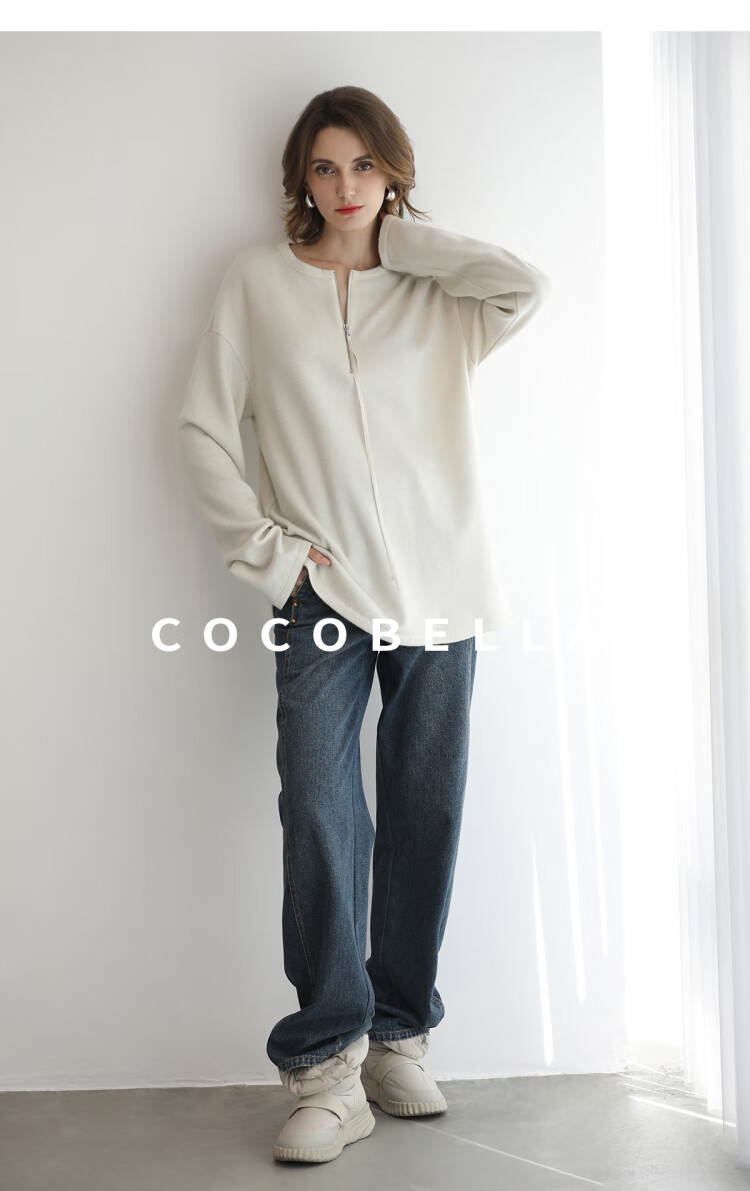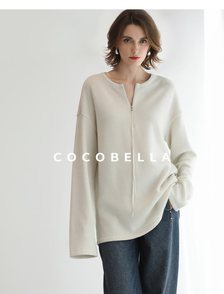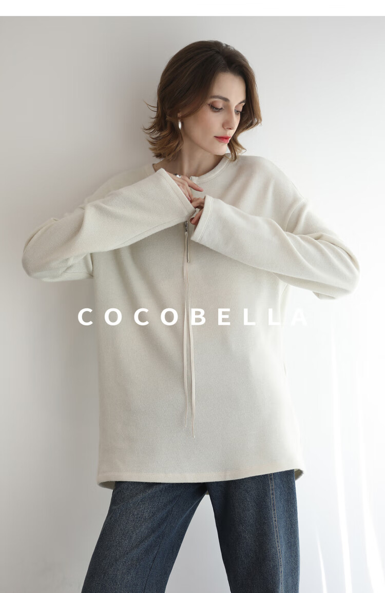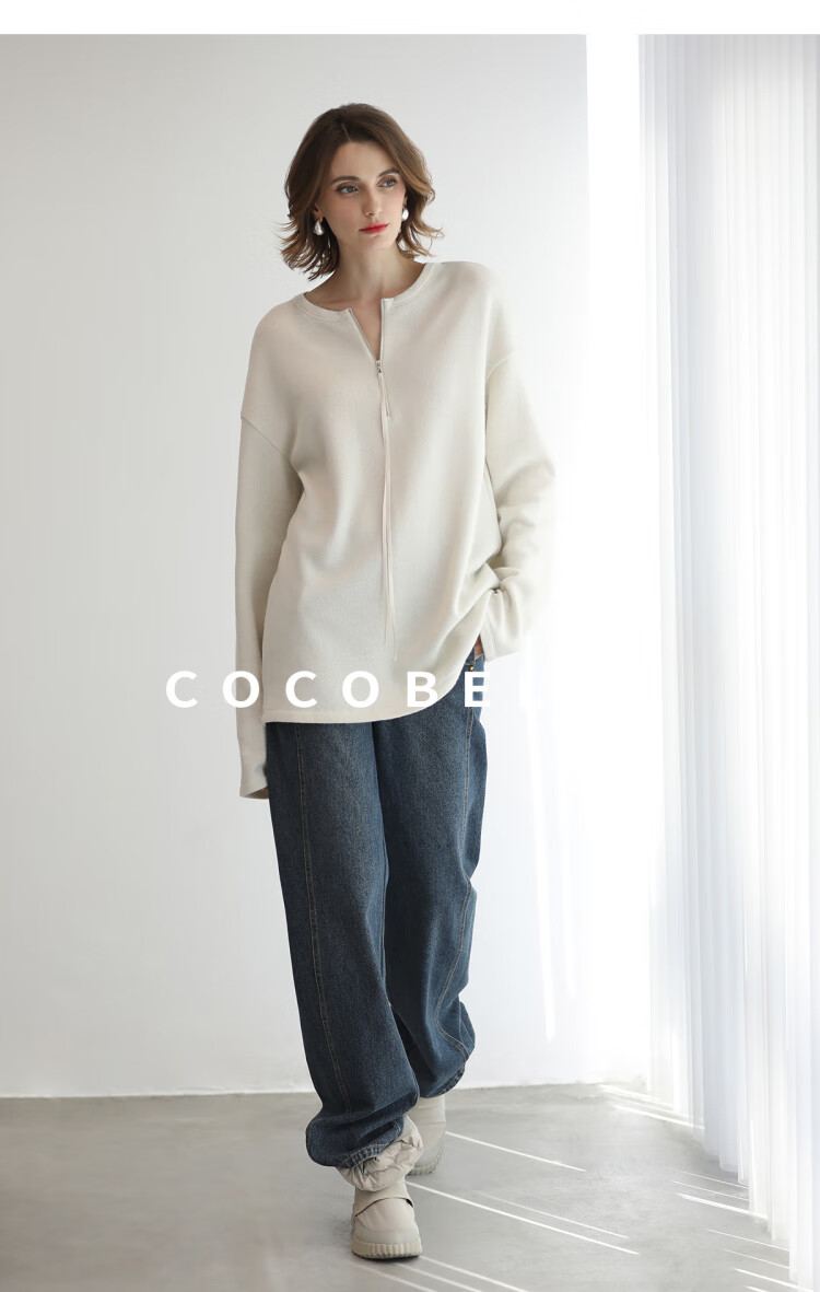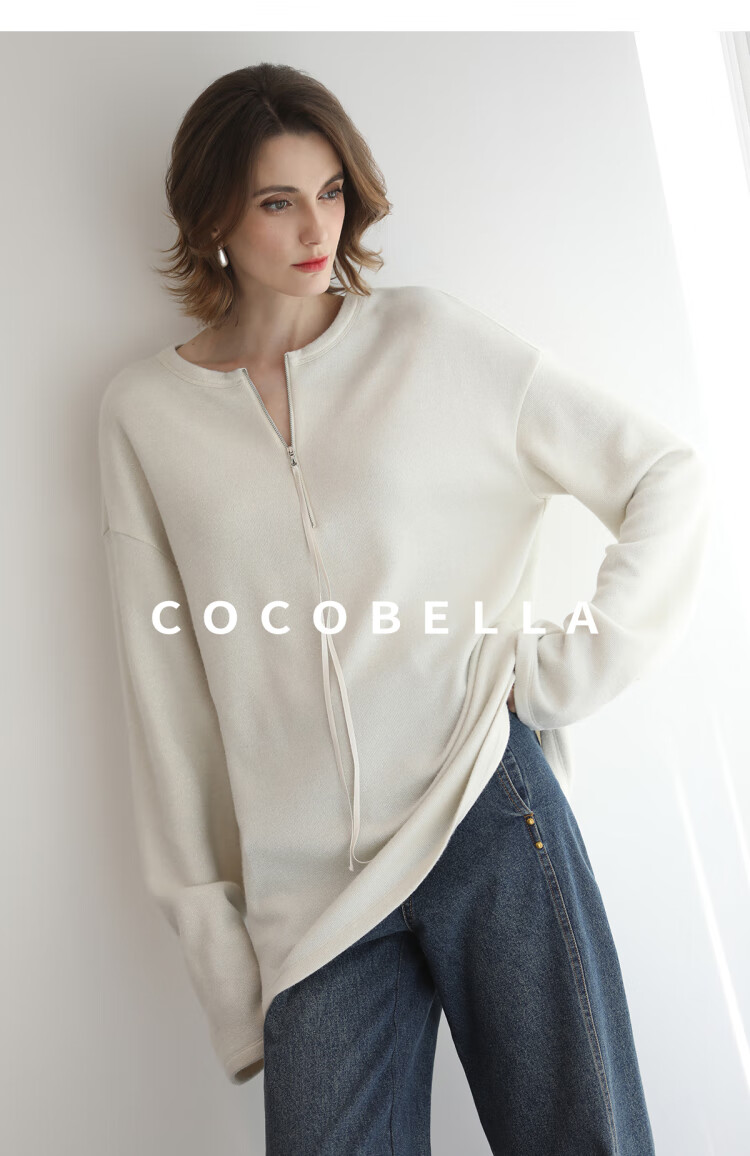 COCOBELLA新款圆领白色拉链毛衣秋冬休闲套头针织衫MZ3301-3