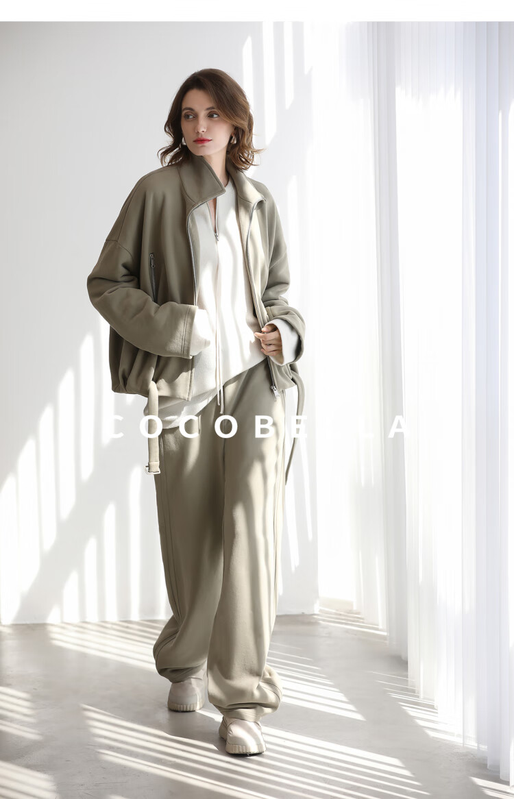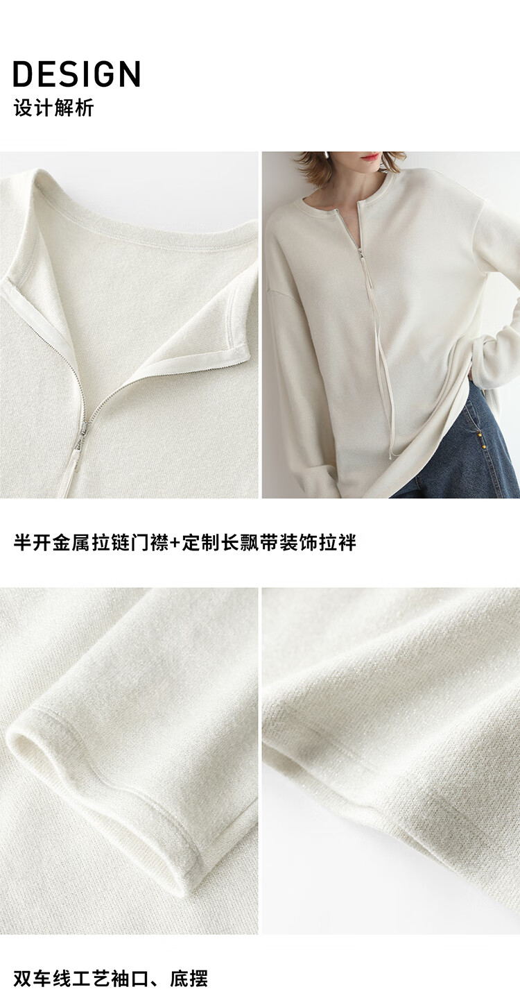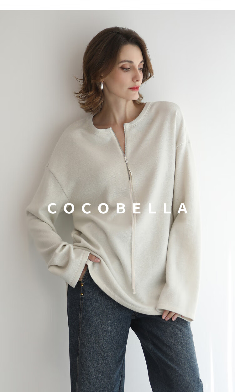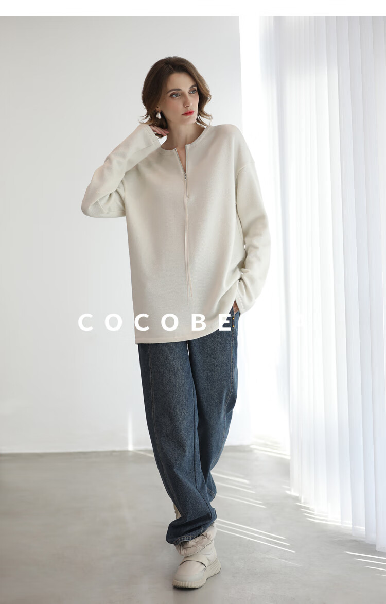 COCOBELLA新款圆领白色拉链毛衣秋冬休闲套头针织衫MZ3301-3
