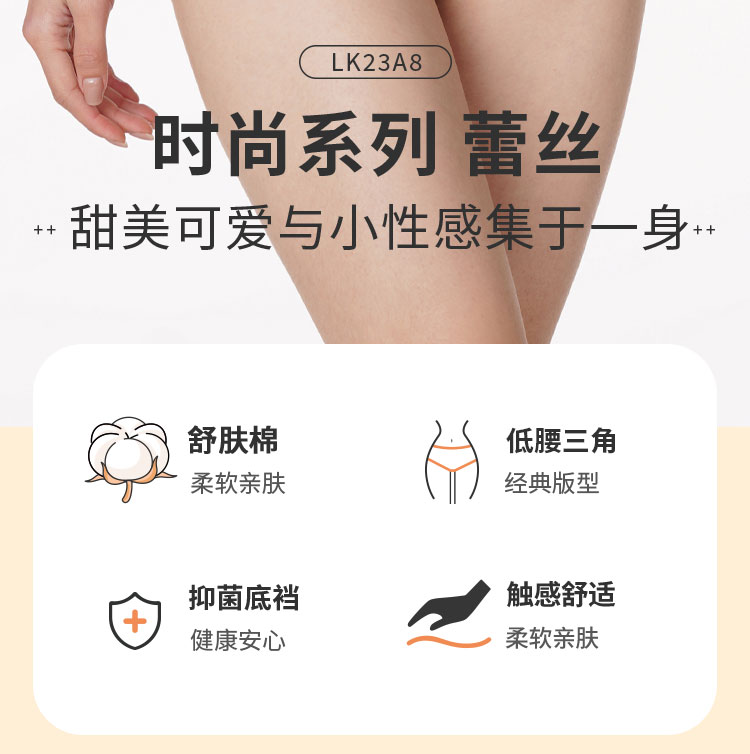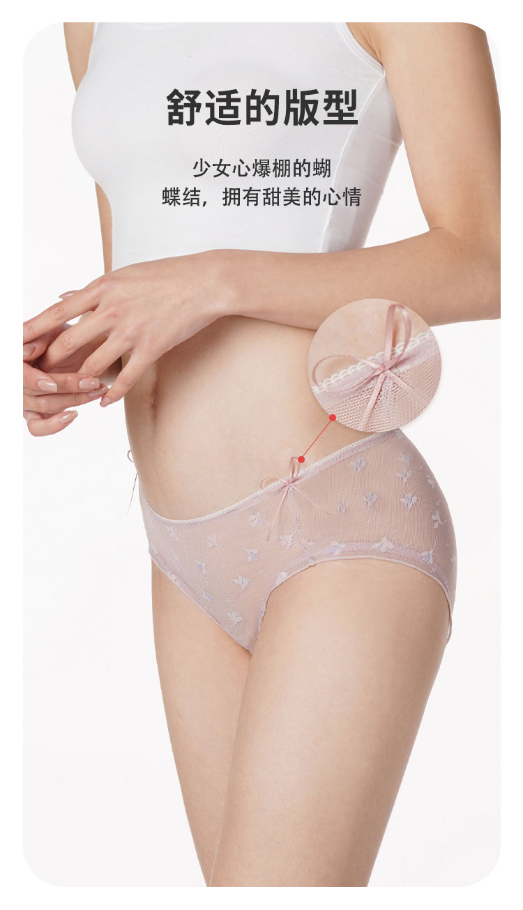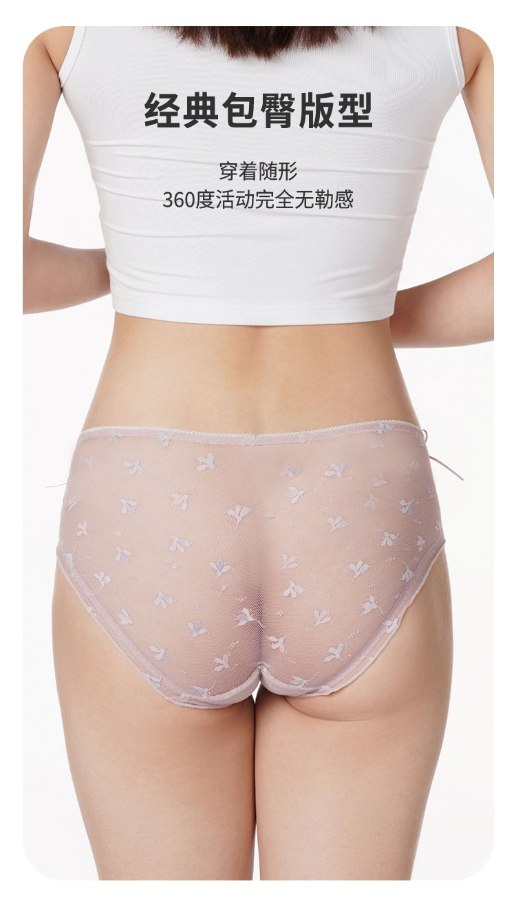 都市丽人时尚系列薄透丝滑蕾丝网布单品内裤三角中叉女士内裤LK23A8